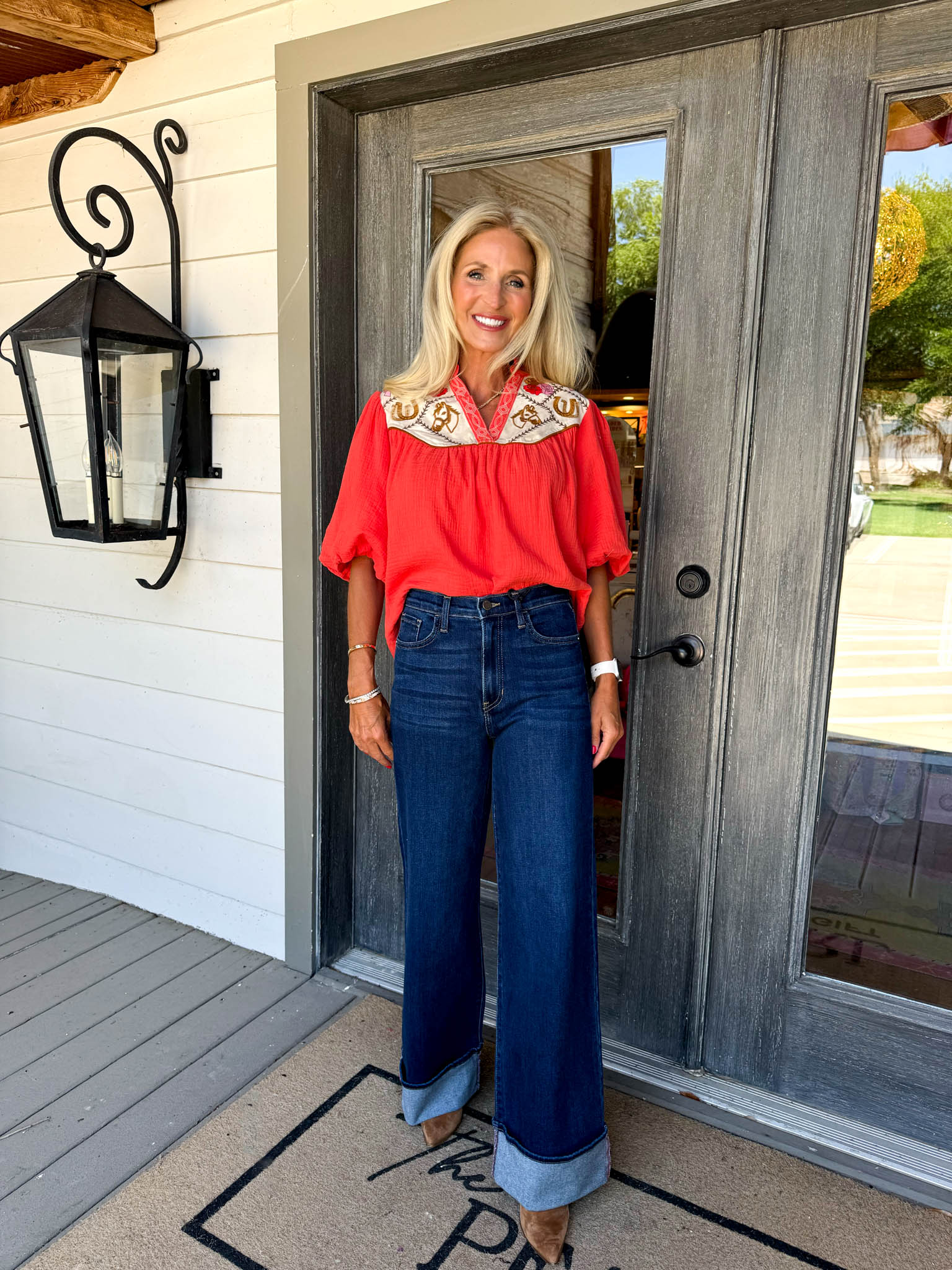 Every Bleu Super High Rise Wide Cuffed Leg Jeans
