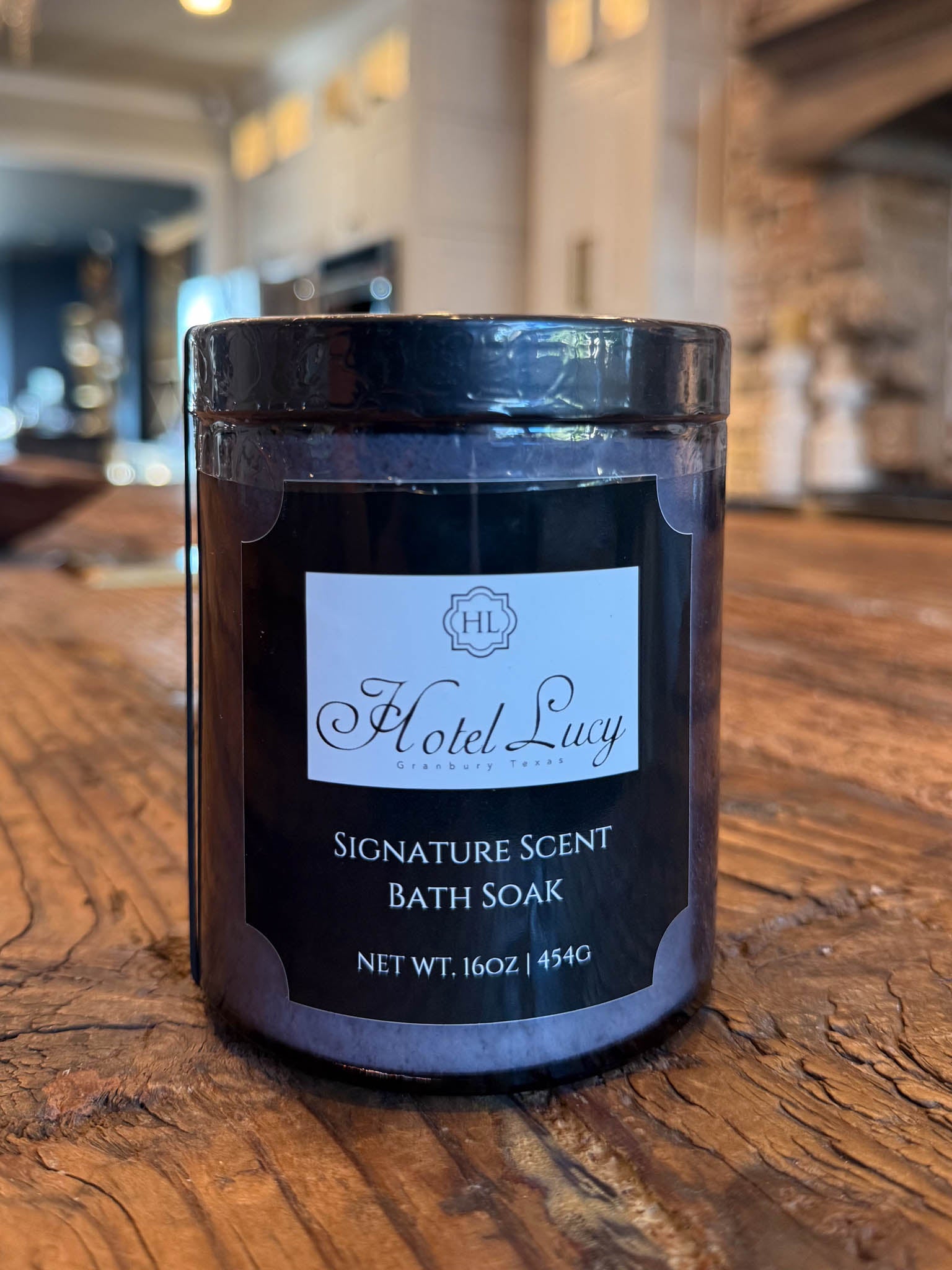 Take home and enjoy the signature Hotel Lucy products you fell in love with during your visit to Granbury! From our signature scent bath soak to our luxurious bath robes, keep the vacay vibes going long after your stay with us!
