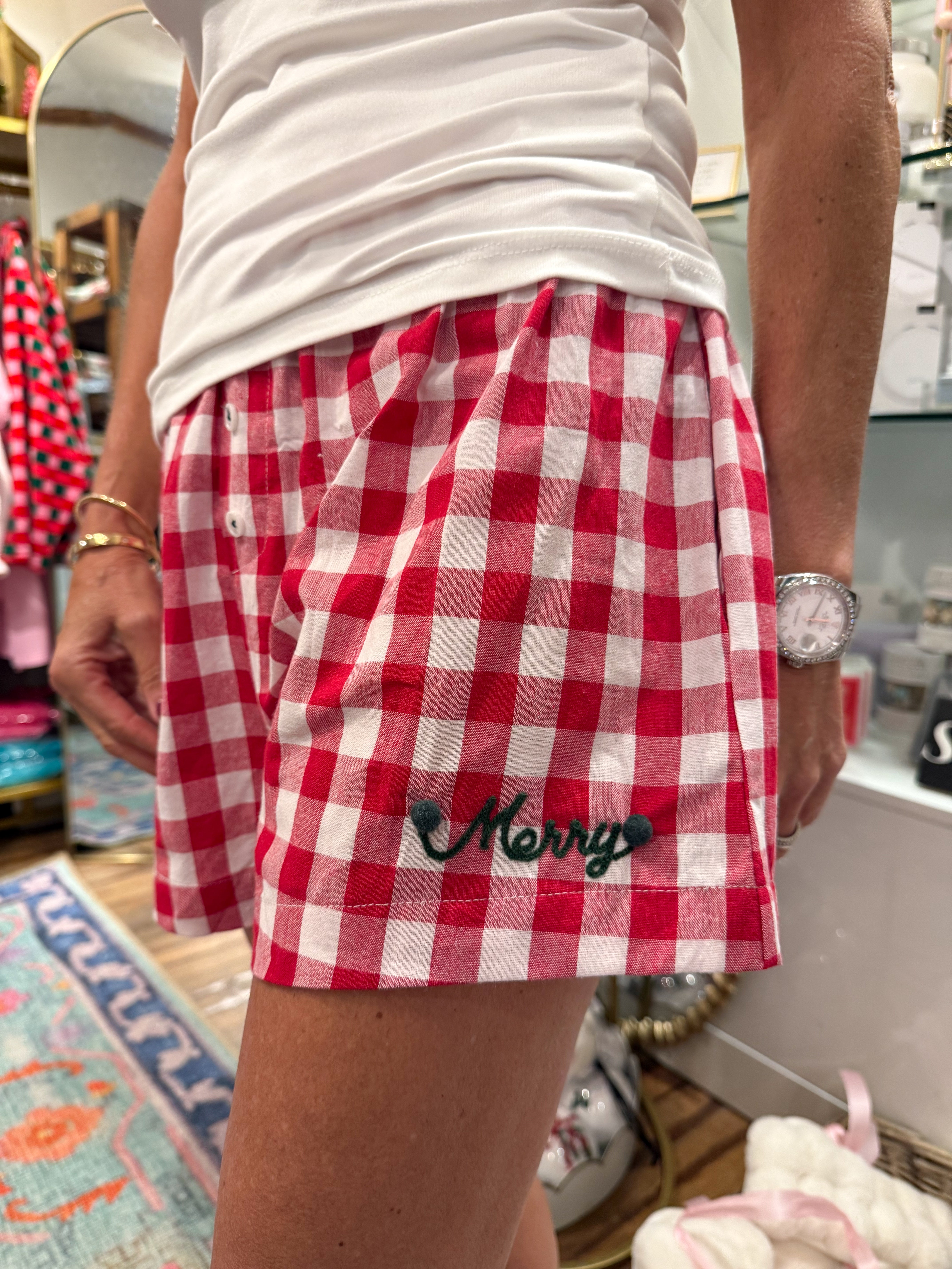 Merry Pom Pom Gingham Shorts