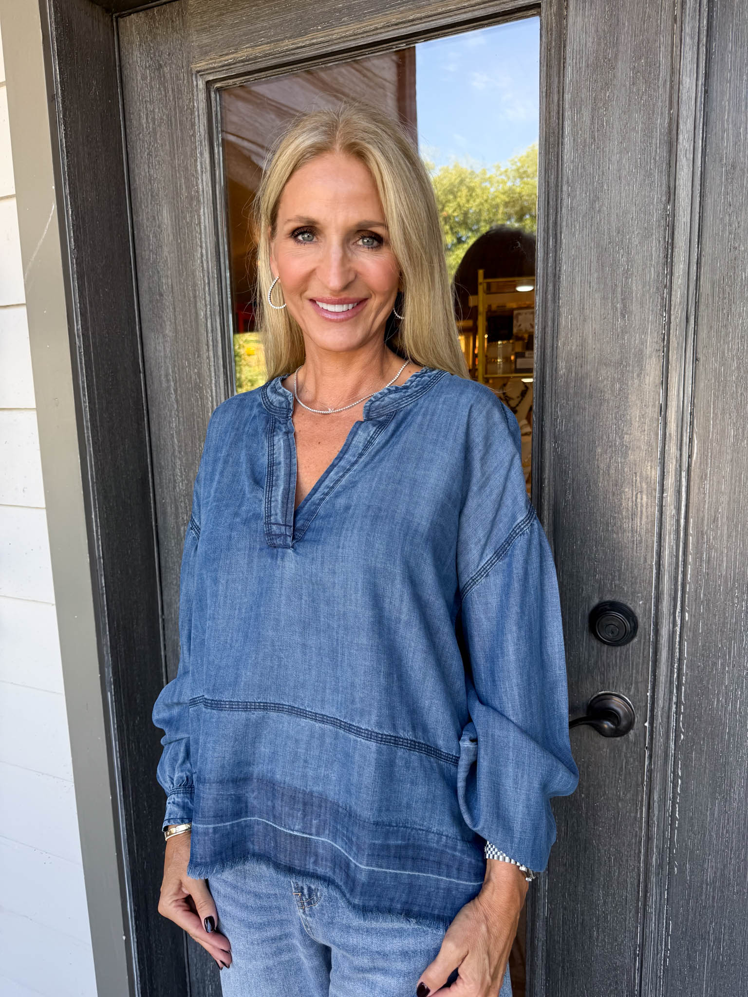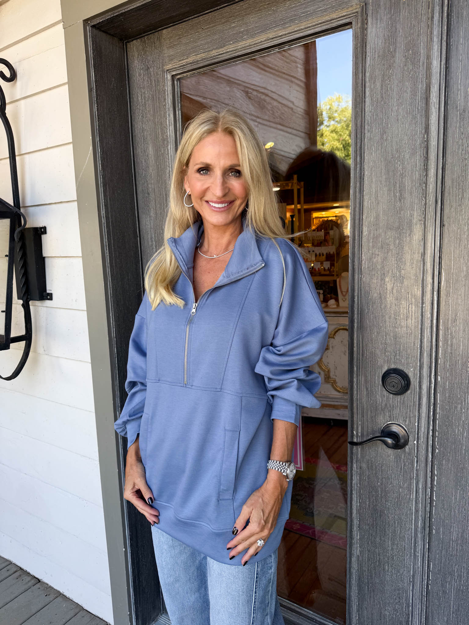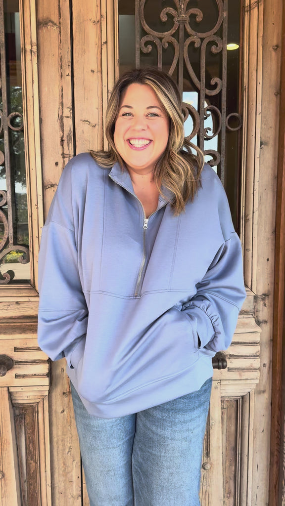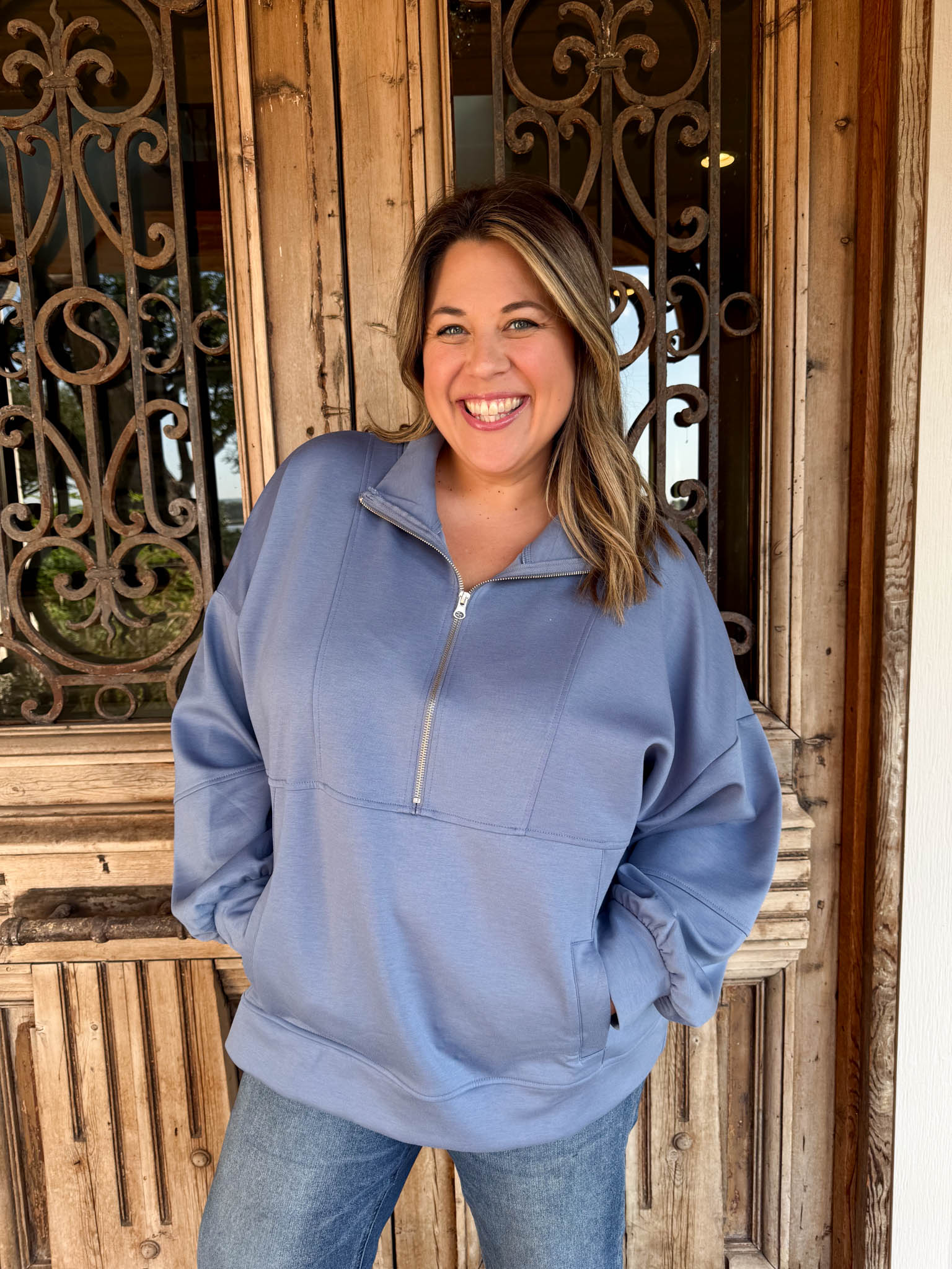 Denim Blues 1/2 Zip Sweatshirt - Curvy