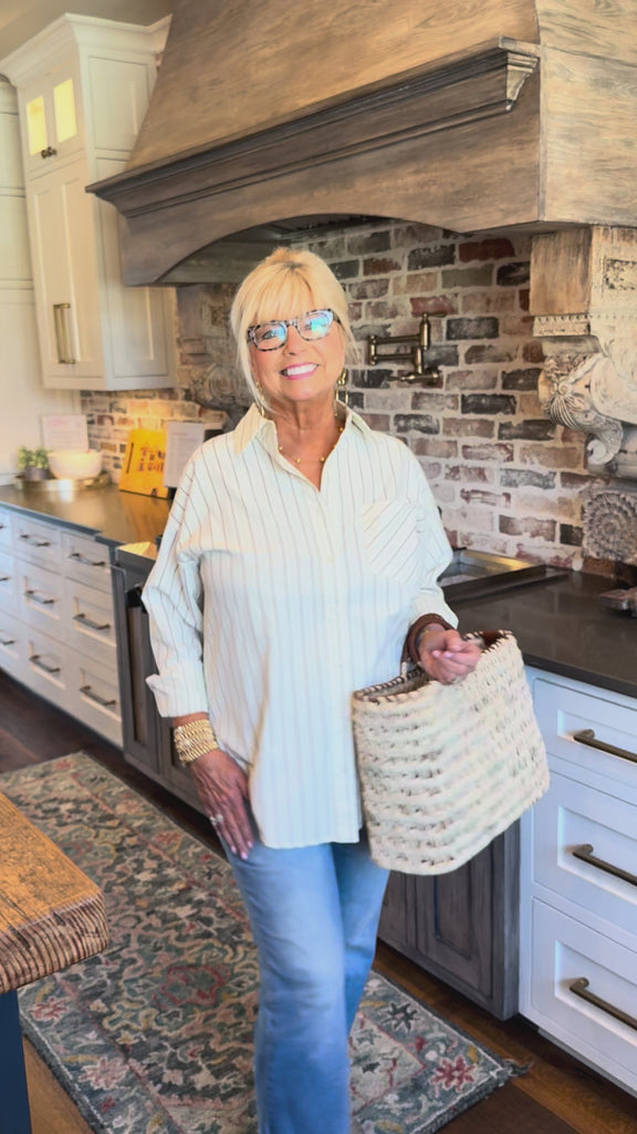 Yellow + Brown Stripe Oversize Blouse