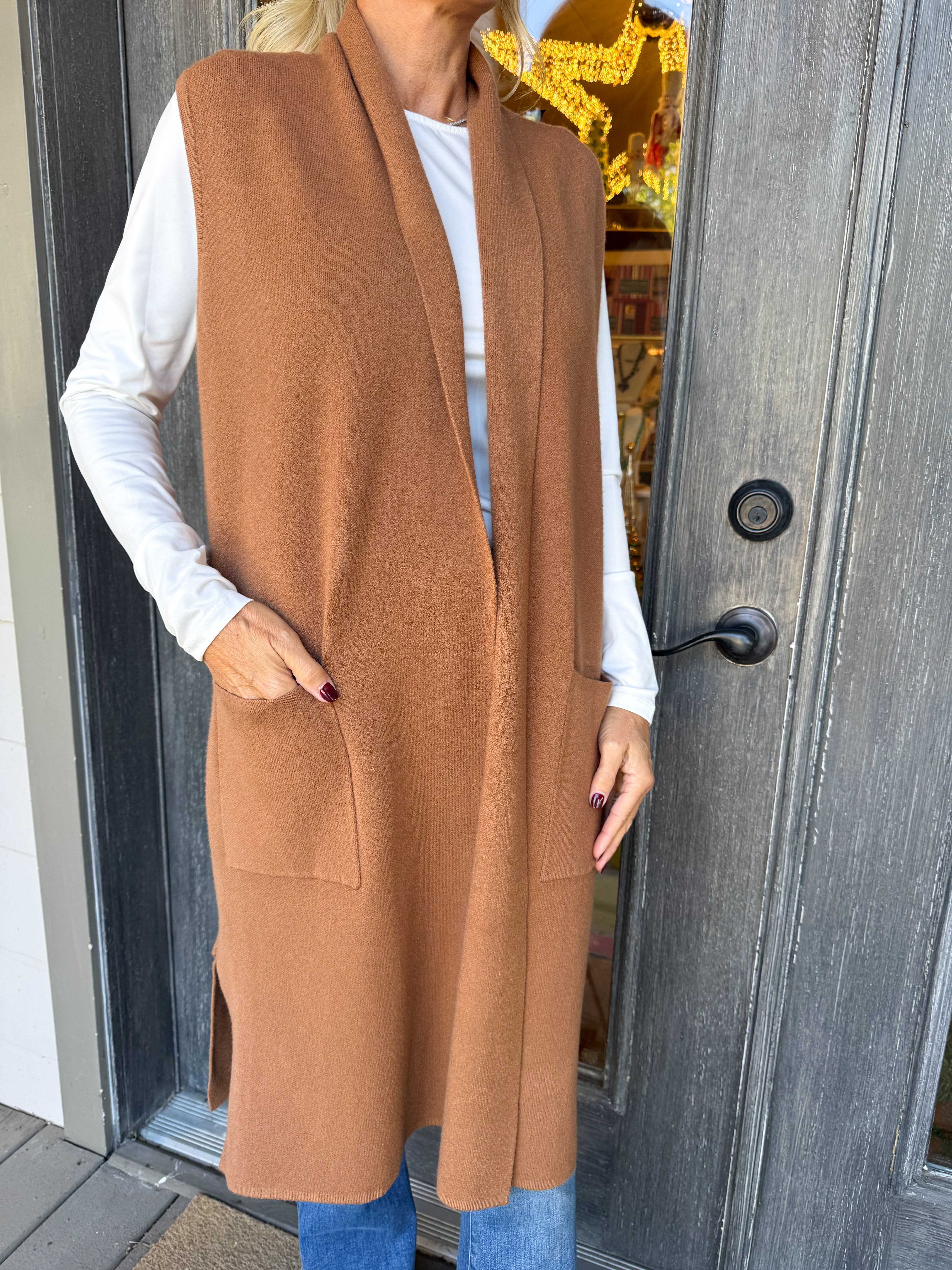 Camel Open Knitted Cardigan