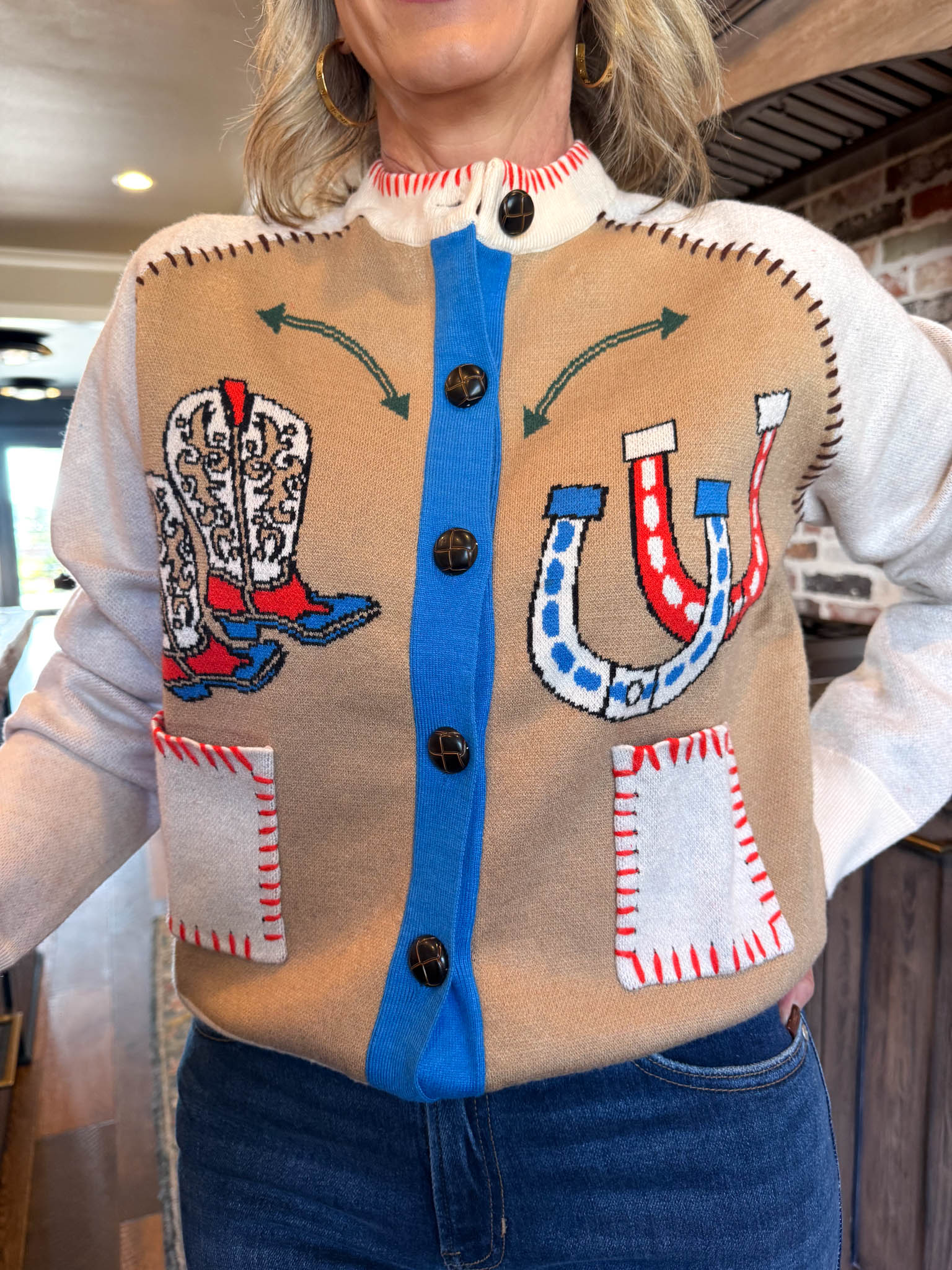 Western Print Embroidery Cardigan