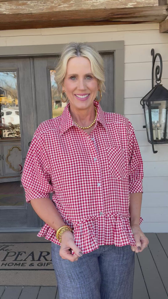 Cherry Peplum Blouse - Curvy