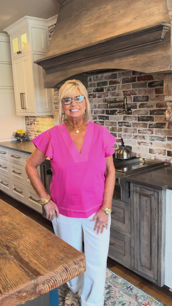 Frenchie Raw Edge V-Neck White
