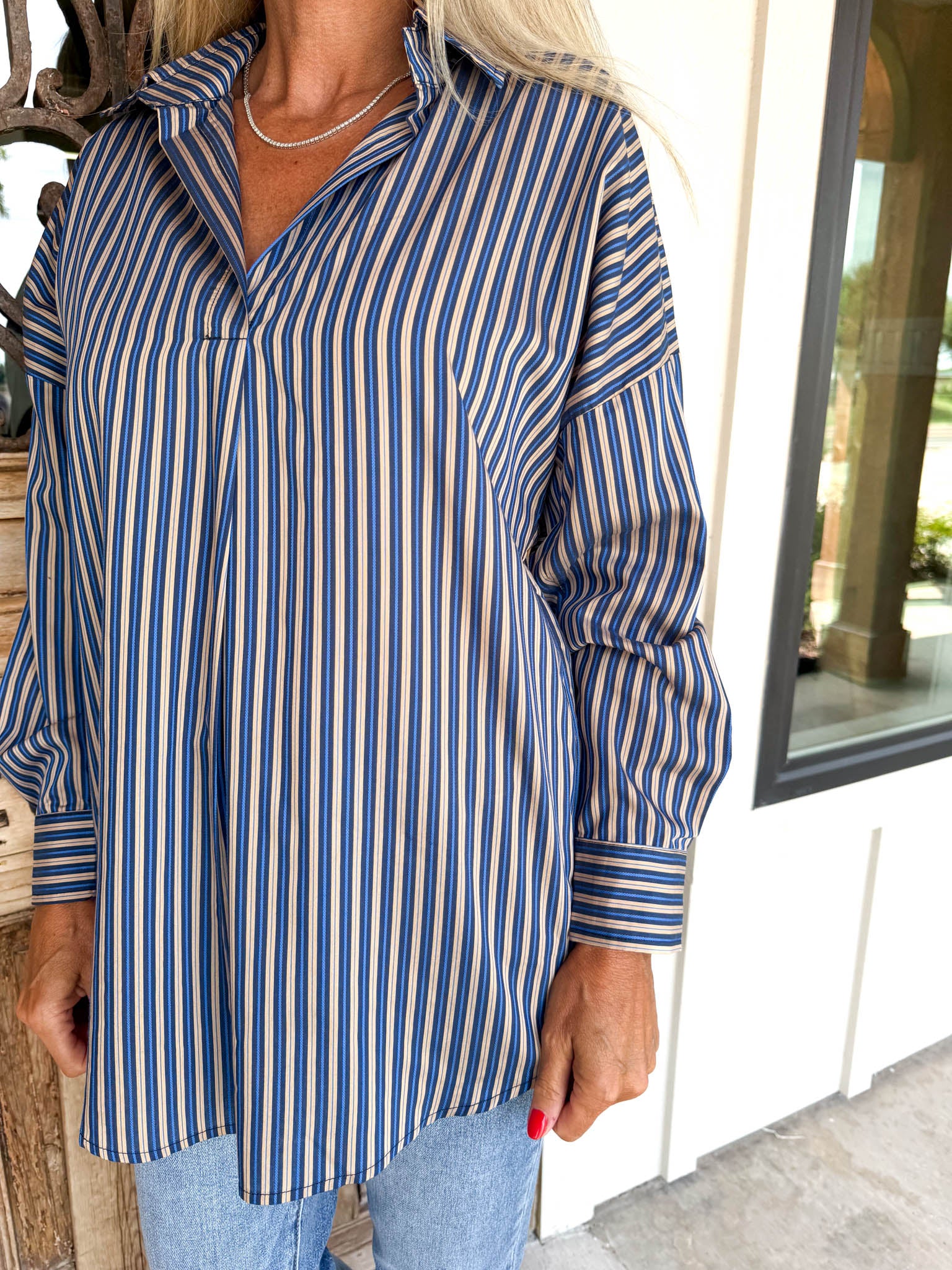 Preppy Star Top Navy Stripe