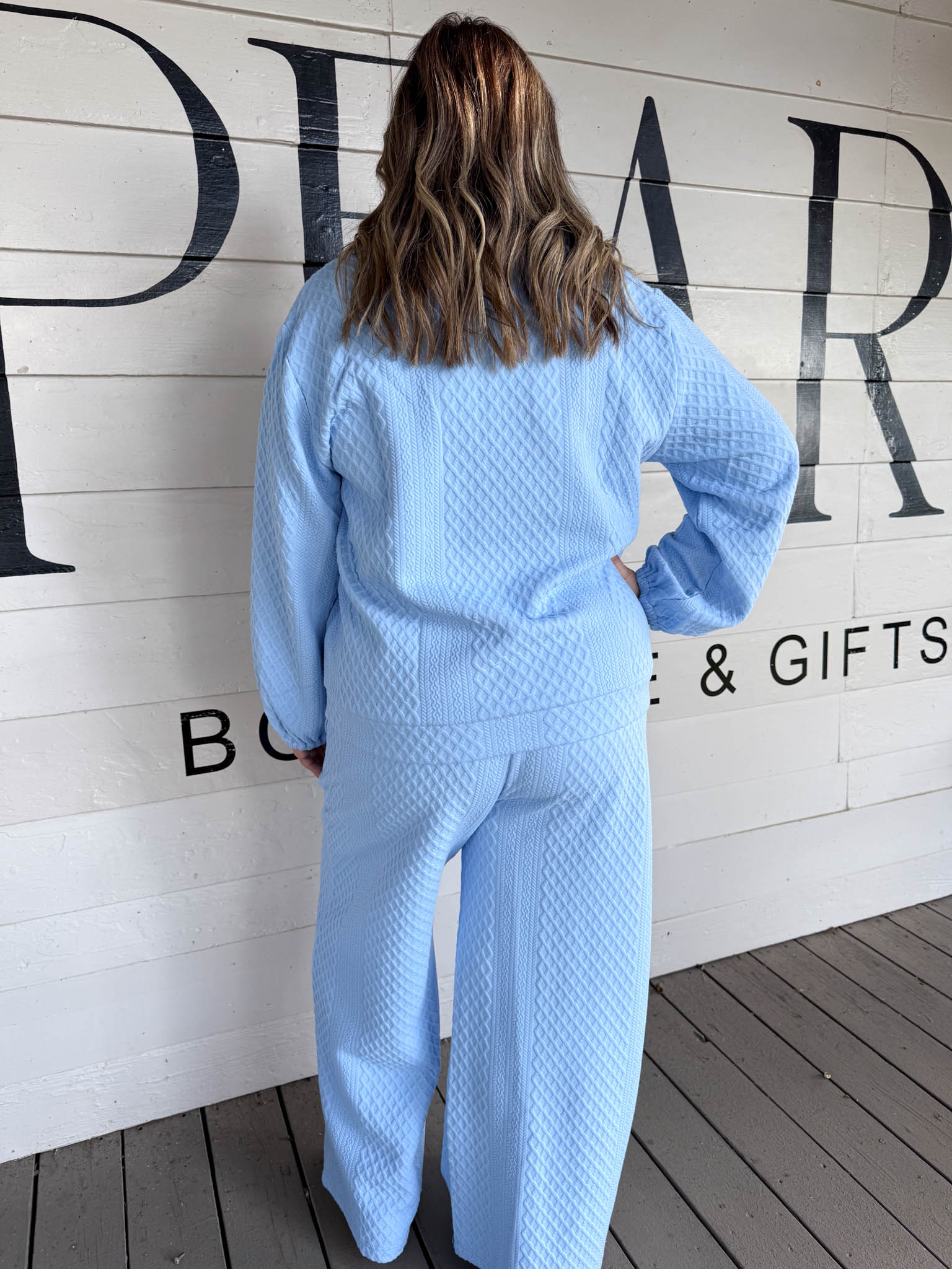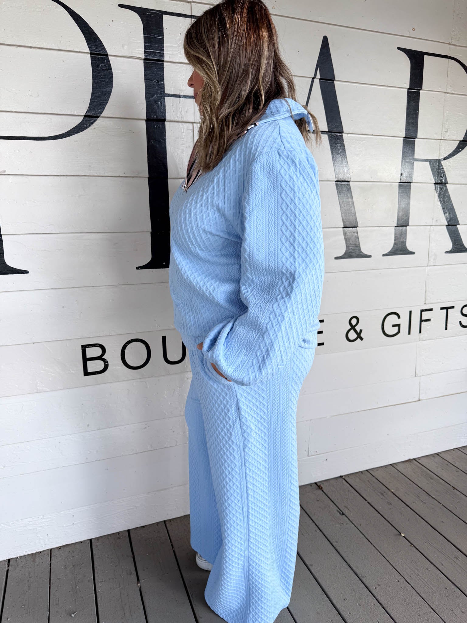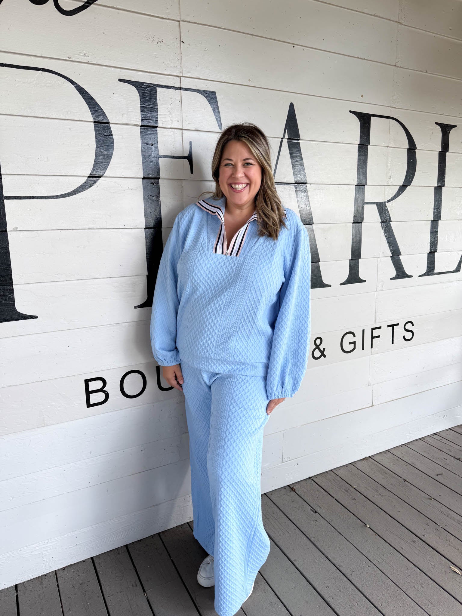 Elevate your casual vibe with the Abbie Textured Set—where sailor-inspired charm meets comfy wide-leg flair.