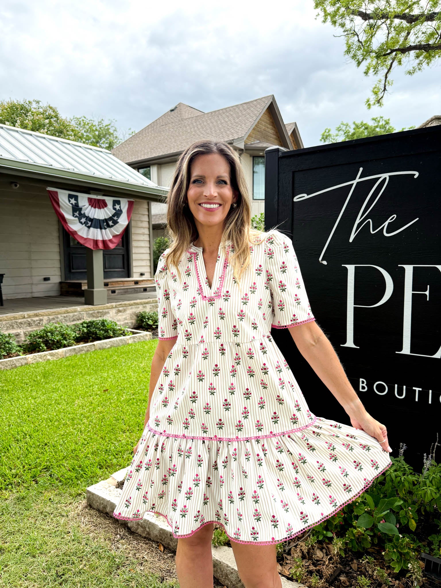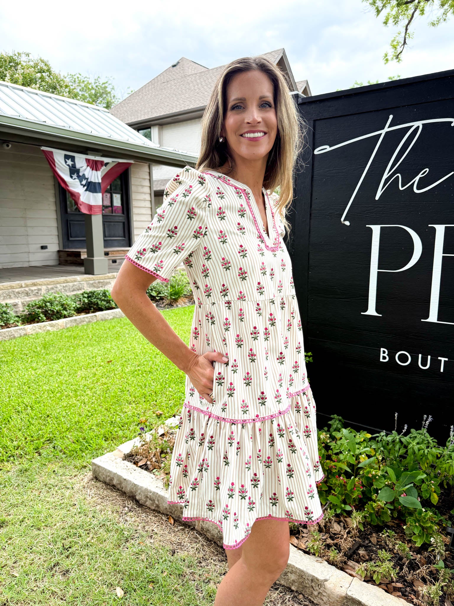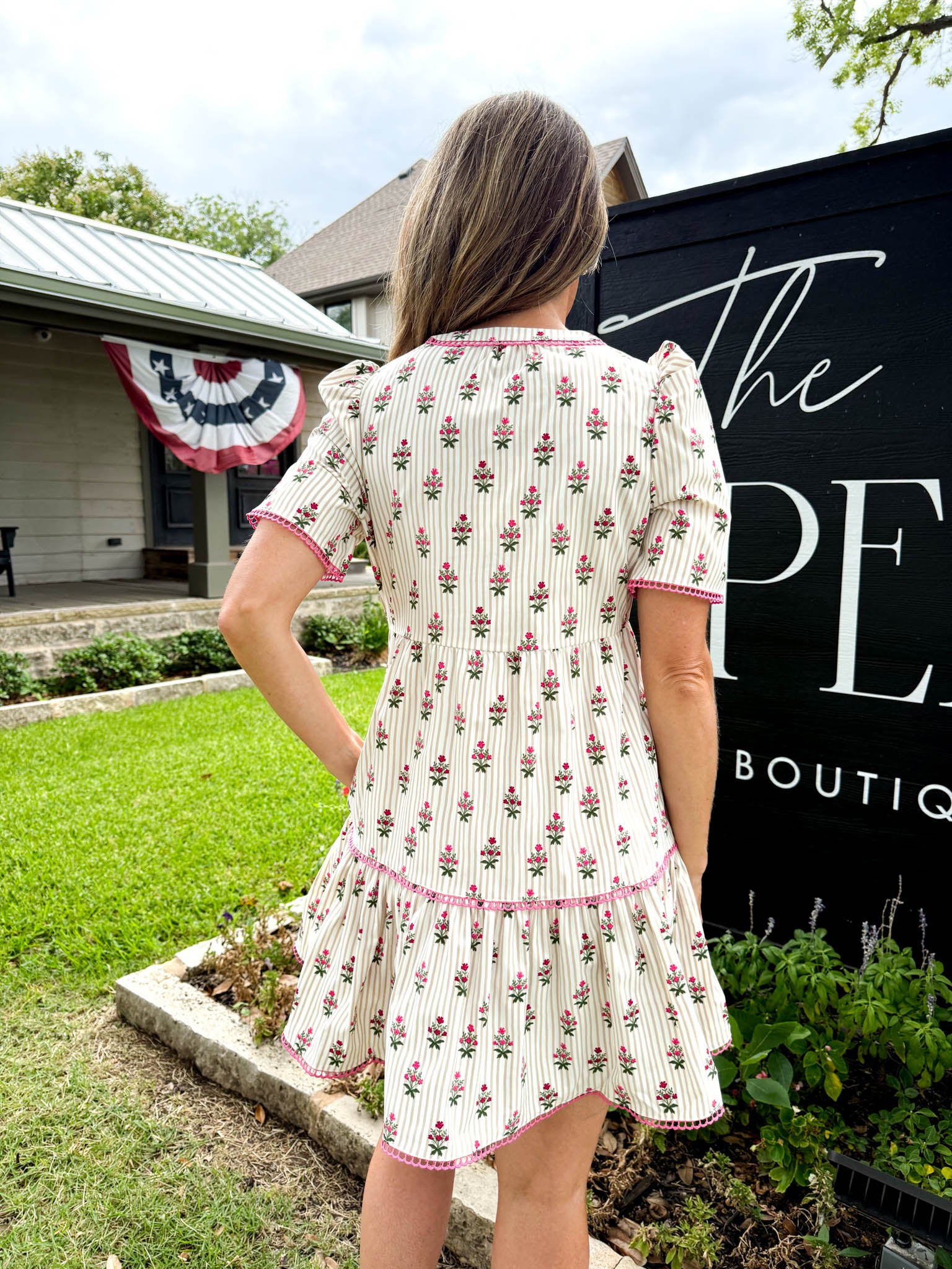 Adelyn Cottage Stripes Tan Mini Dress