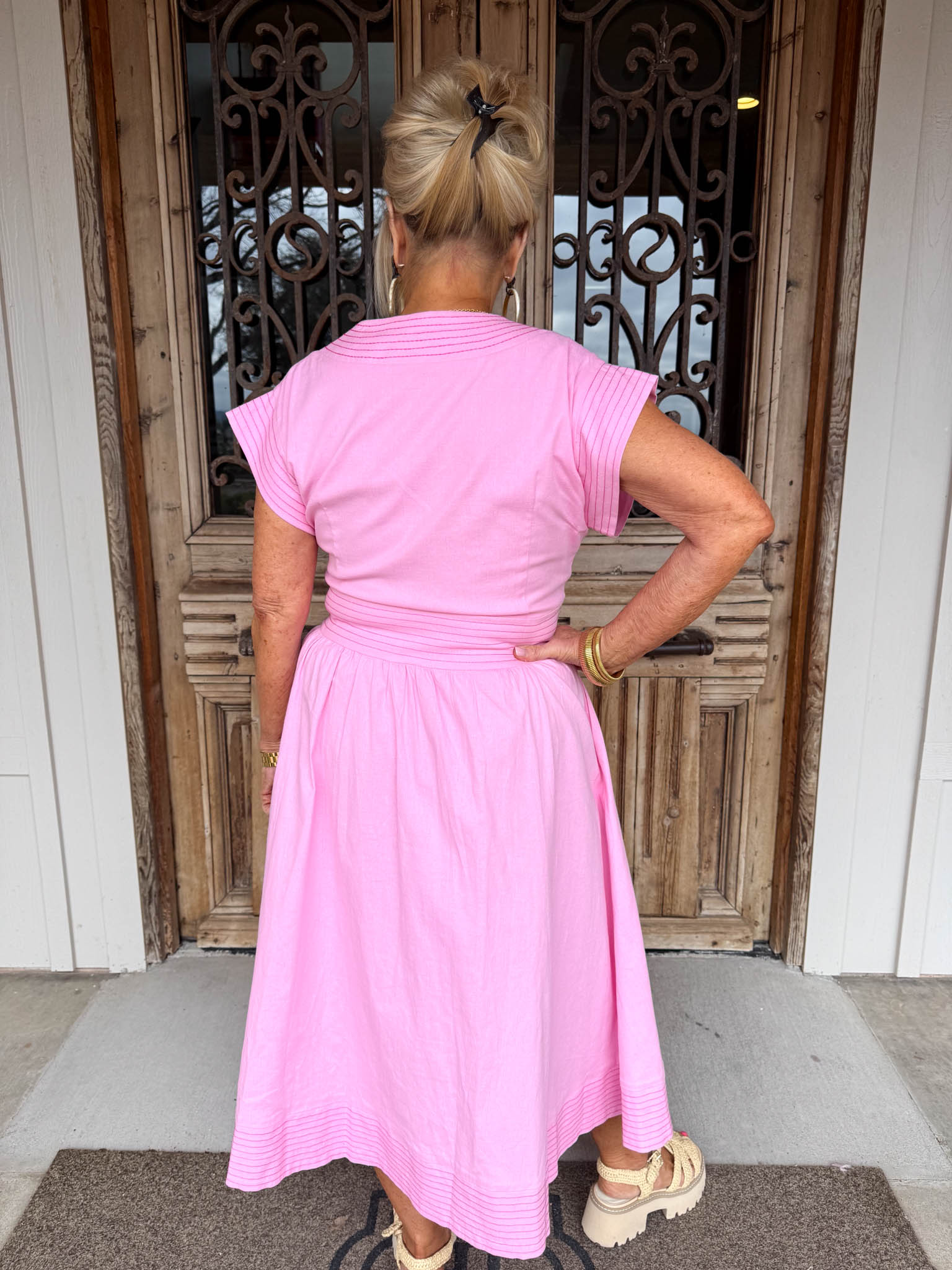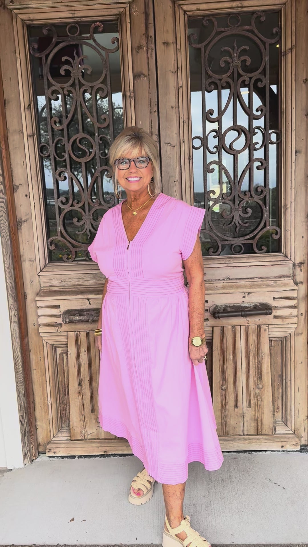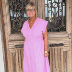 • V-neckline and soft pink hue deliver effortless versatility for brunch, work, or evening occasions