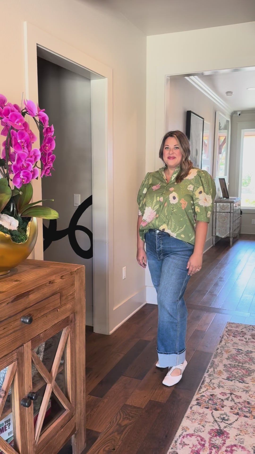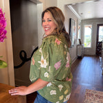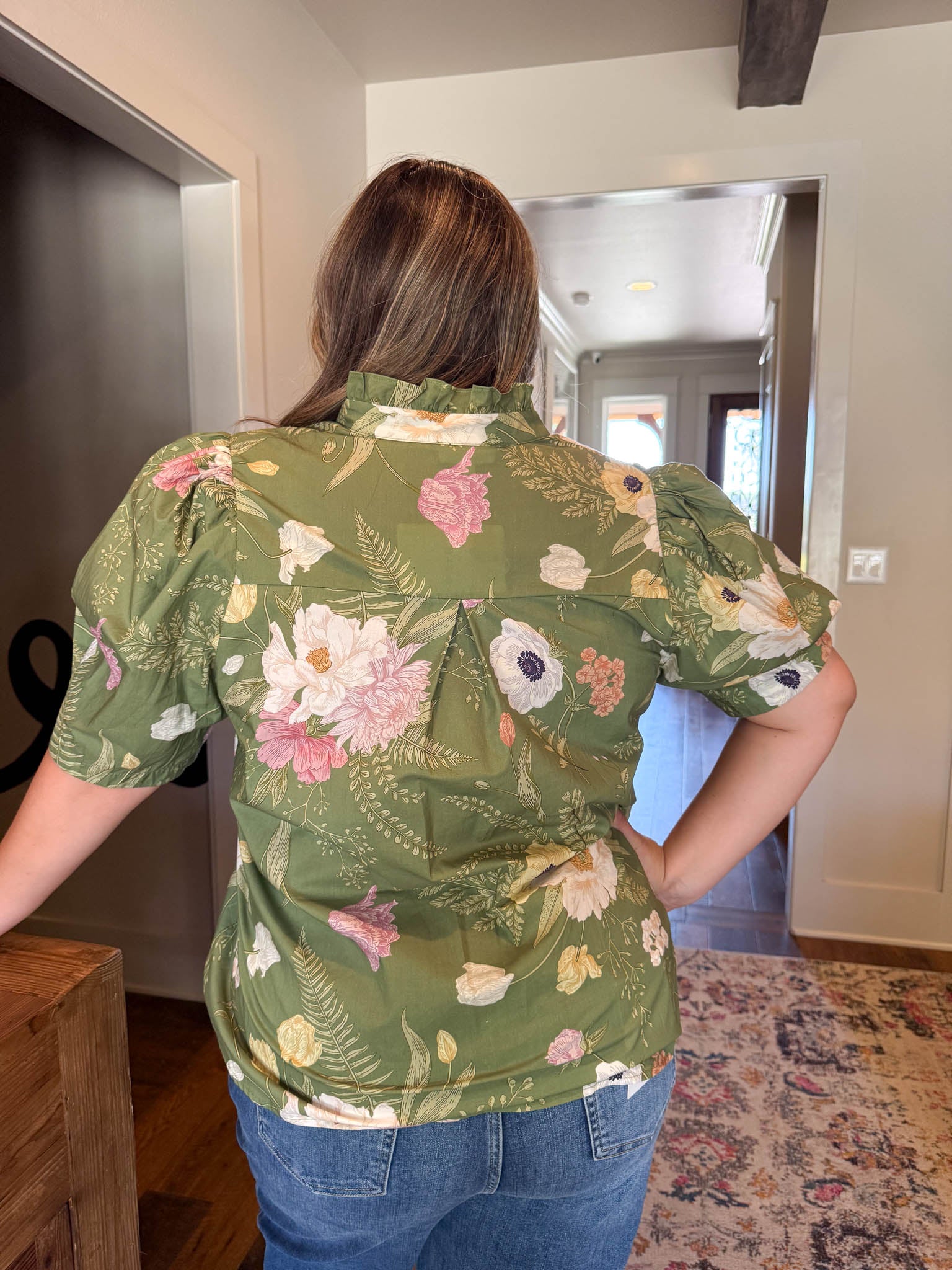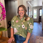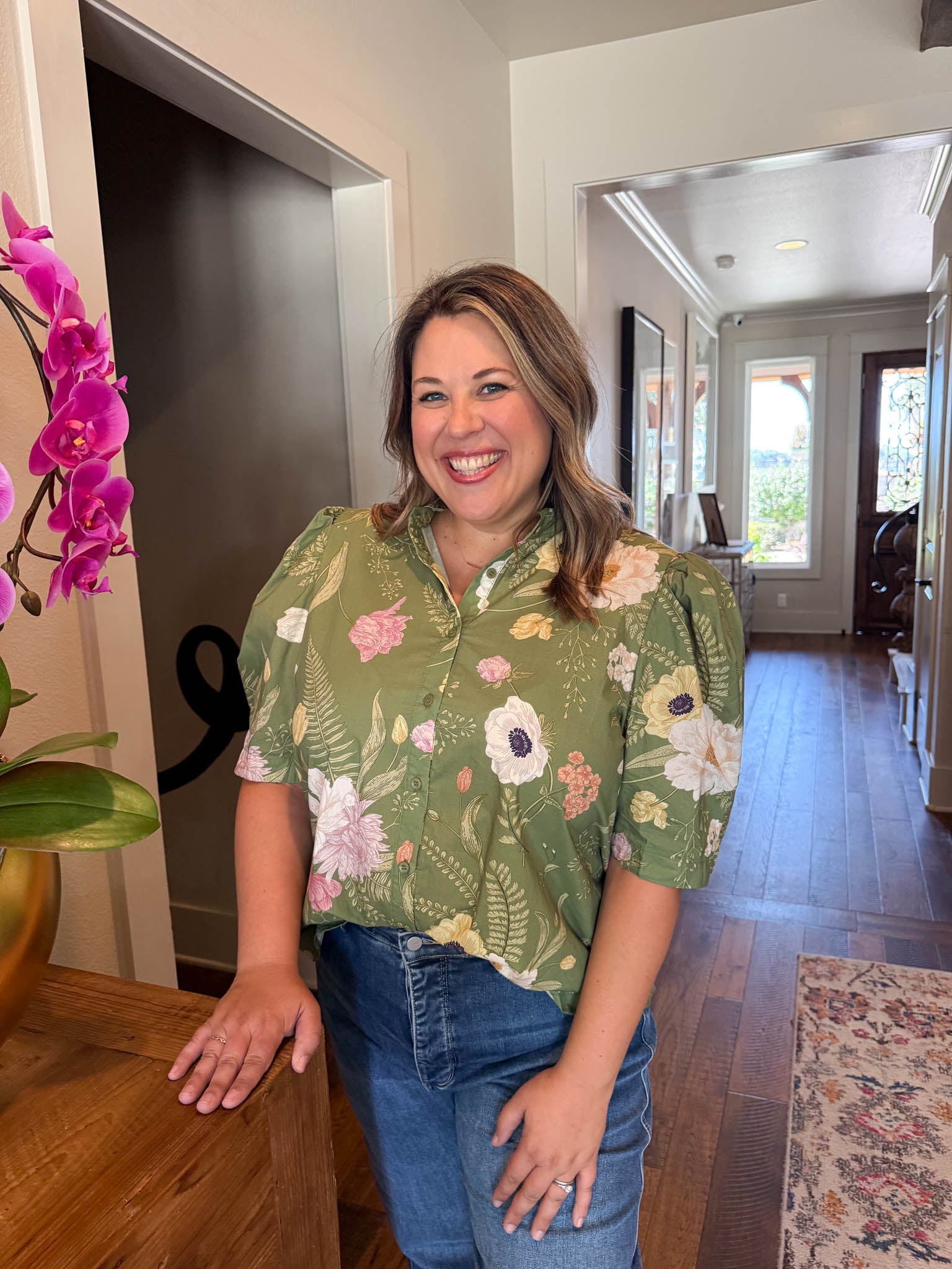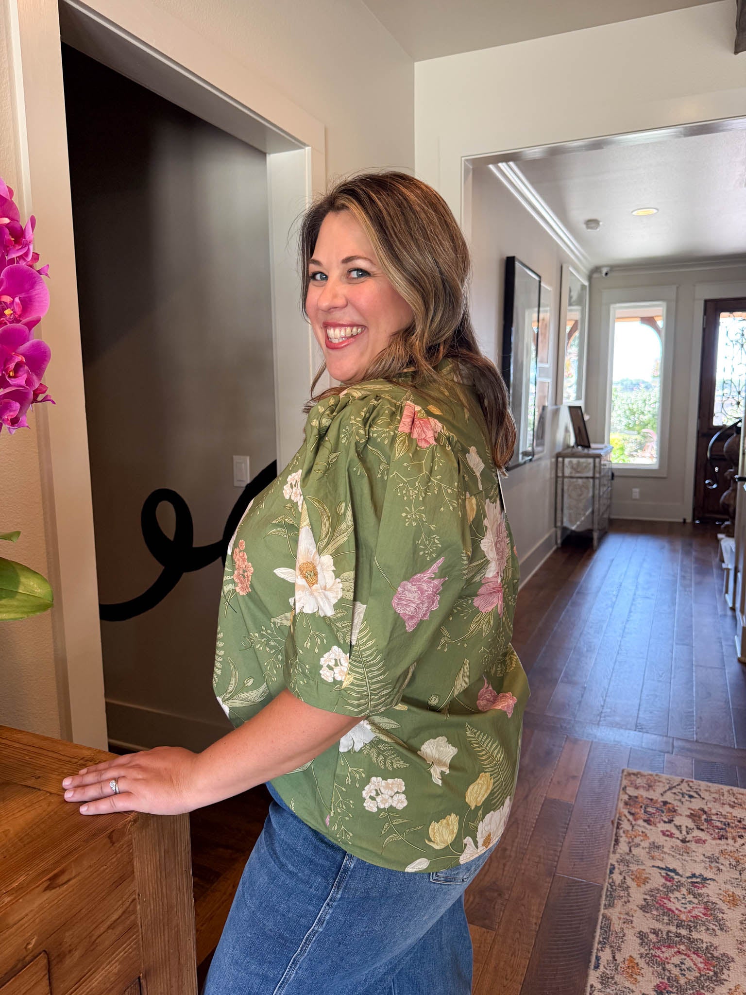 Brighten your wardrobe with the Anna Top, a green puffy short sleeve blouse adorned with charming white floral prints that effortlessly boost your playful style.