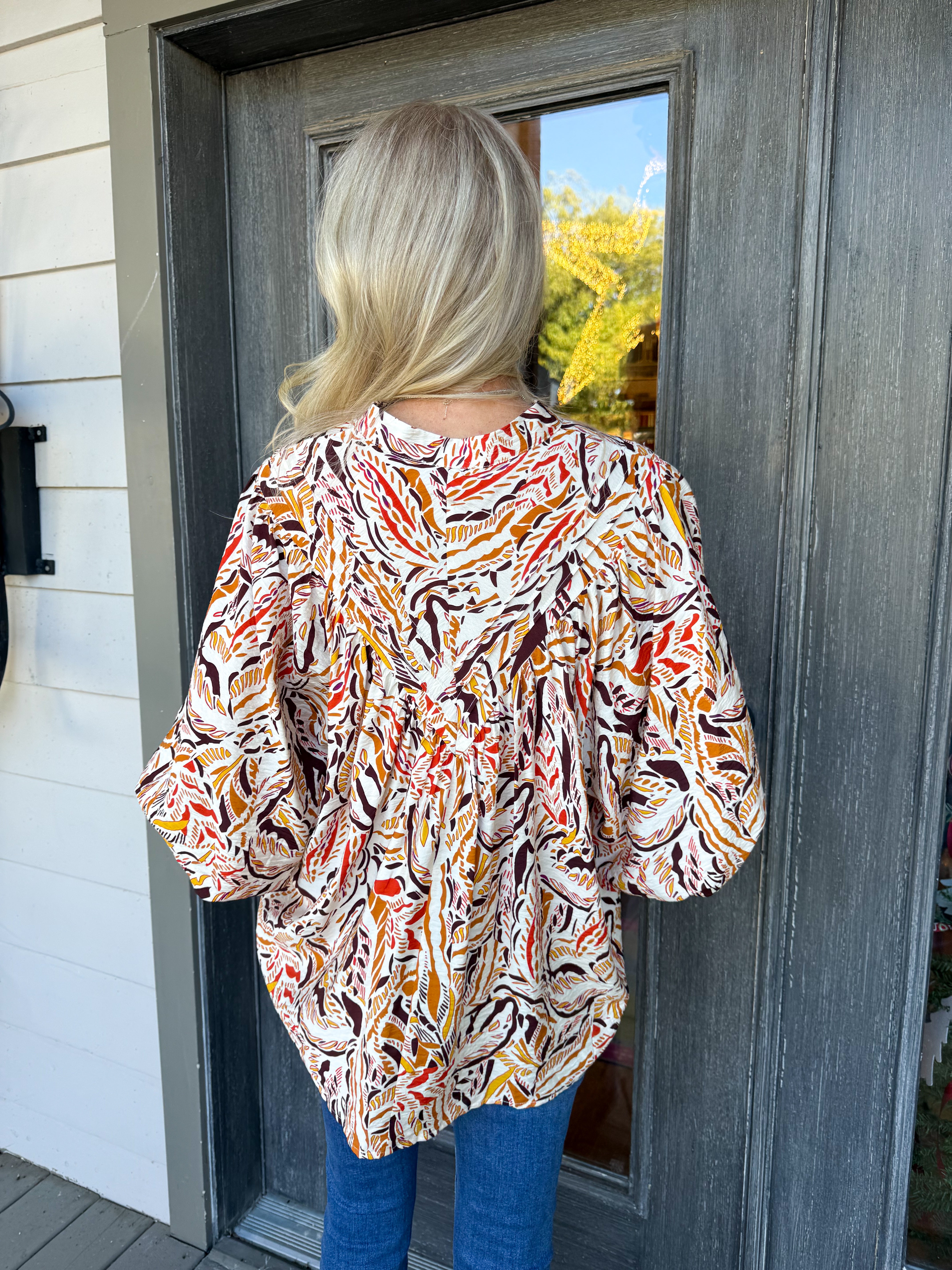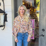 The April Poplin Blouse brings warmth and character to your closet with its charming apricot and brown print that feels both timeless and totally on-trend.