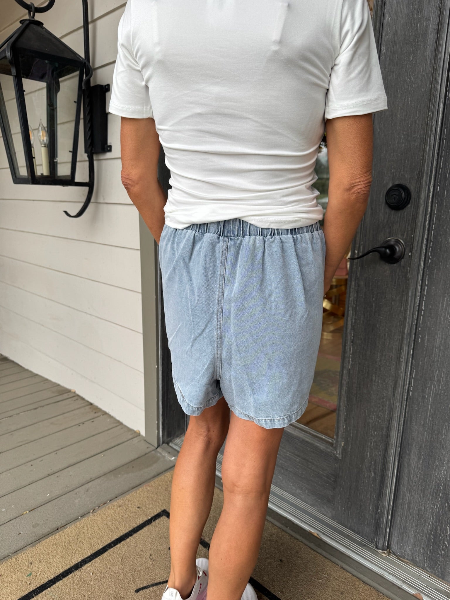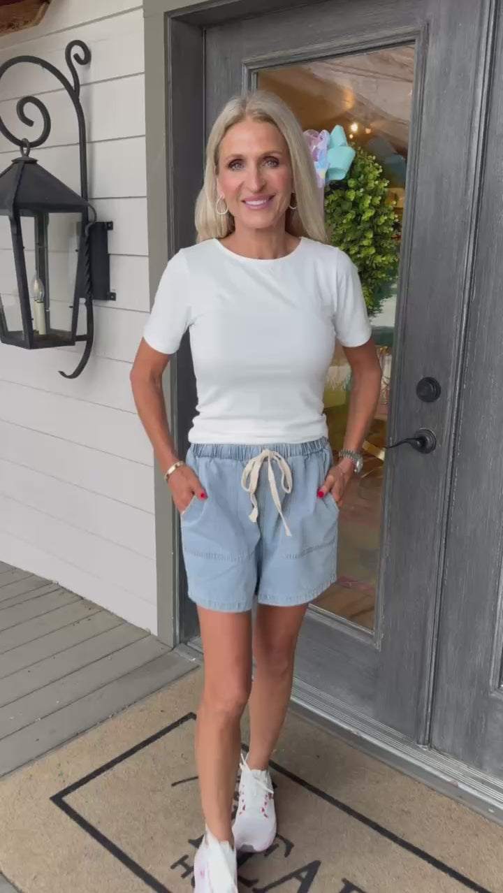 These breezy light blue washed denim shorts are your new warm-weather essential—soft, comfortable, and ready for anything from poolside hangs to casual weekend errands.