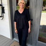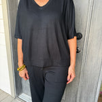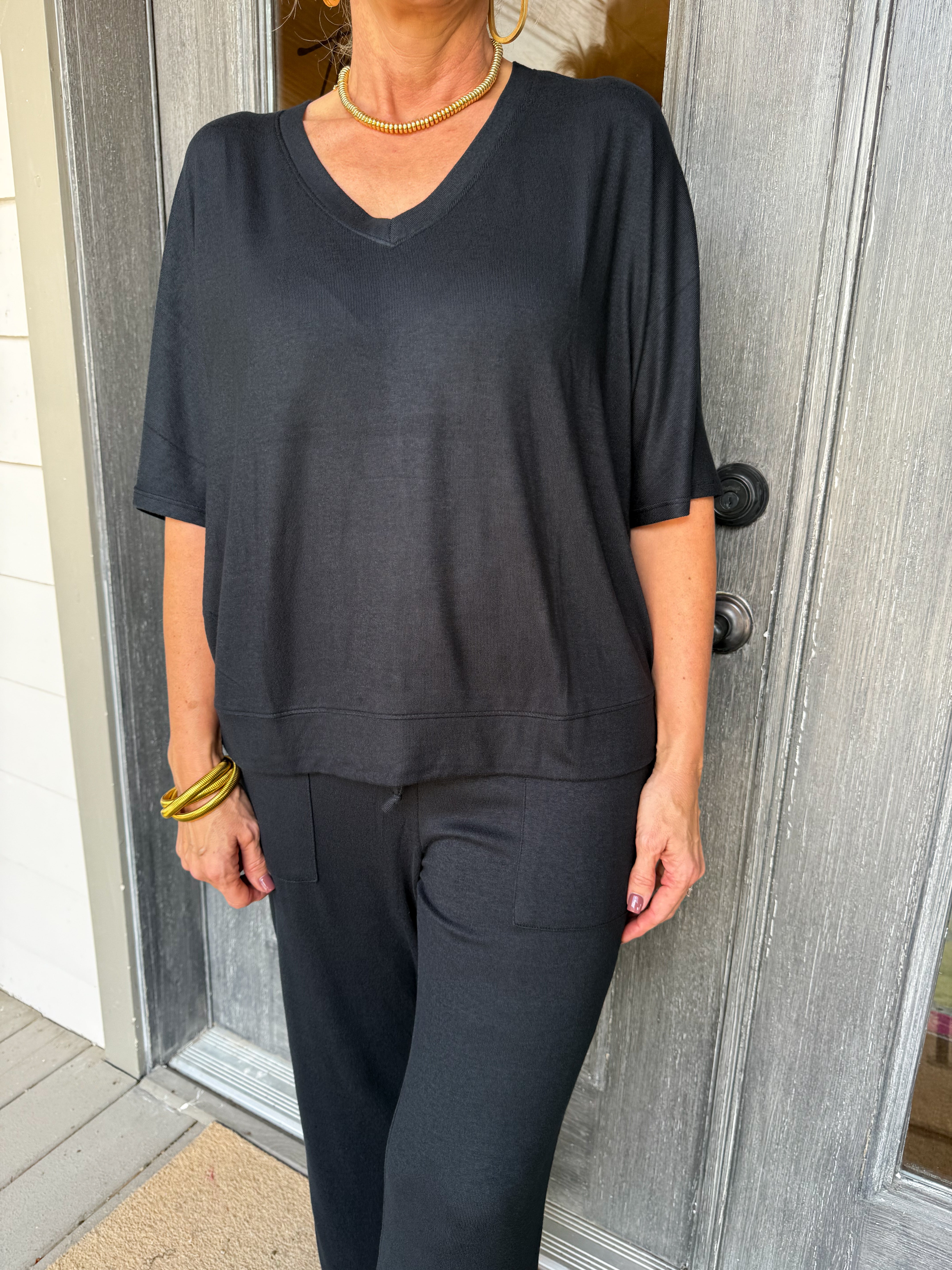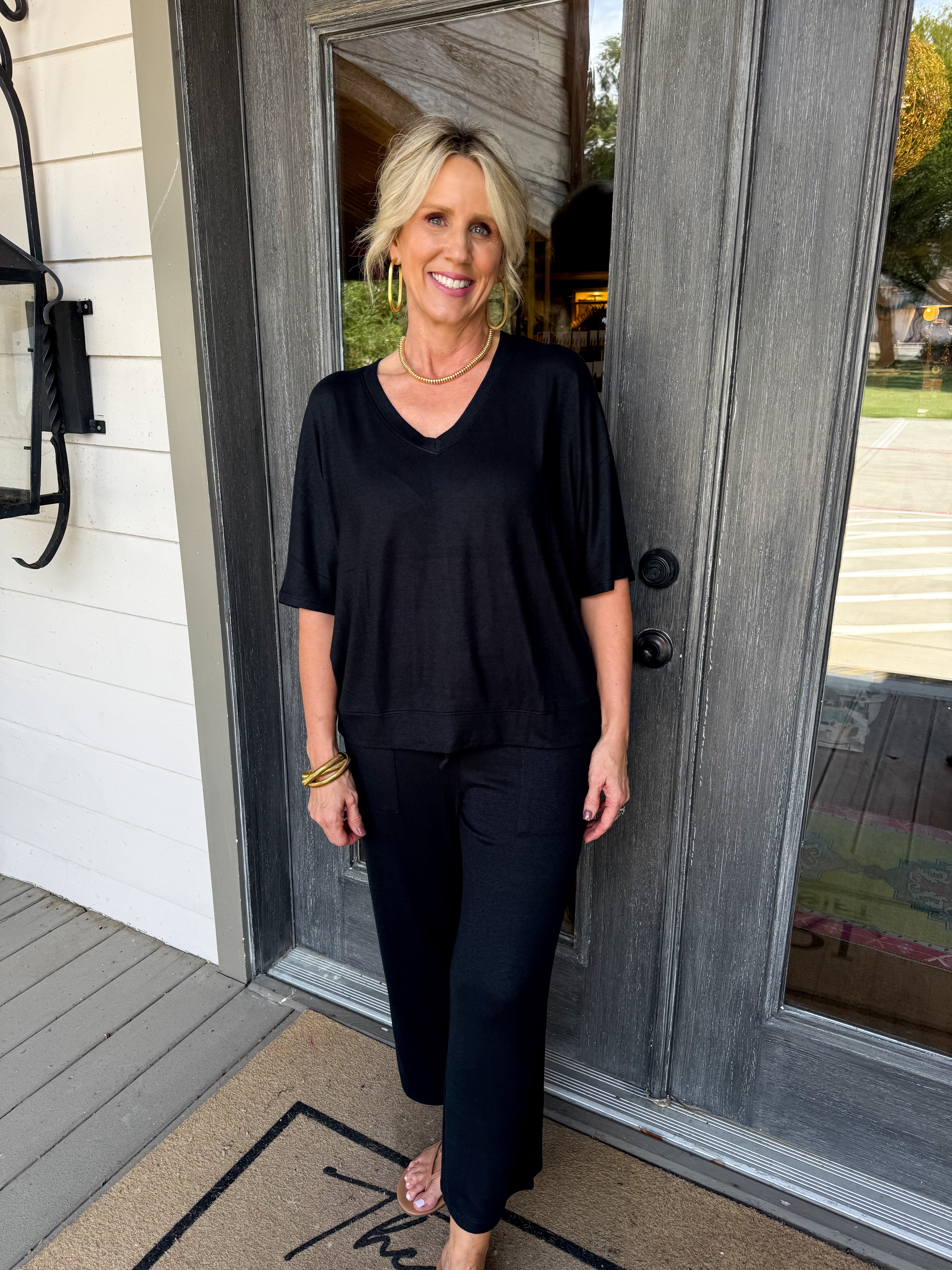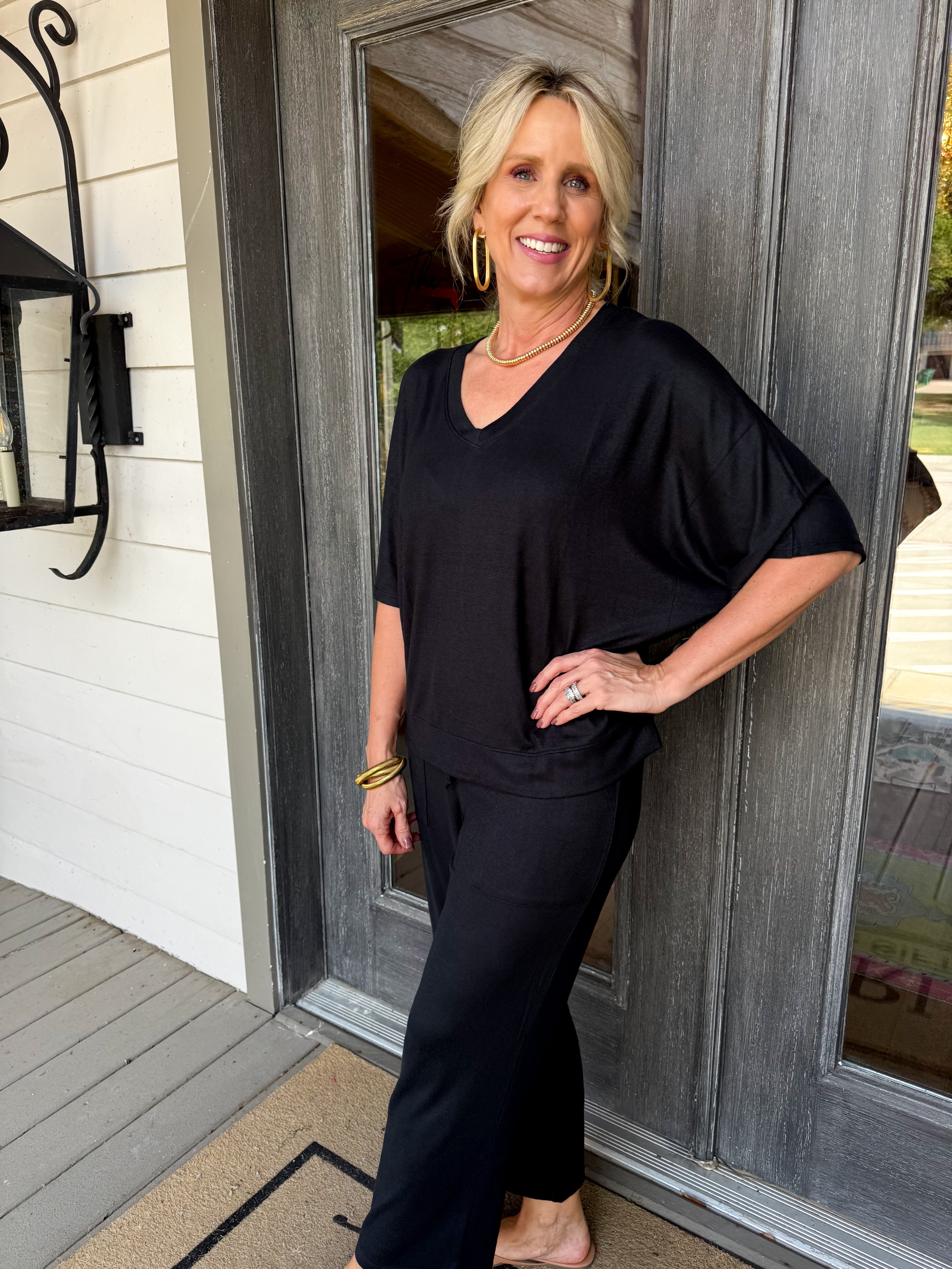 Slip into the Black Dream Relaxed Capri Lounge Set for buttery softness that feels like a hug all day long.