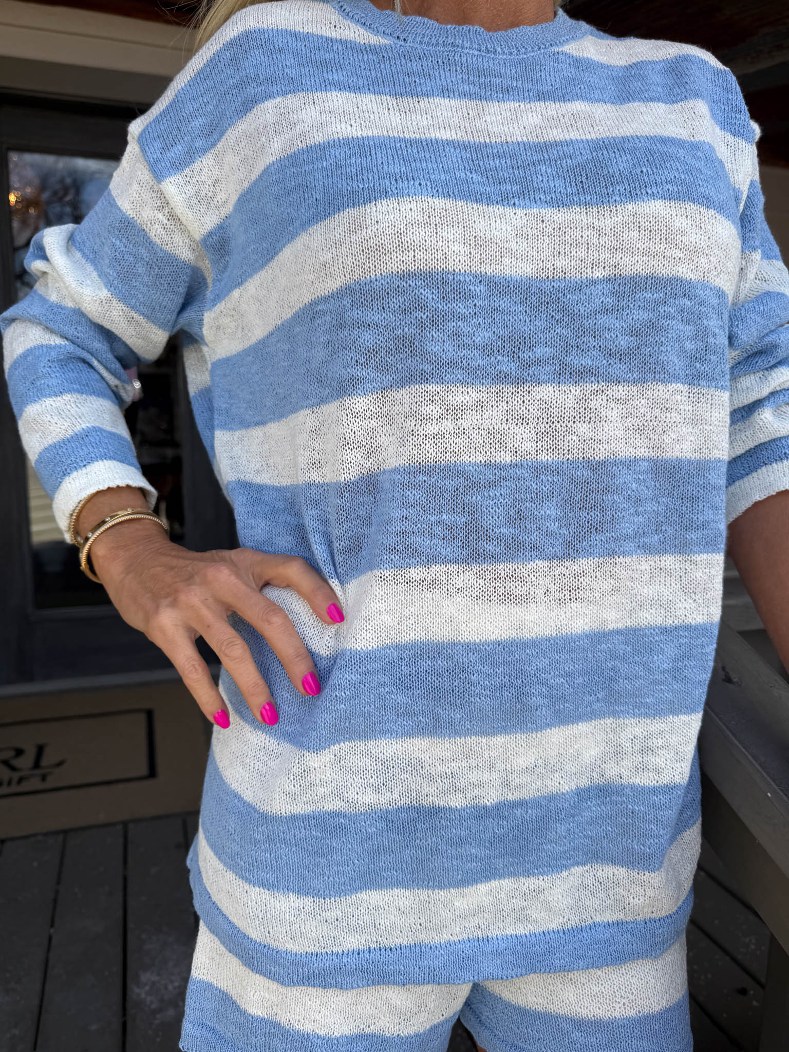 Blue + White Striped Sweater Set