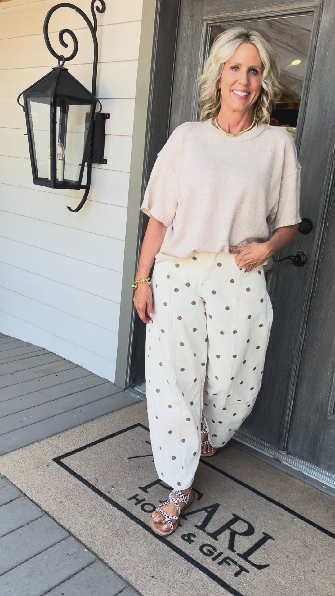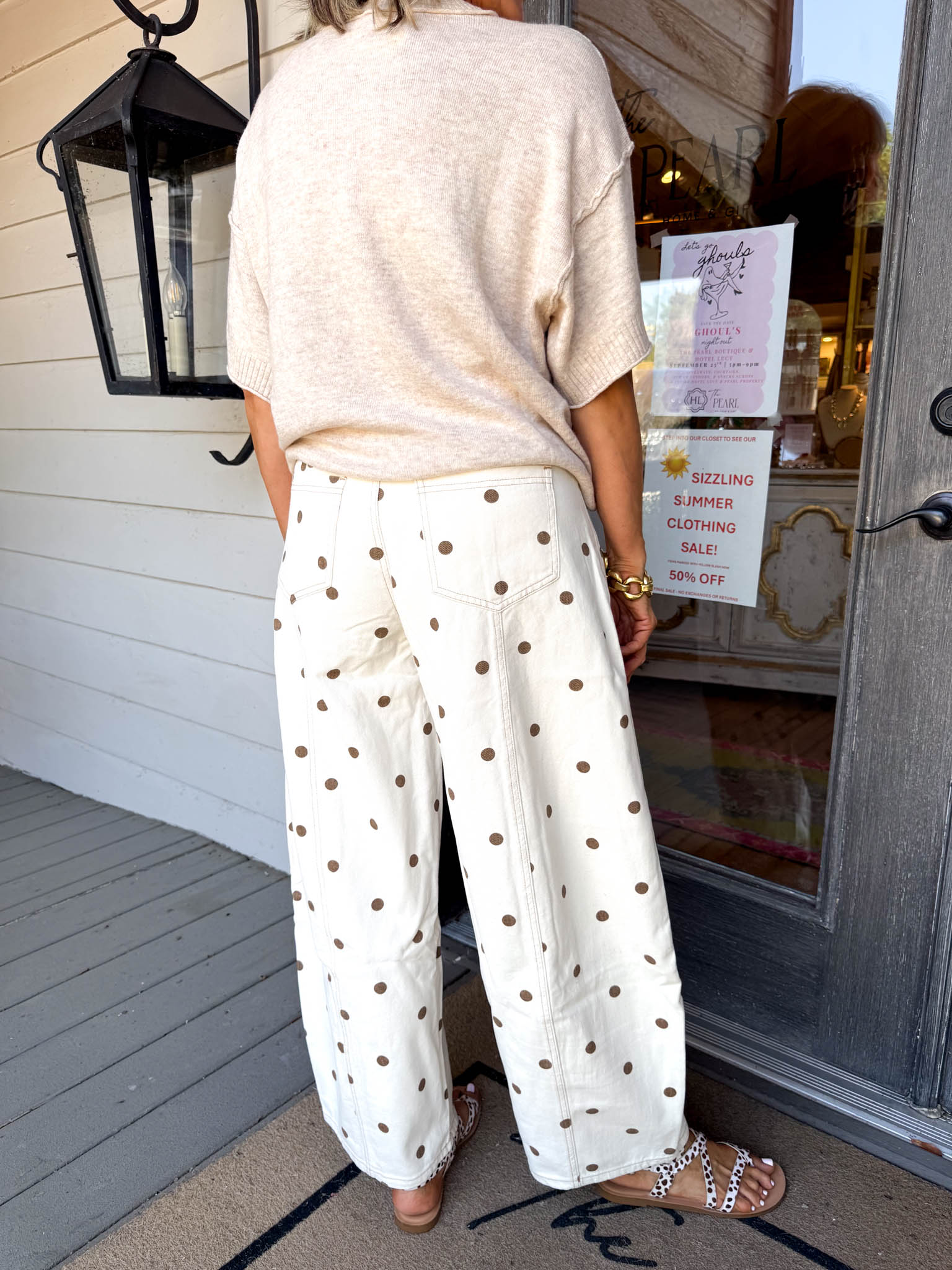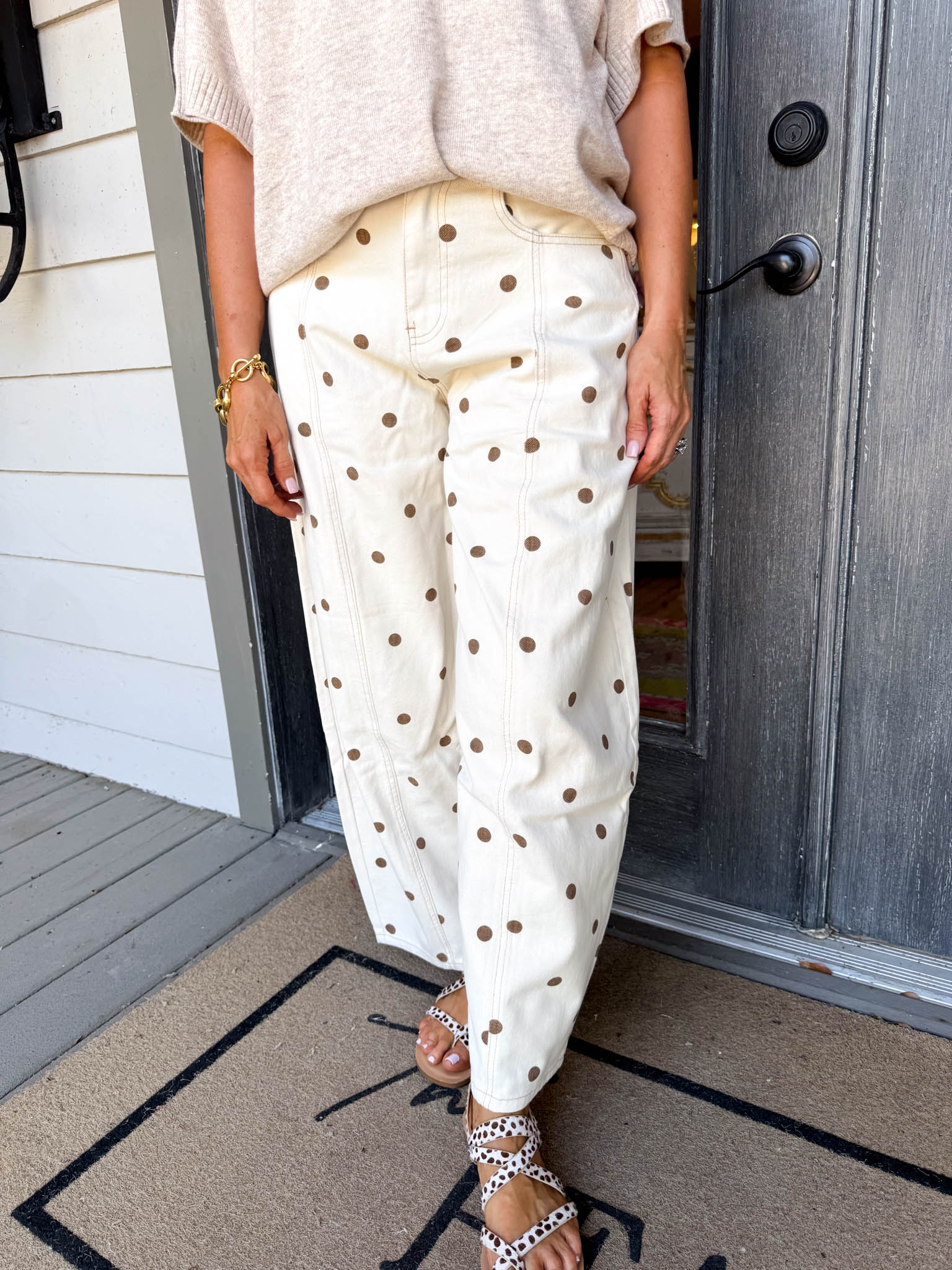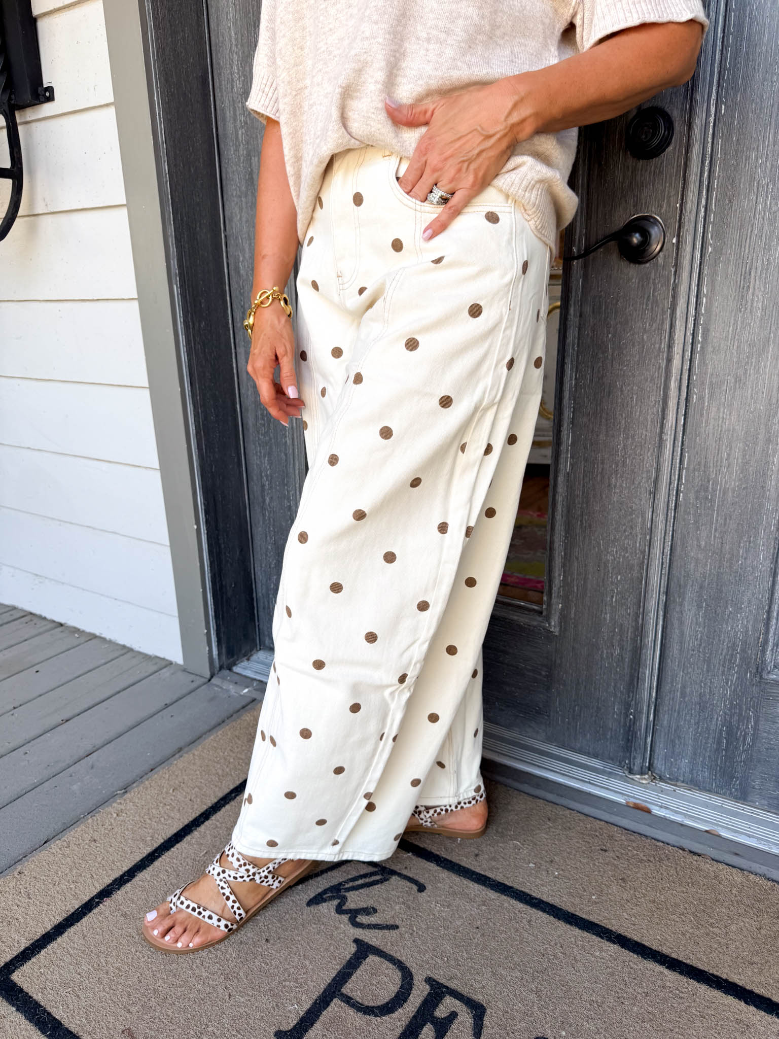 Step out in style with our Polkadot Wide Denim Pant, where classic charm meets playful comfort.