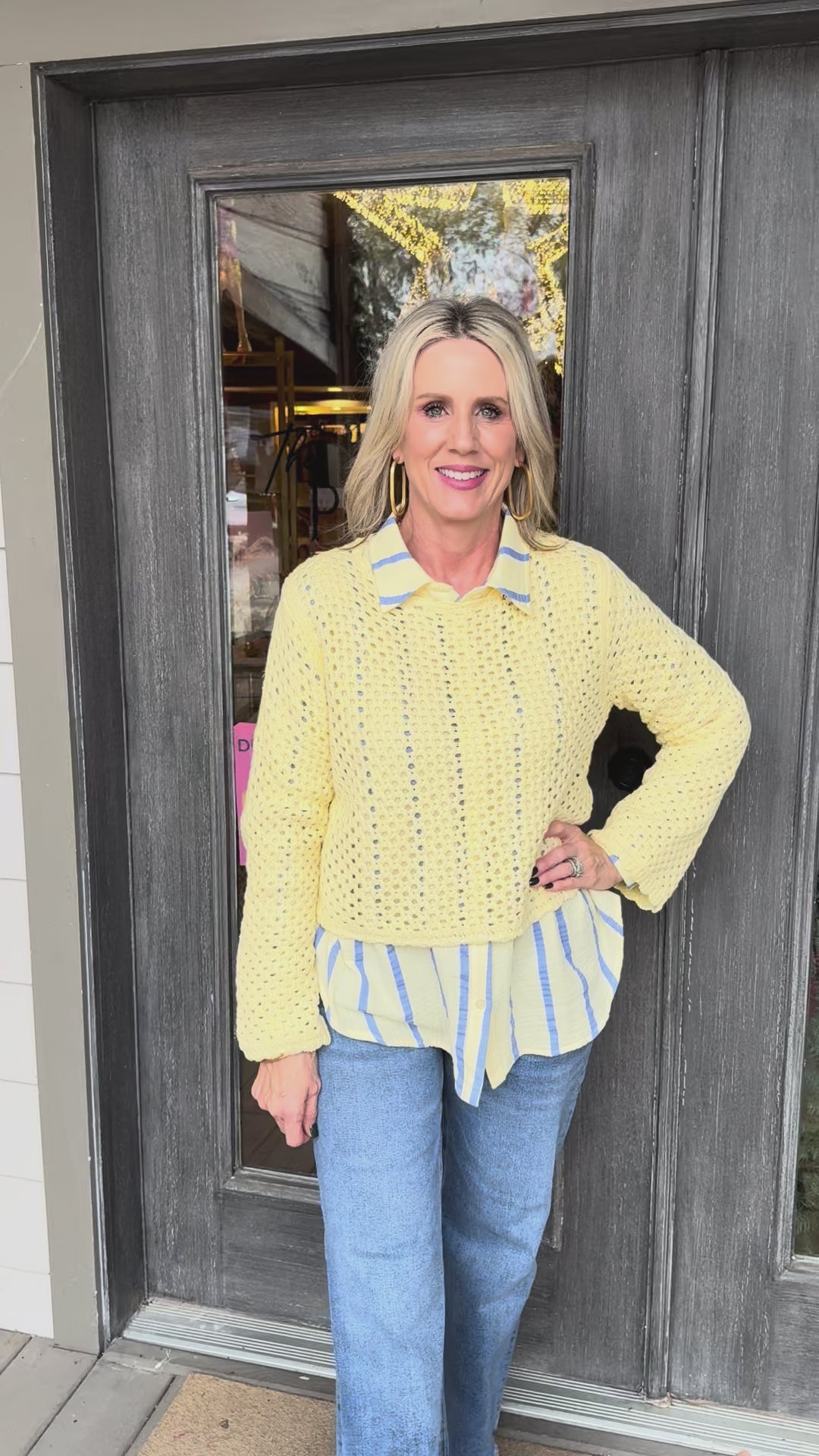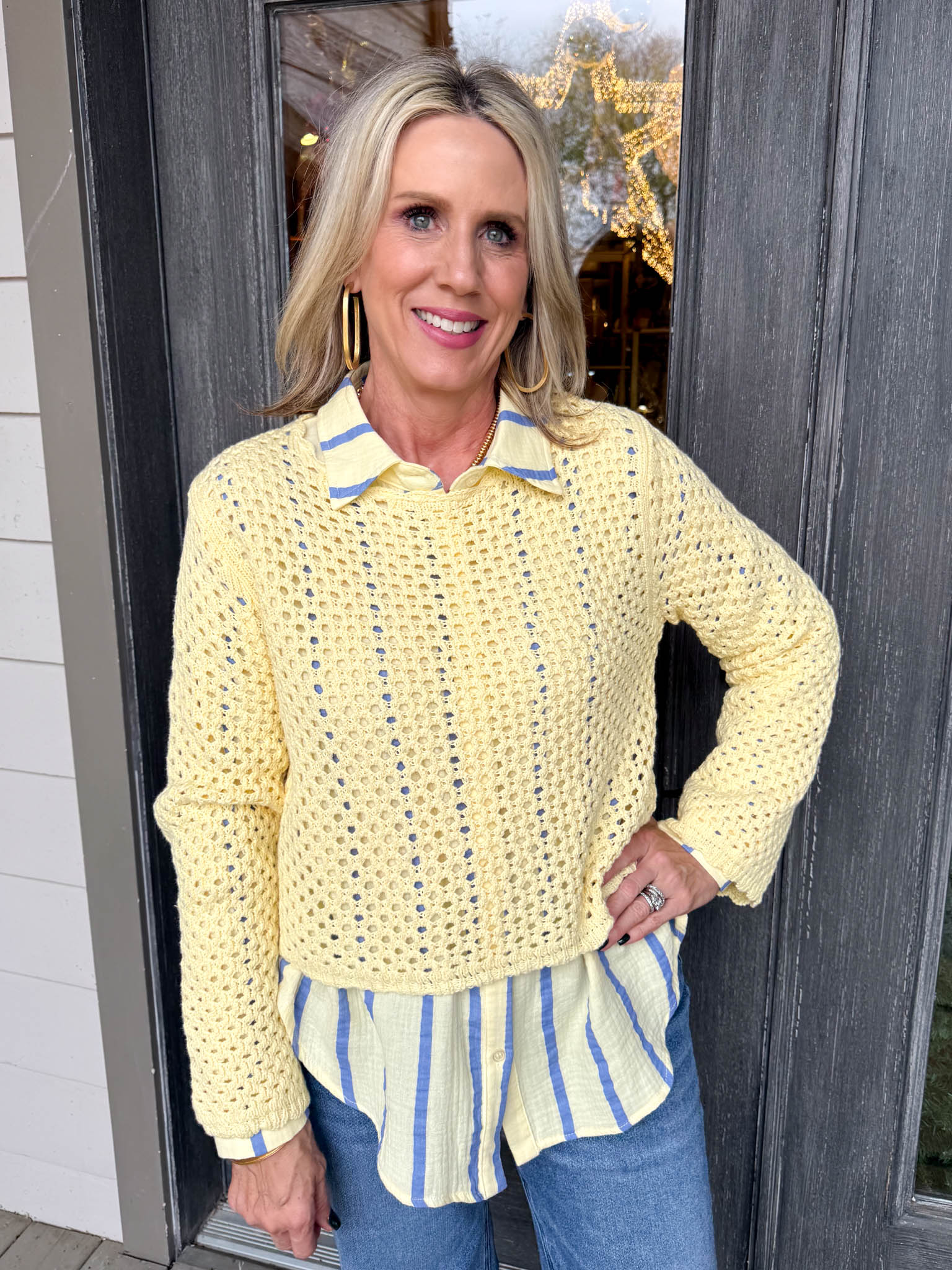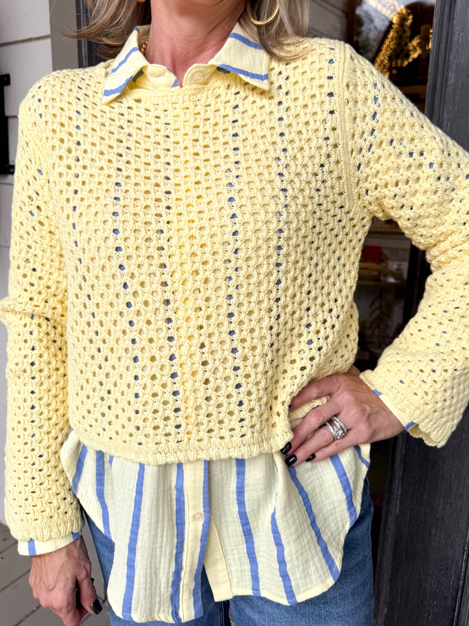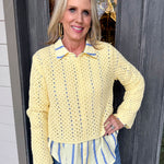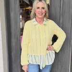 Wrap yourself in cozy charm with this butter-yellow crochet knit blouse that feels as good as it looks.