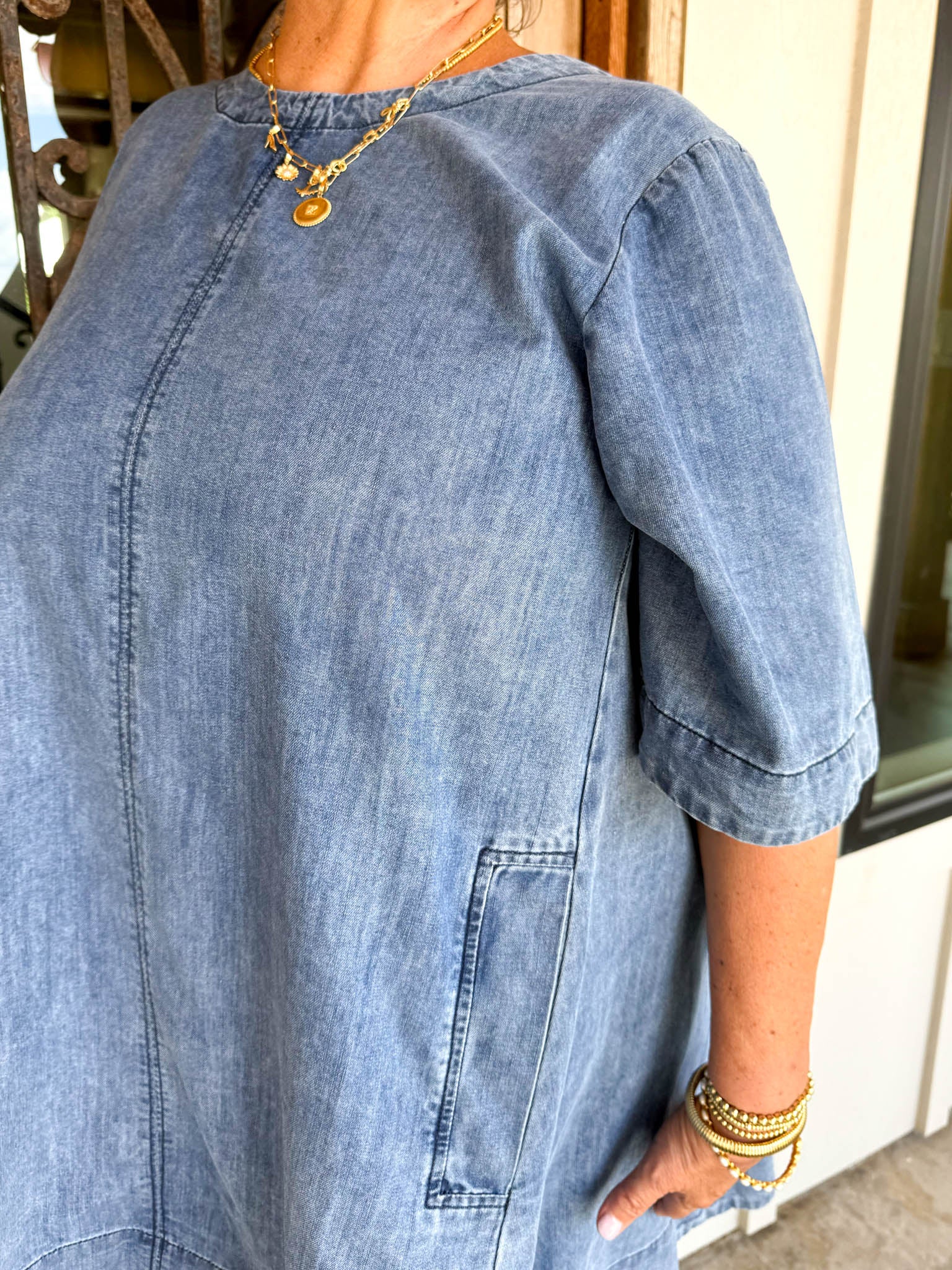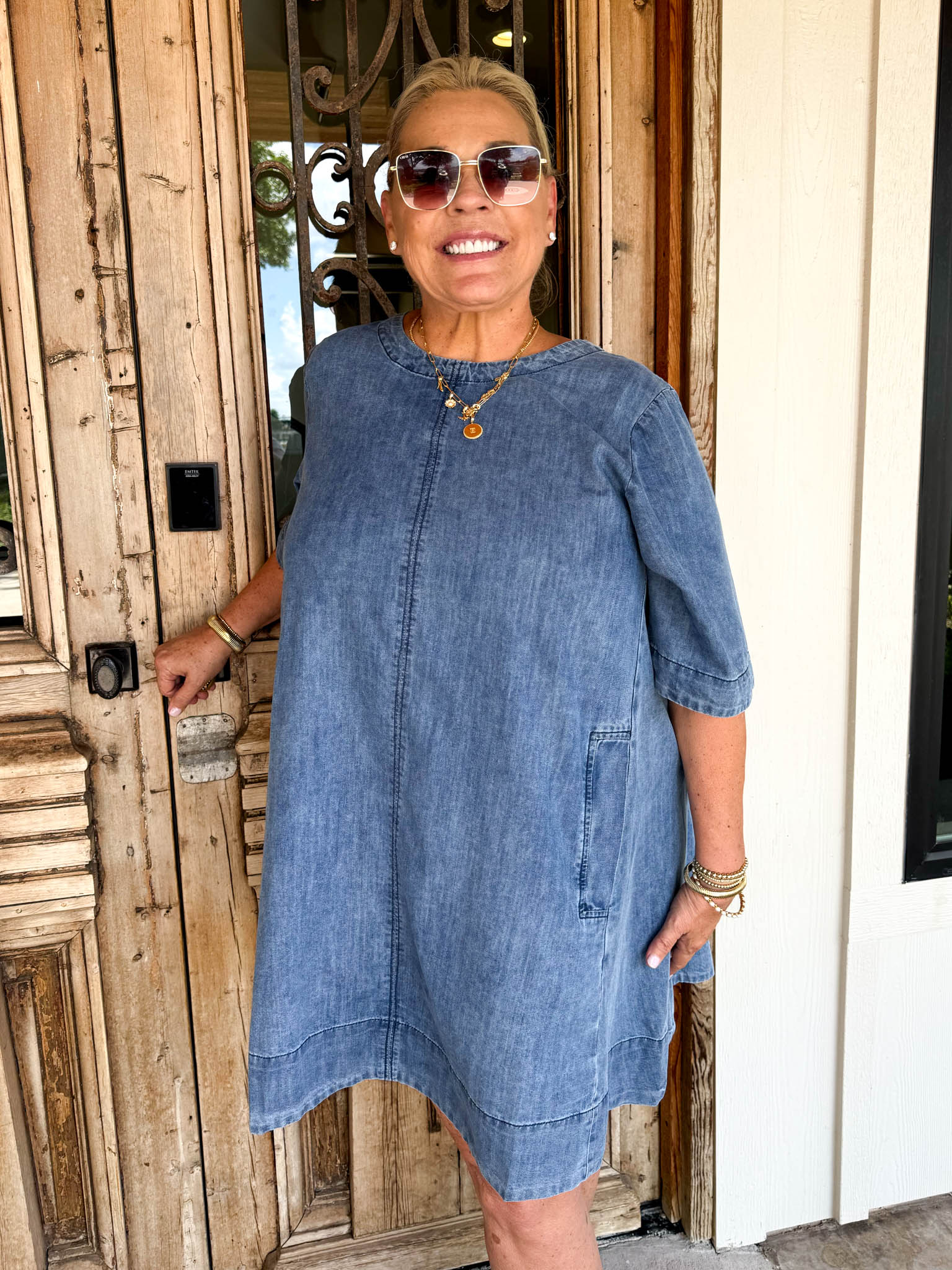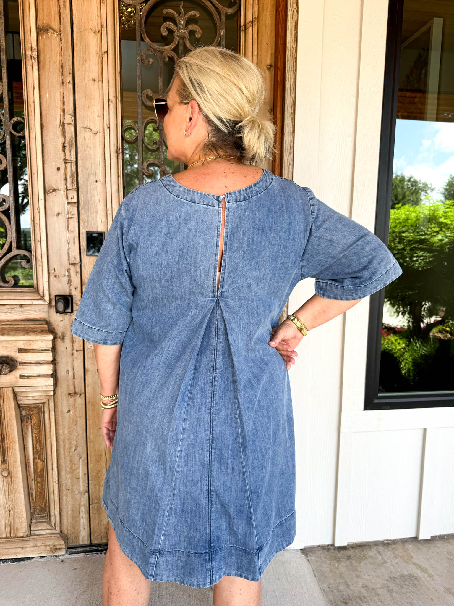 Elevate your casual look with the Callie Denim Mini Dress—where comfort meets chic in perfect harmony.