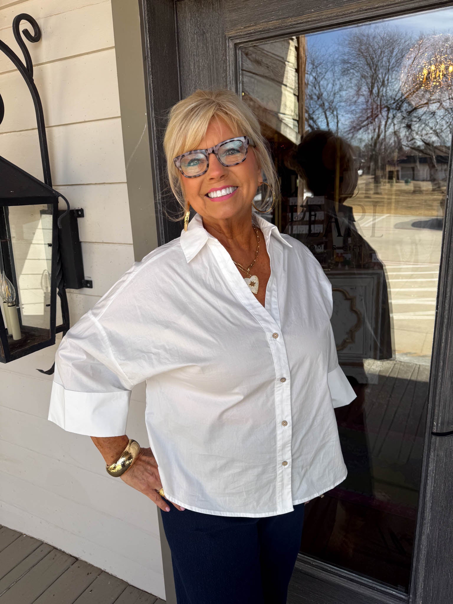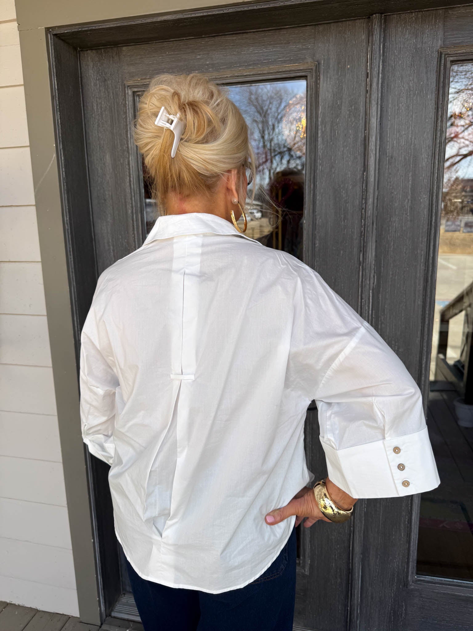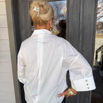 A crisp white button-down that transforms from polished to playful in seconds.