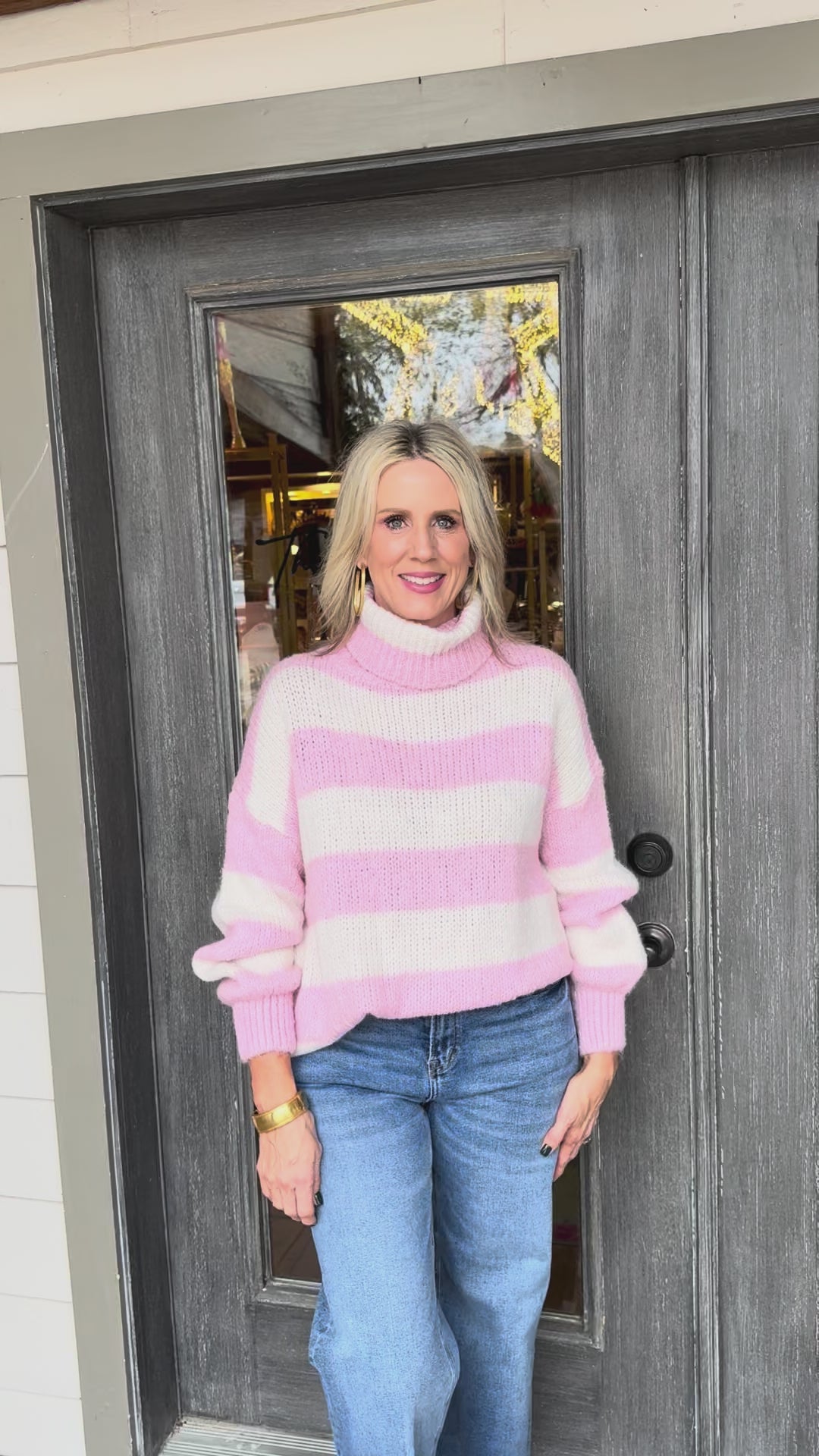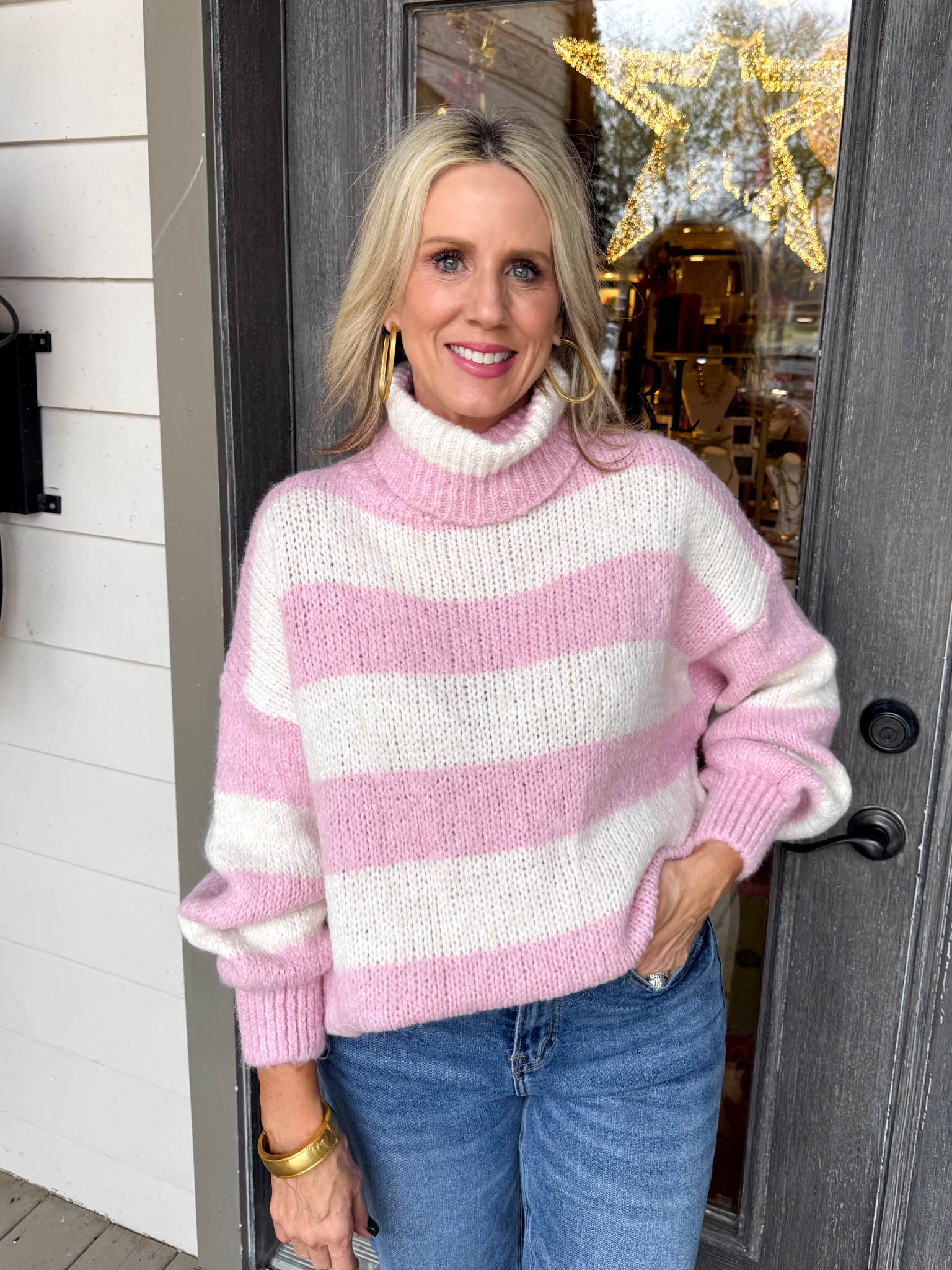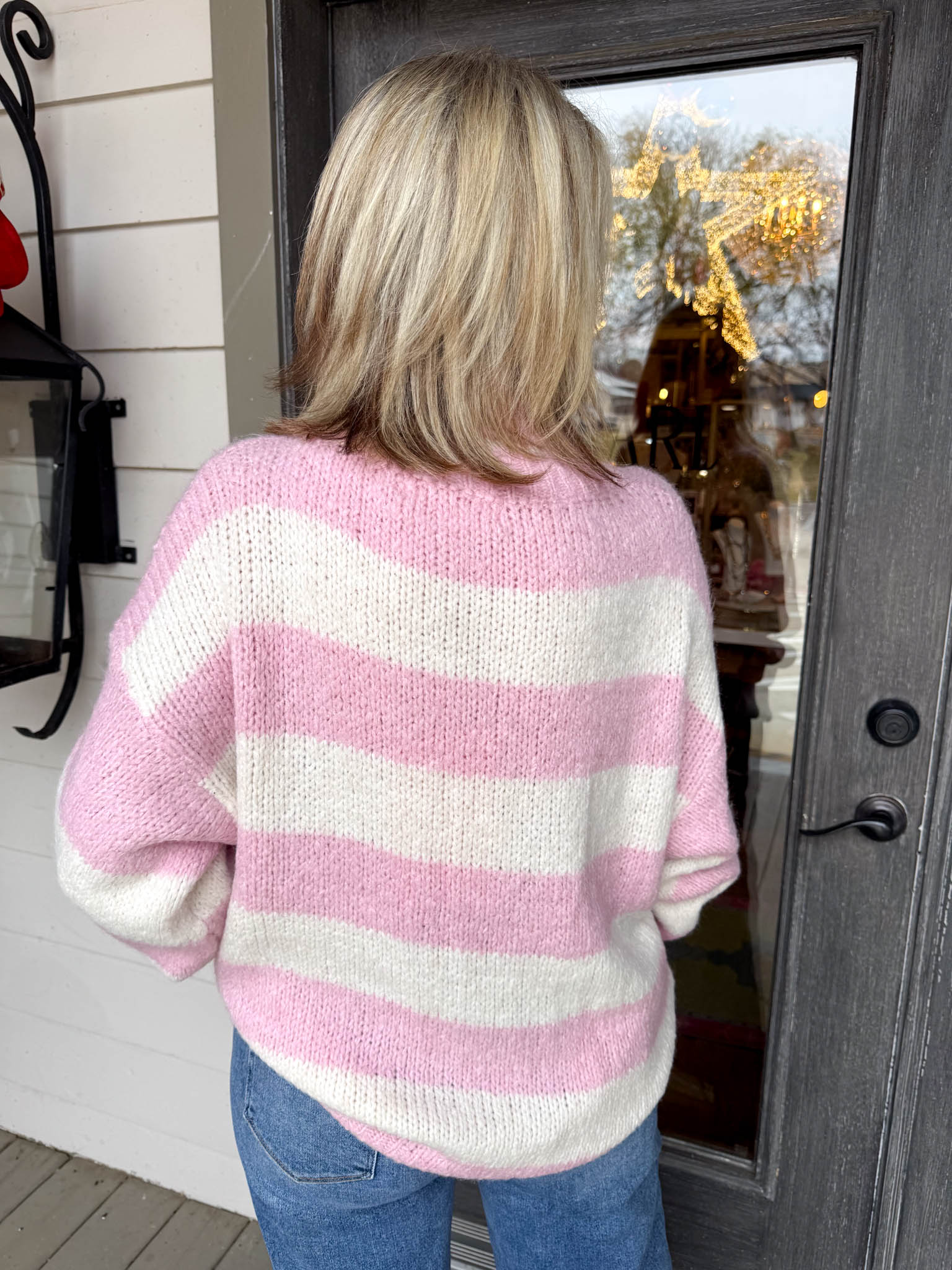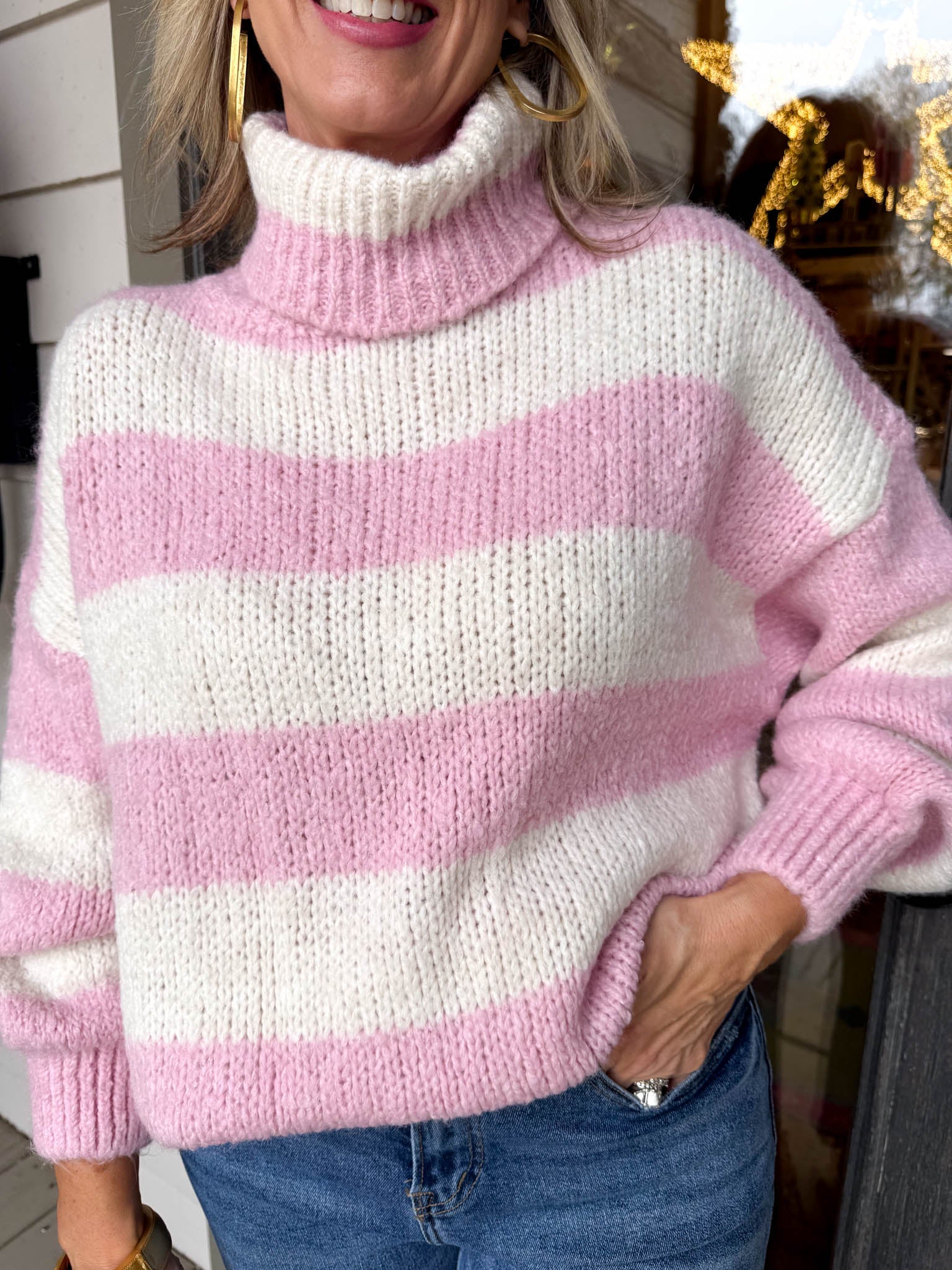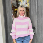 Wrap yourself in cozy charm with this oversized striped sweater that's equal parts comfort and style.