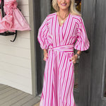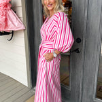 • Vibrant pink, red, and white stripes create a fresh, eye-catching look perfect for any season