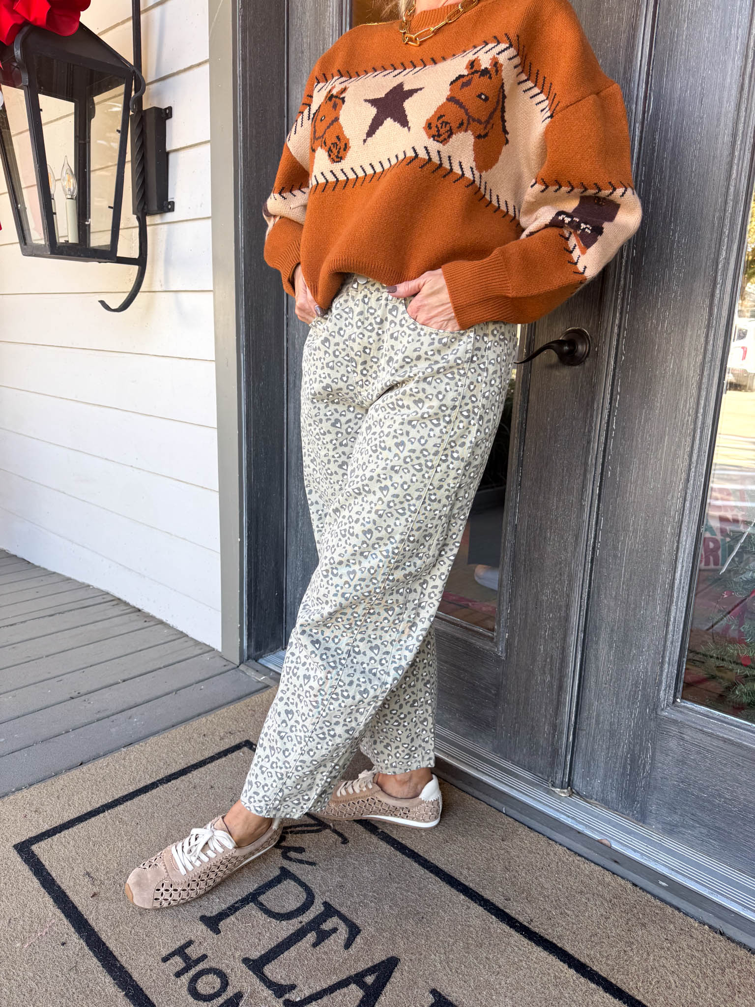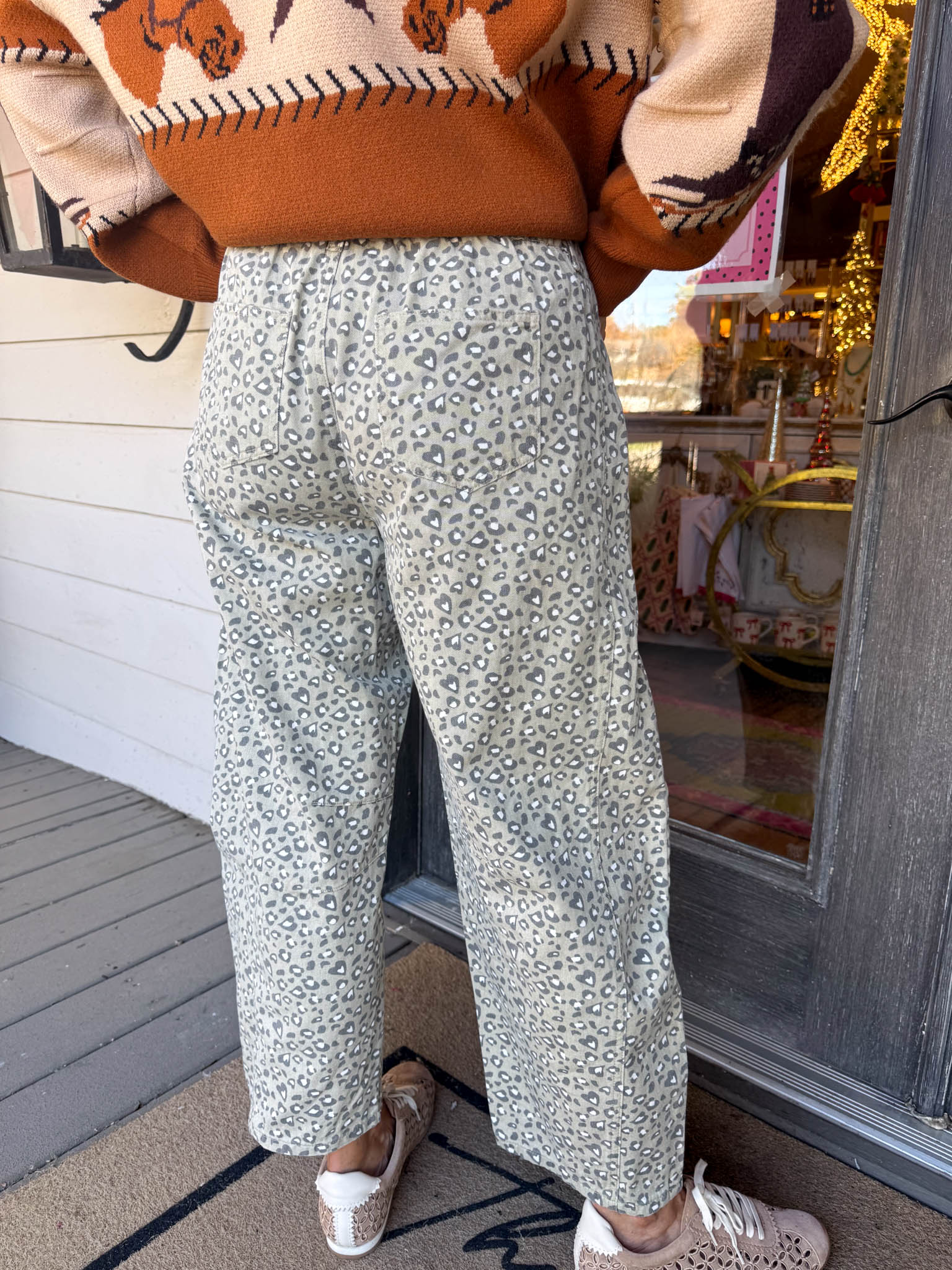 Distressed Animal Print Barrel Jeans