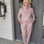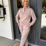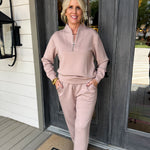 Stay cozy and stylish with our DreamTech Quarter Zip Jogger Set in Coco. Perfect for lounging or hitting the streets, this set combines comfort and fashion seamlessly. Say goodbye to basic loungewear and hello to the ultimate level of cool. (Come on, you know you want to!)