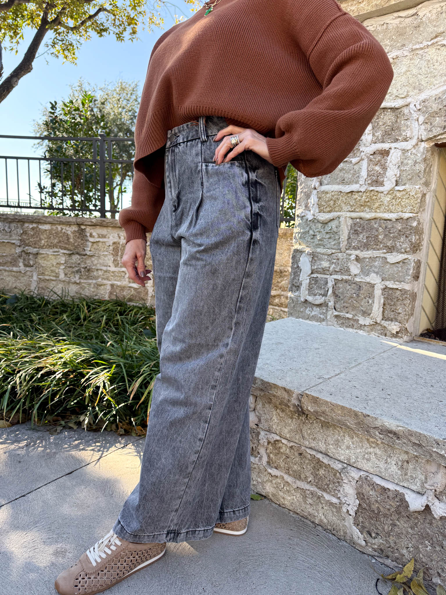 Effortless cool meets timeless comfort in the Ella Wide Leg Jean. Cut with a generous, flattering silhouette that skims the leg, these grey jeans transition seamlessly from casual weekends to dressed-up nights out. The straight-leg design pairs perfectly with everything in your closet—sneakers, boots, or heels. A wardrobe essential that feels as good as it looks.