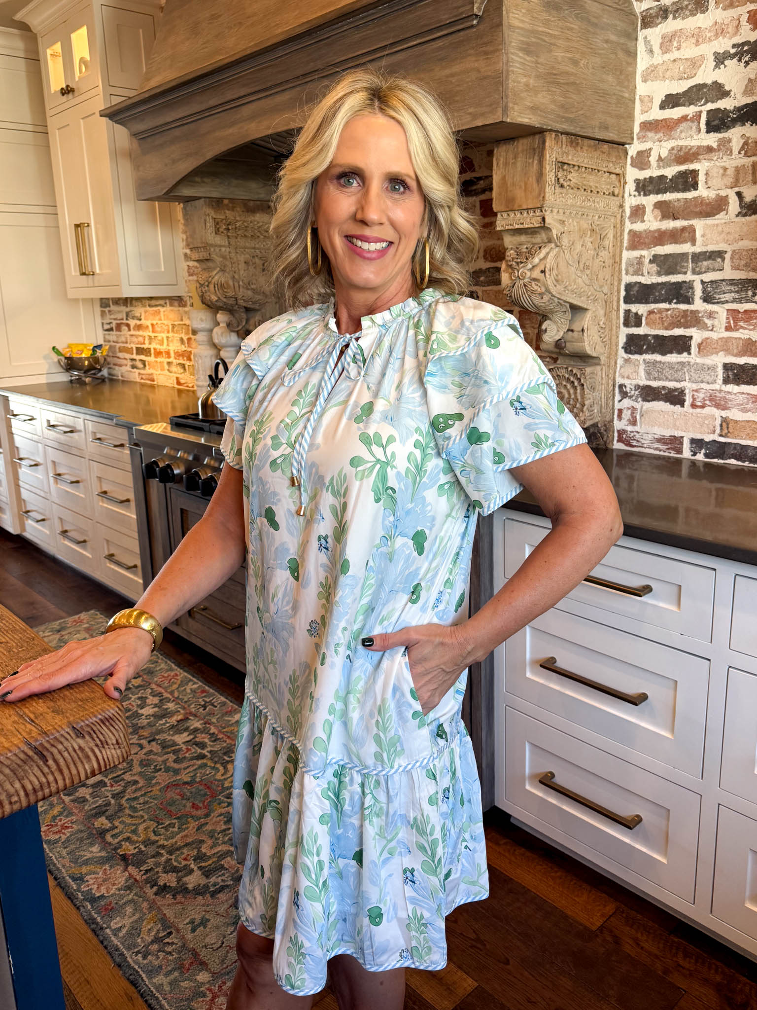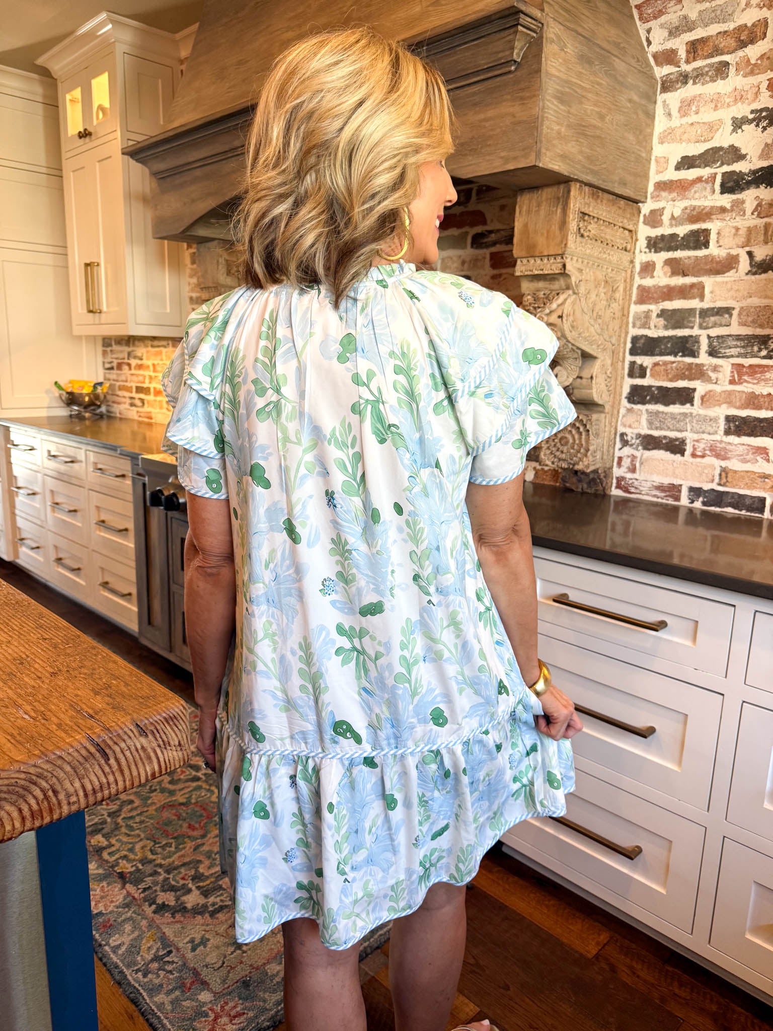 - Flirty ruffle layered sleeves add a whimsical touch that's perfect for sunny days or casual evenings.