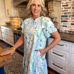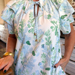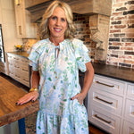 Step into springtime fun with the Elodie Ruffle Mini Dress, where playful layers and a charming blue floral print brighten every occasion.