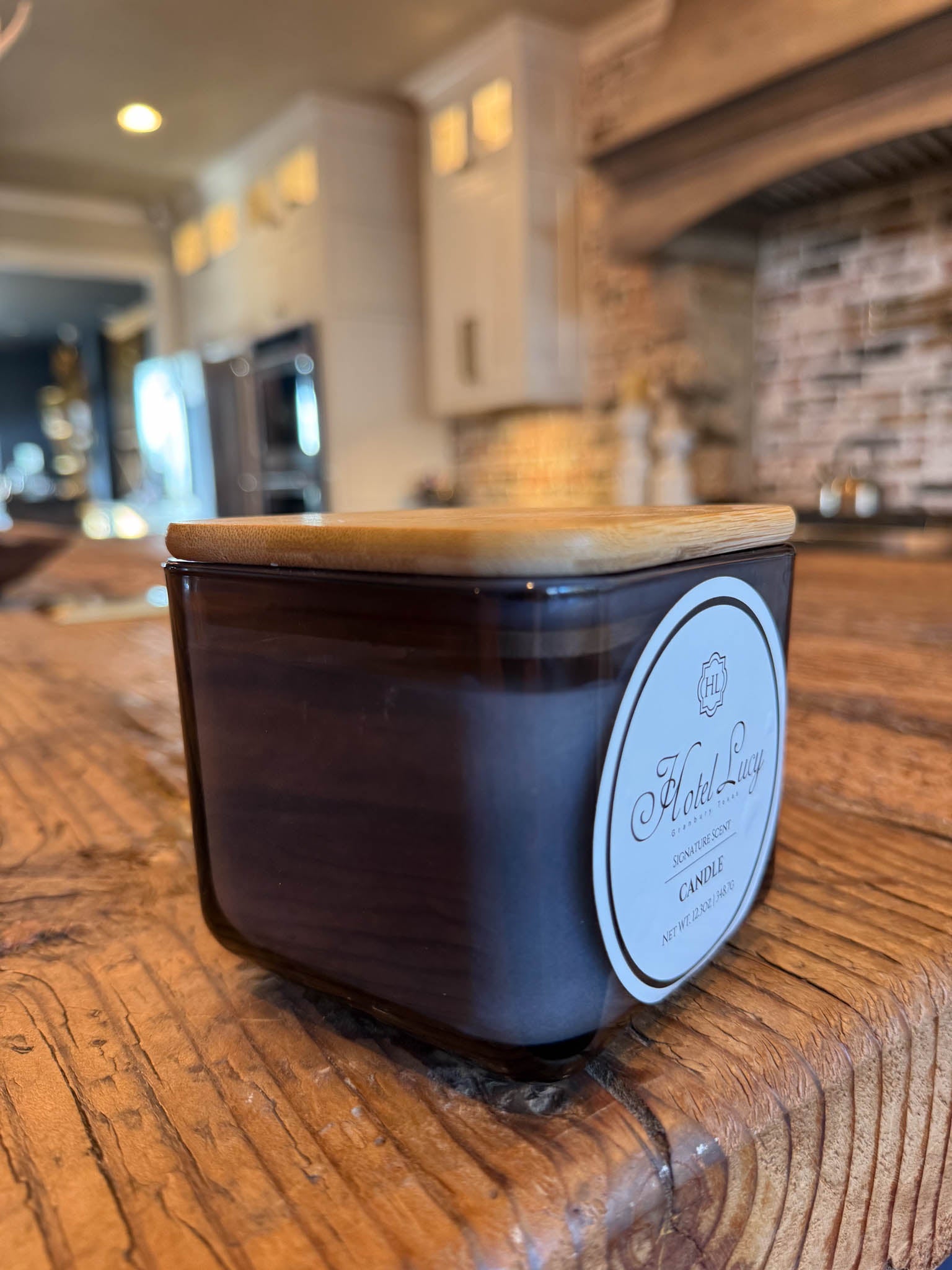 This soy-based, hand poured Signature Scent Candle features a unique scent that will enhance any room with its aromatic ambiance. With a professional and expertly crafted one of a kind formula, this candle offers a truly luxurious experience that makes you feel like you just walked into a suite at Hotel Lucy. Experience the benefits of a perfectly scented home with our Black Signature Scent Candle.