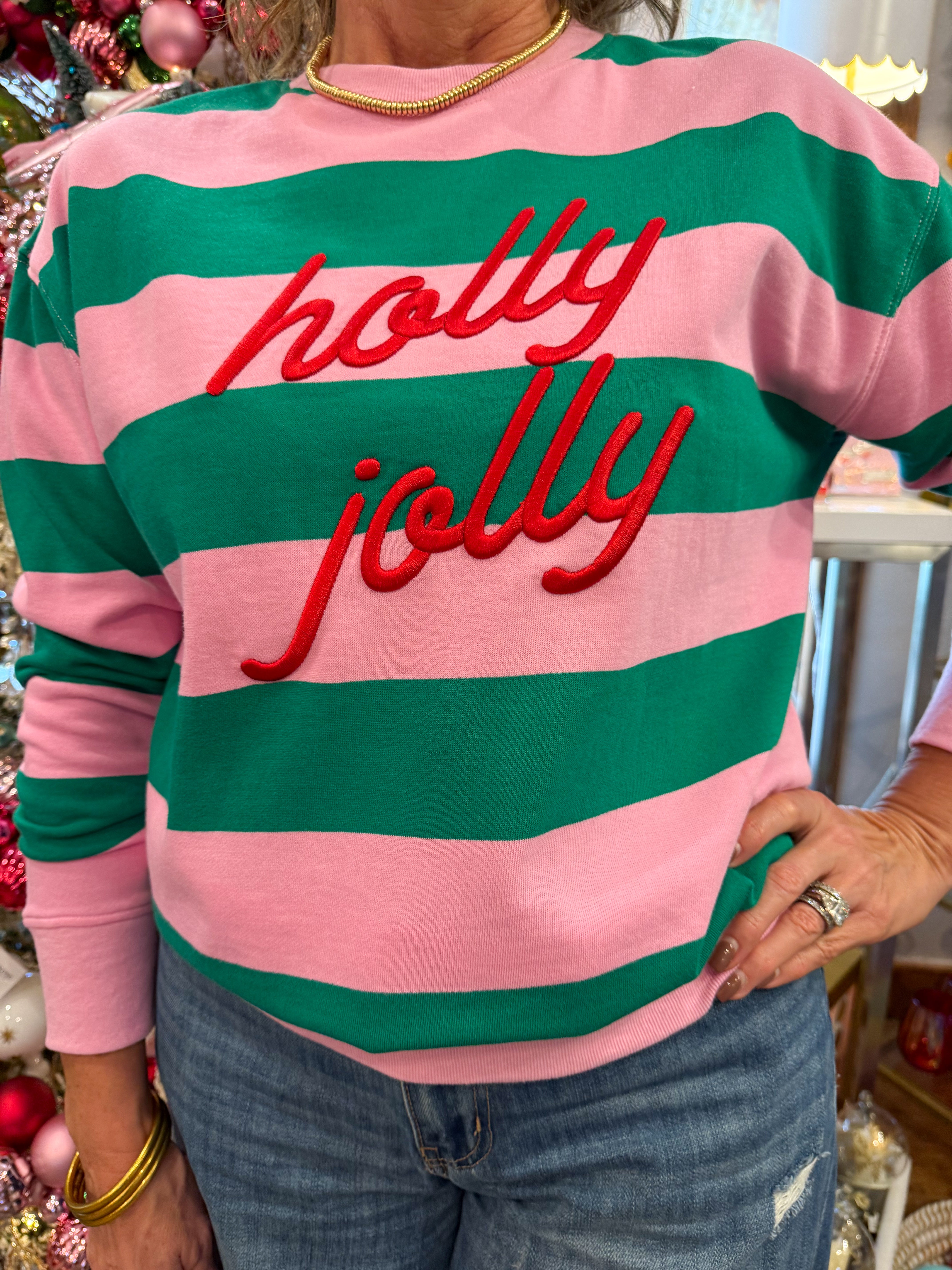 Celebrate the season in style with our Holly Jolly Striped Classic Sweatshirt—where festive stripes meet cheerful embroidery for the ultimate holiday vibe.