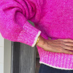 Elevate your style with this vibrant hot pink mock neck sweater — playful, bold, and perfect for brightening any day!
