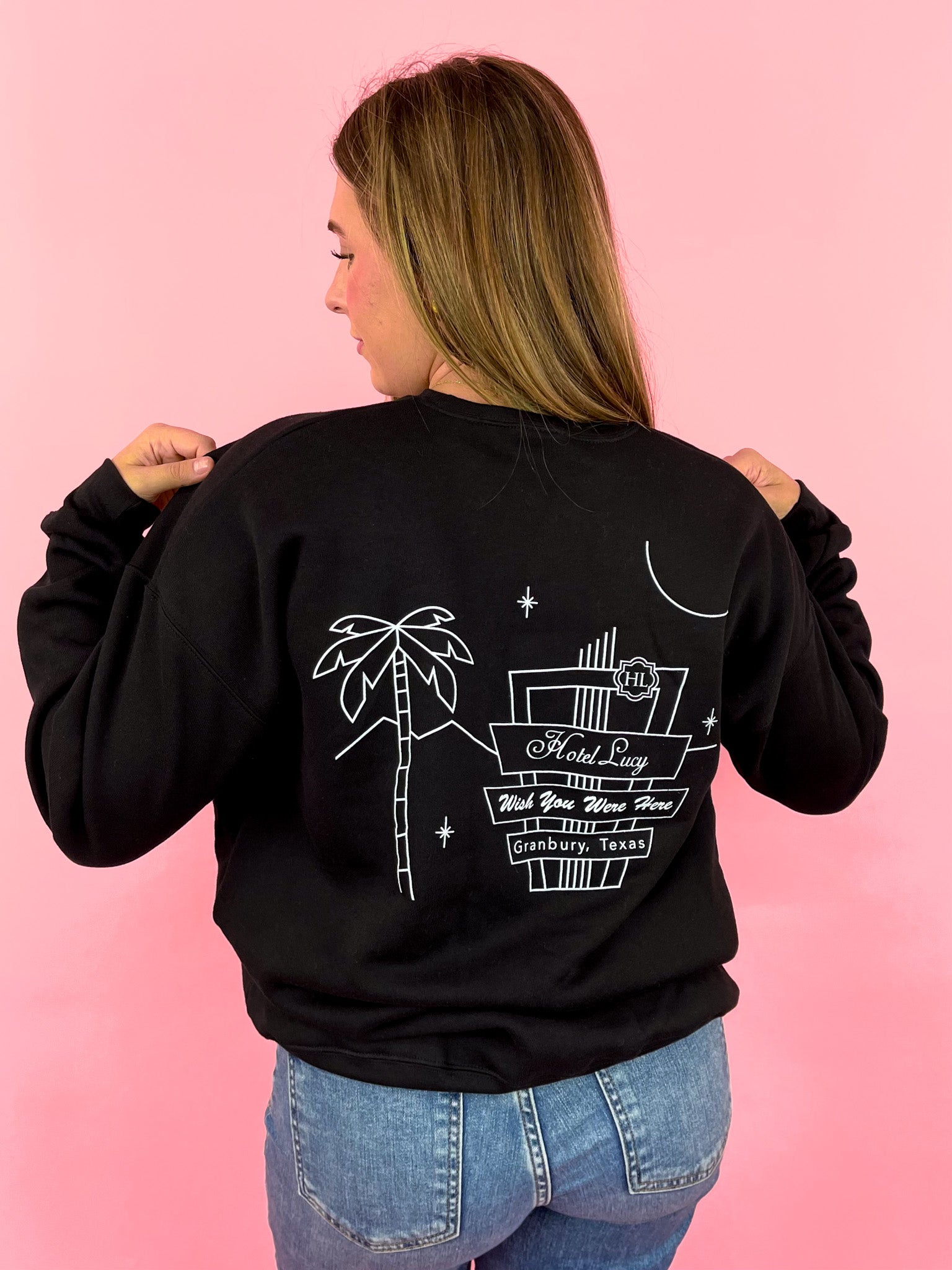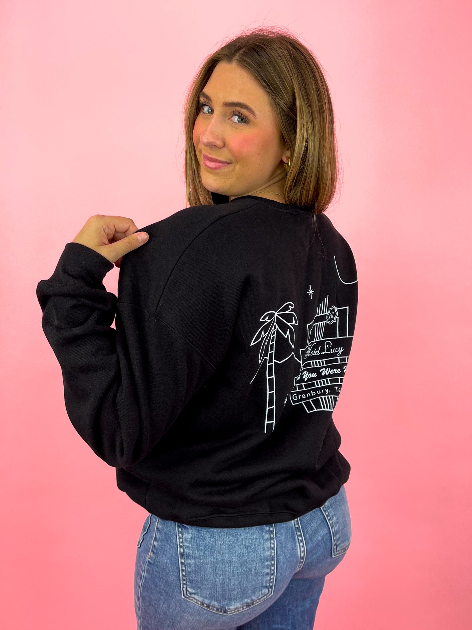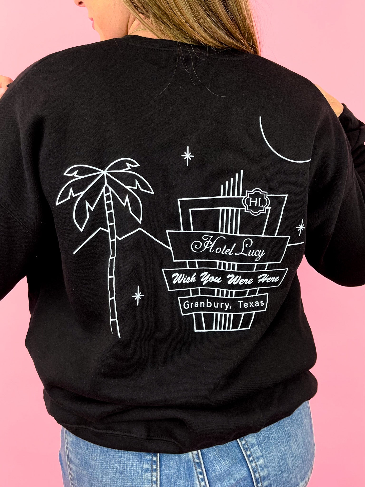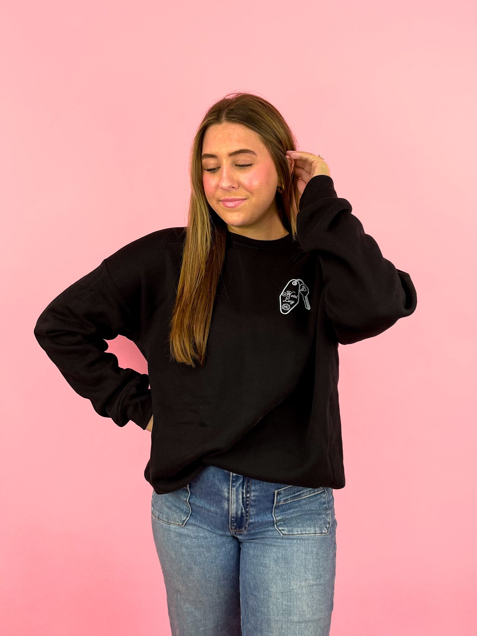 Take home a piece of Lucy with our Hotel Lucy Sweatshirt. Made for comfort and style, this keepsake will remind you of your stay with us. Perfect for any occasion, it's a must-have for any Lucy fan.
