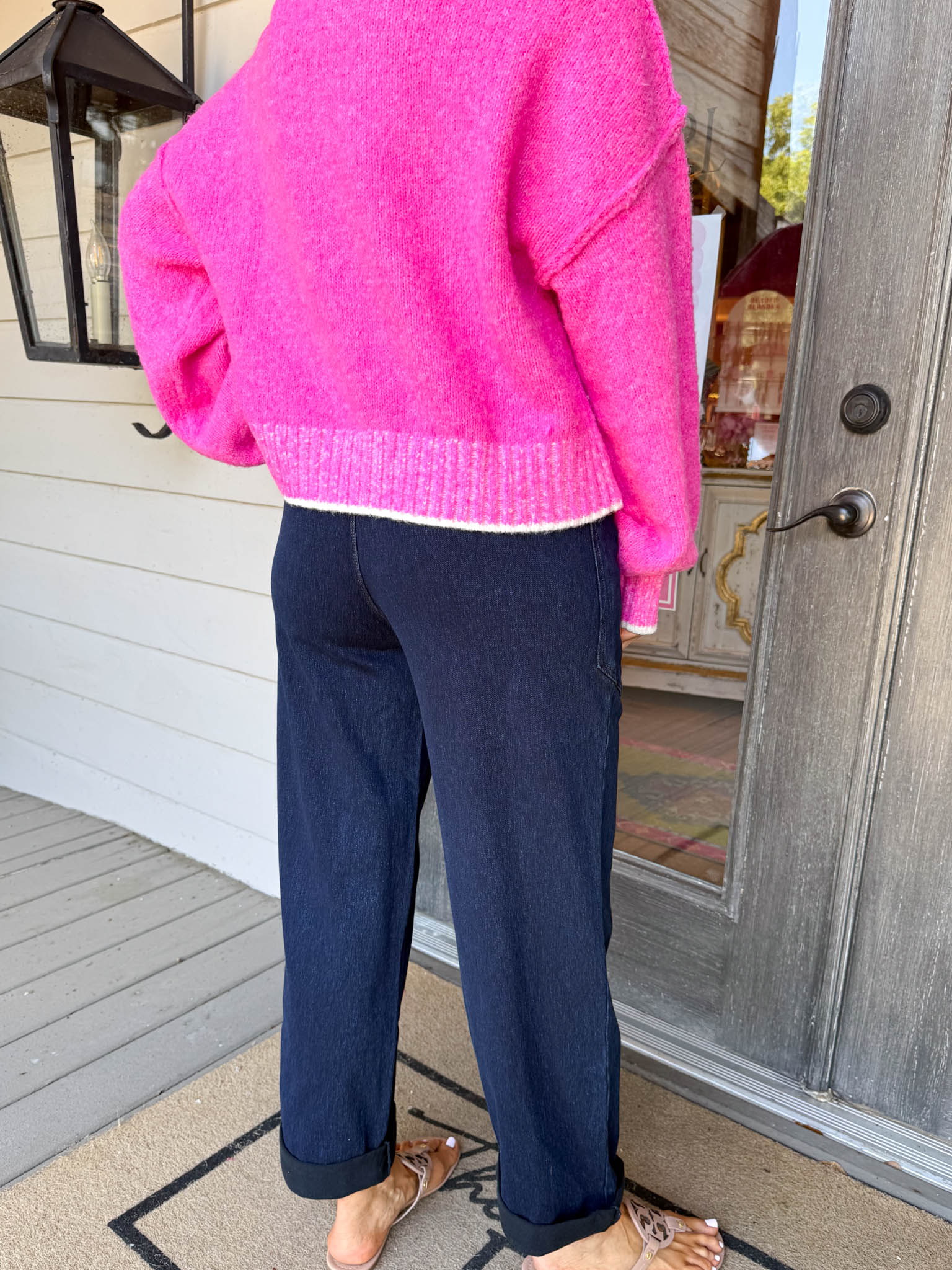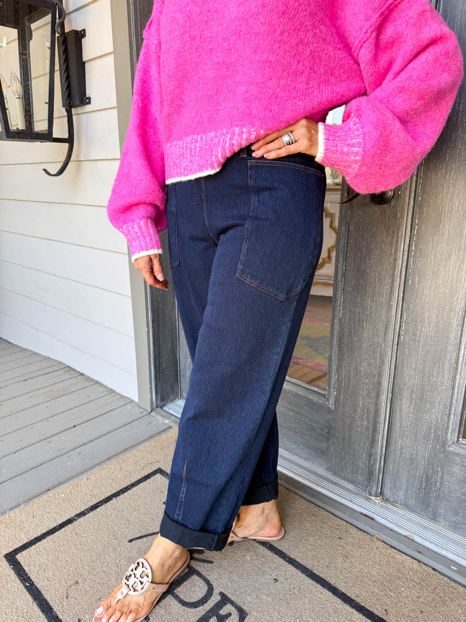 Slide into the Indigo Penelope Curved Cuffed Denim for that perfect mix of edgy style and cozy comfort right at the waistband.