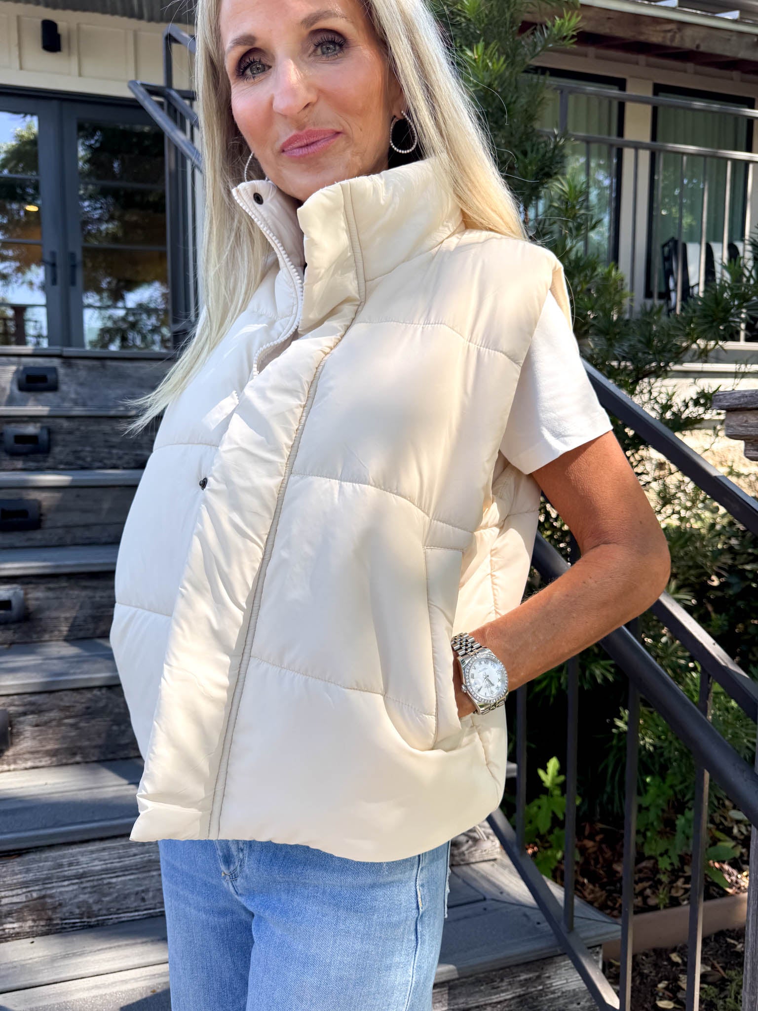 Stay effortlessly chic with our puffy short-sleeve vest — the perfect mix of cozy and cool.
