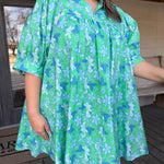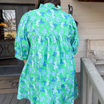 • Vibrant blue floral print on rich green fabric delivers a fresh, eye-catching look perfect for any season