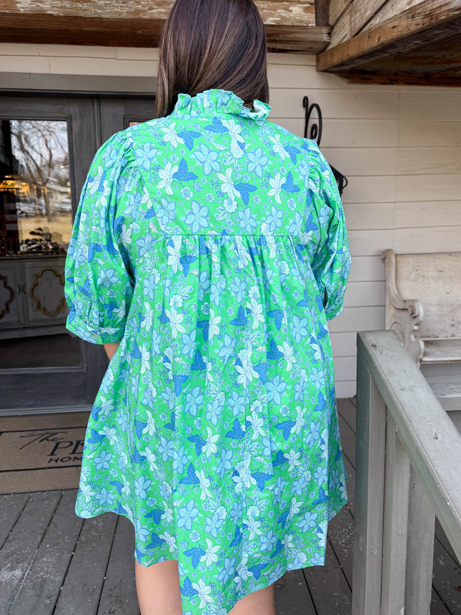 • Smocked bodice and voluminous 3/4 puffy sleeves create a flattering silhouette with romantic movement