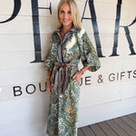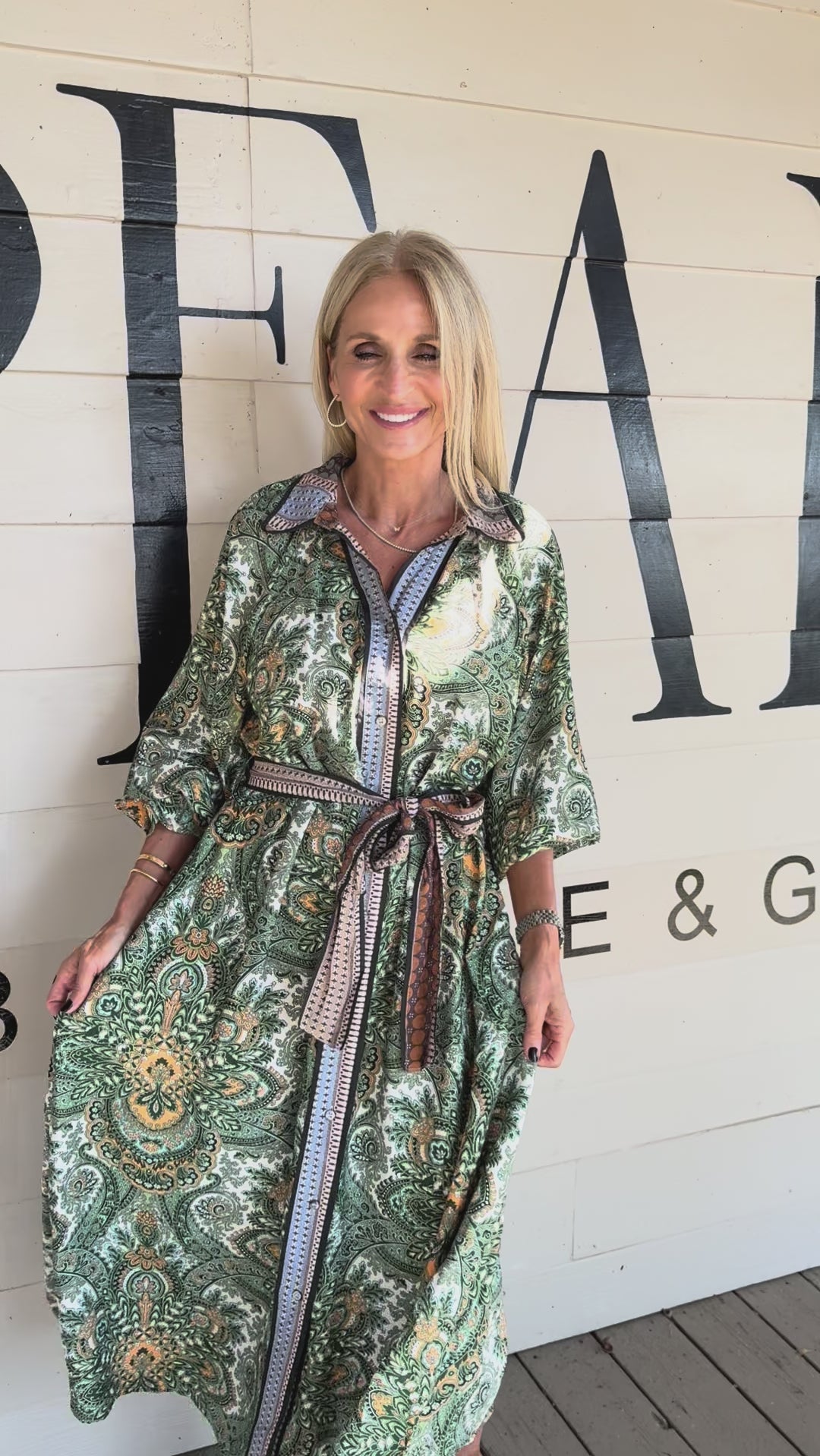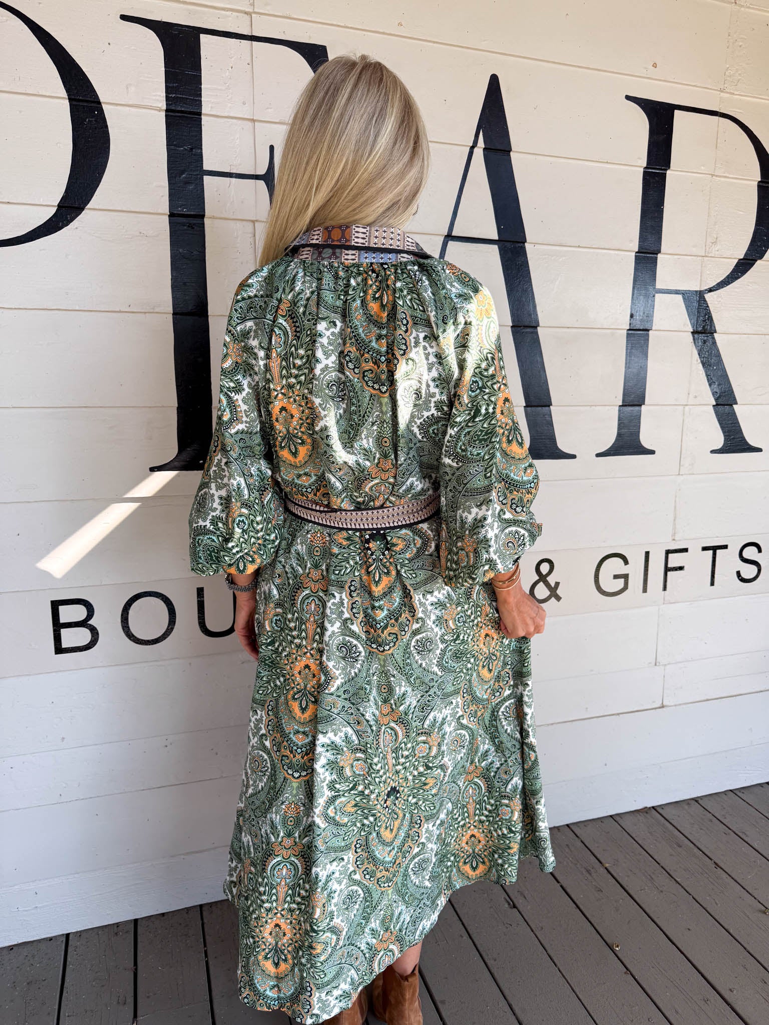 Embrace effortless elegance in the Jolene Maxi Dress, where whimsical paisley prints meet a chic popped-up collar and long sleeves for a look that's as fun as it is flattering.