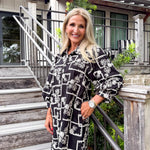 - Long sleeves balance playful mini length for a perfect day-to-night look