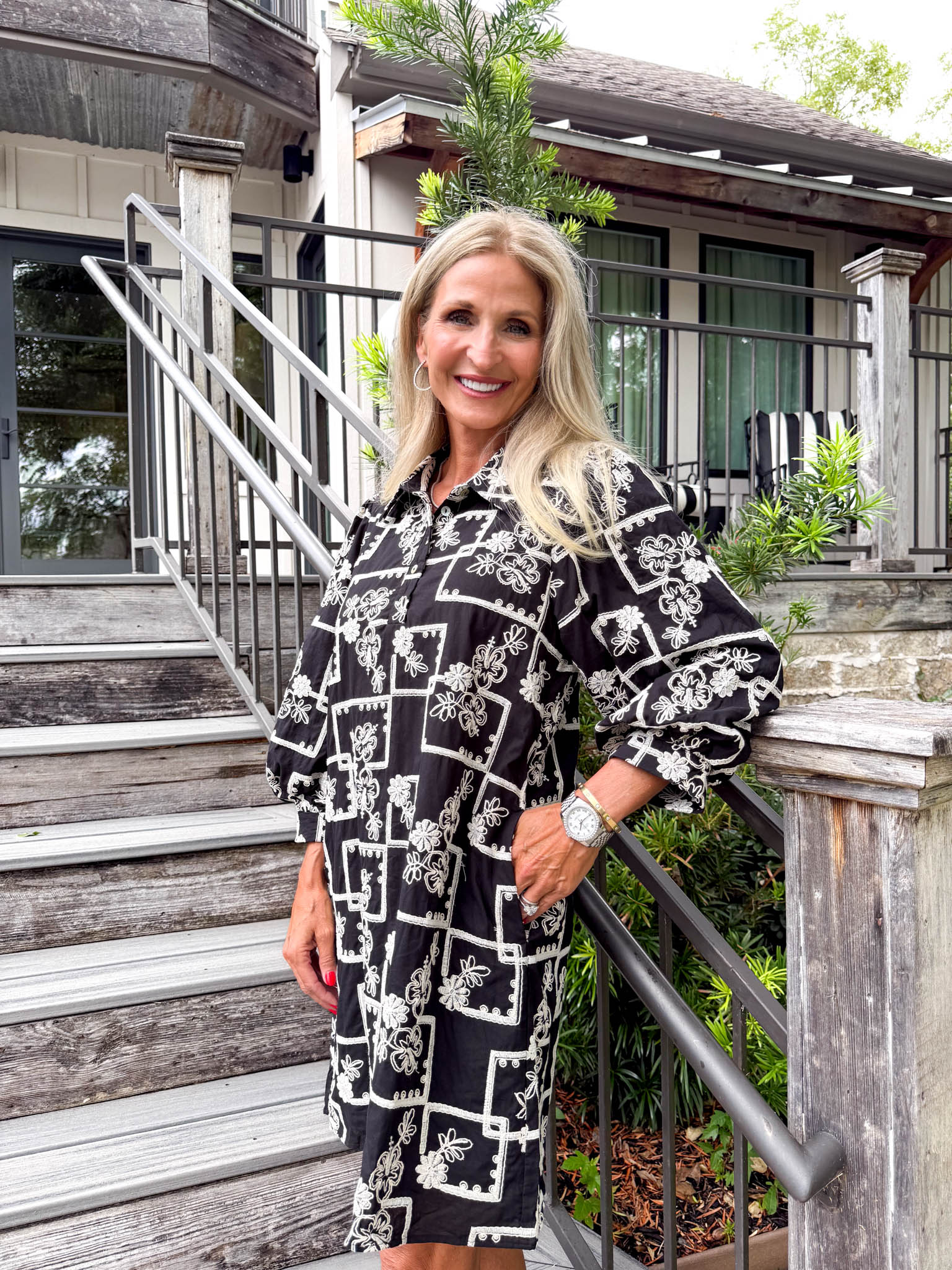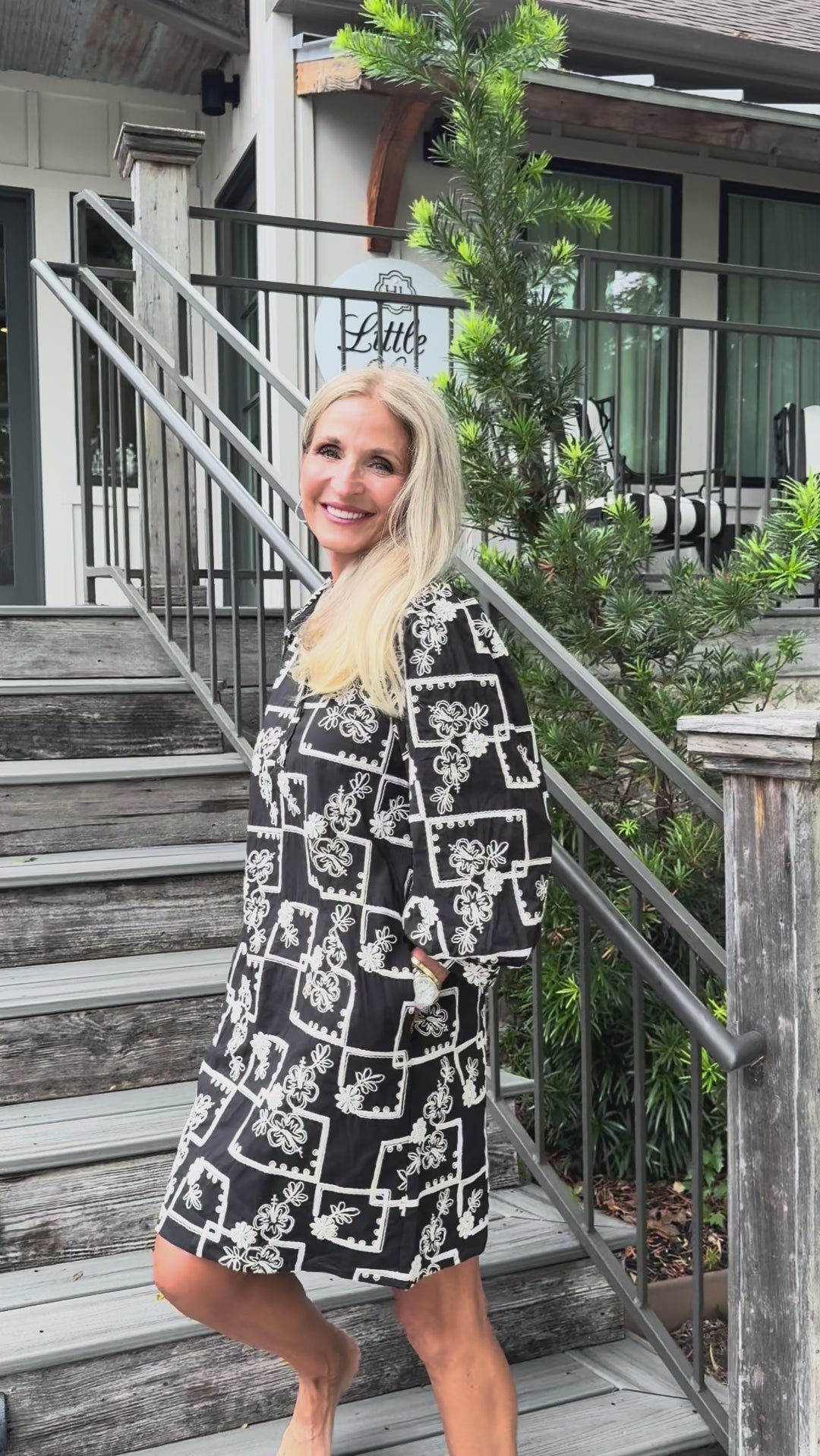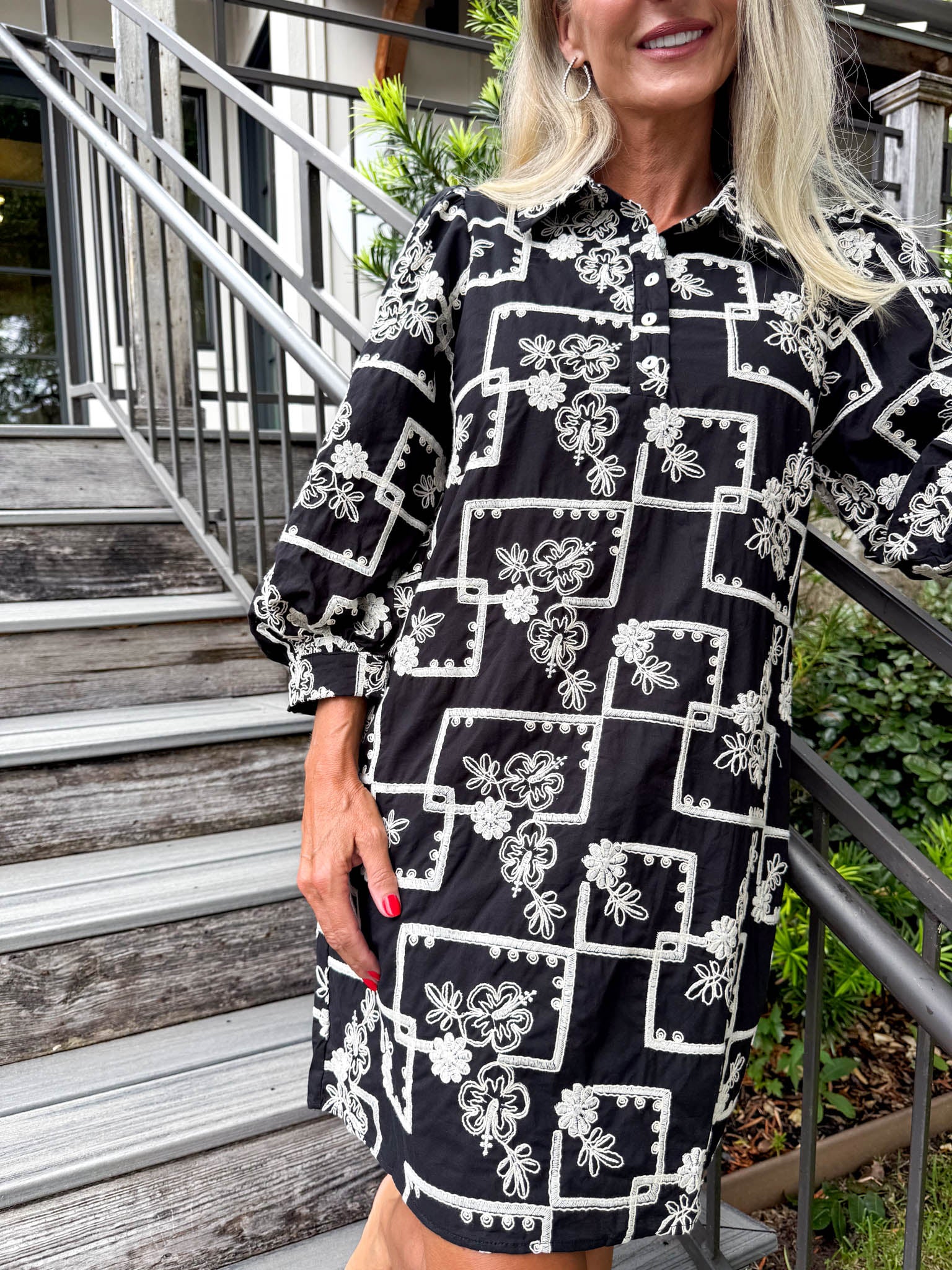 Step into the spotlight with the Jolene Mini Dress, where vibrant tropical prints meet charming 3D white floral embroidery for a fun, flirty vibe.