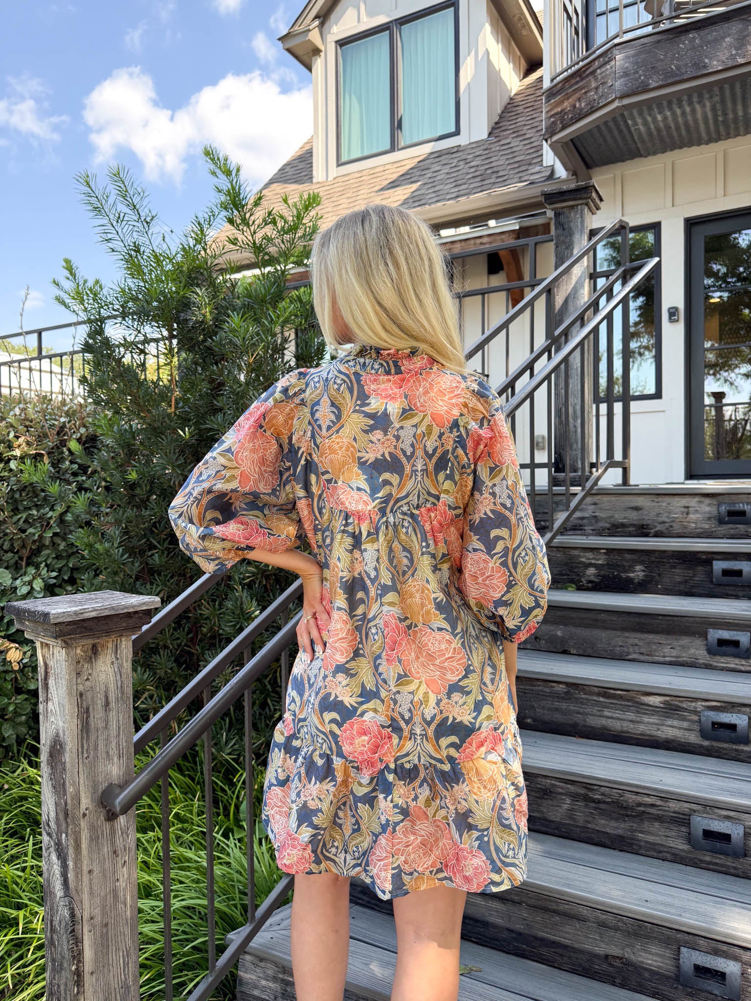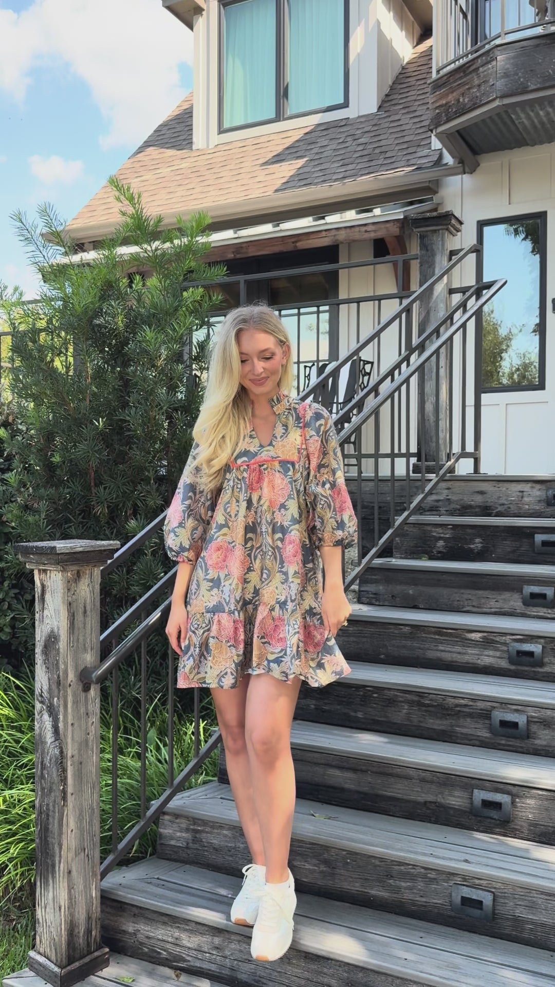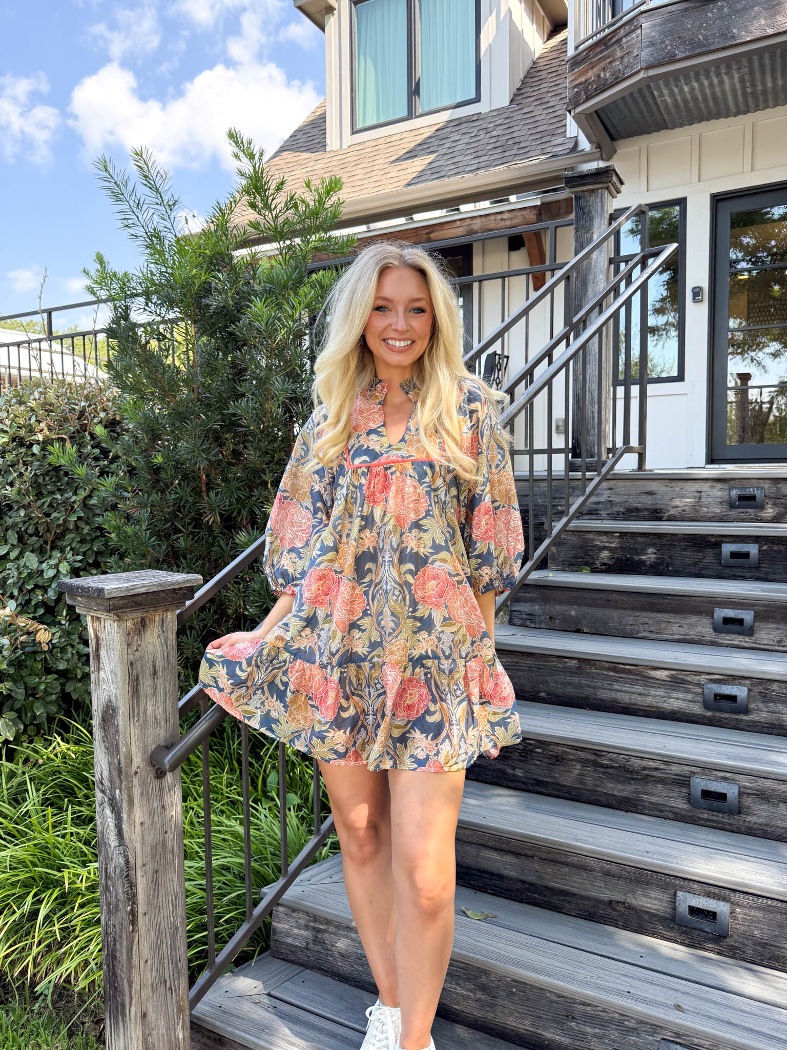 Step out in style and charm with the Kaye Mini Dress, featuring a navy floral pattern and playful ruffles that add a flirty touch to every move.