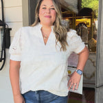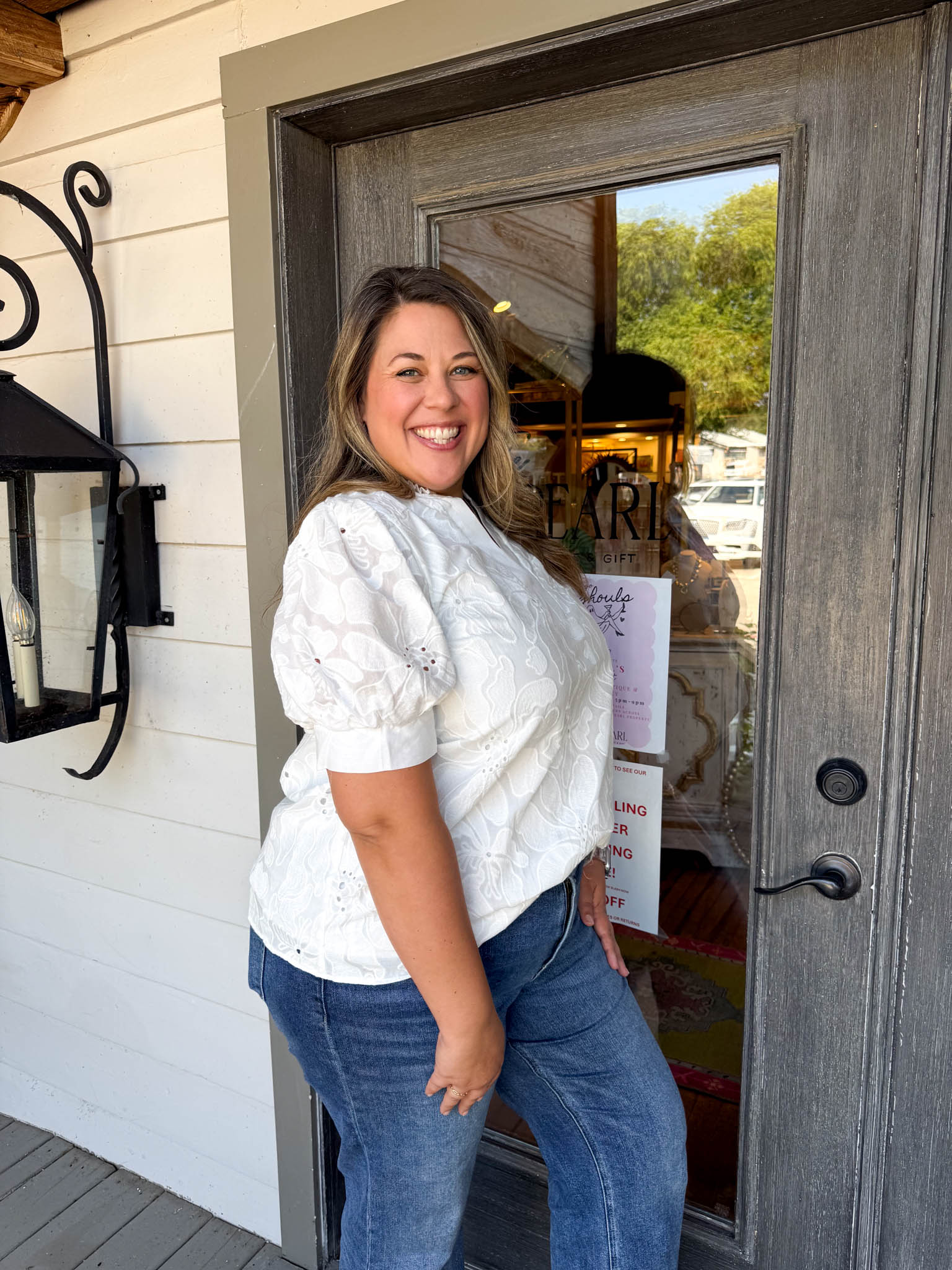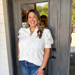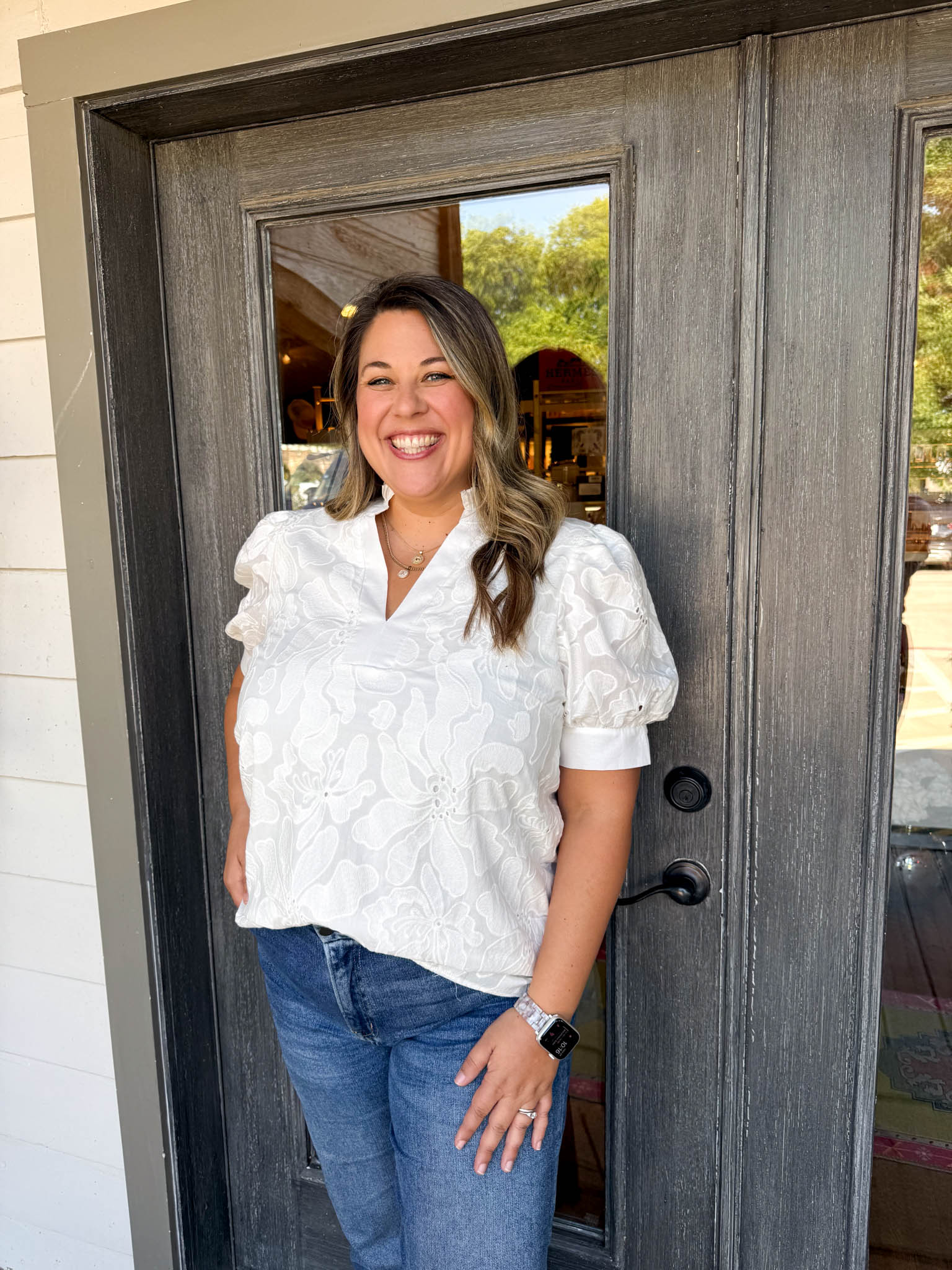 Elevate your style with the Khani Blouse, where playful puffed sleeves meet charming 3D floral details for a fresh, flirty look.