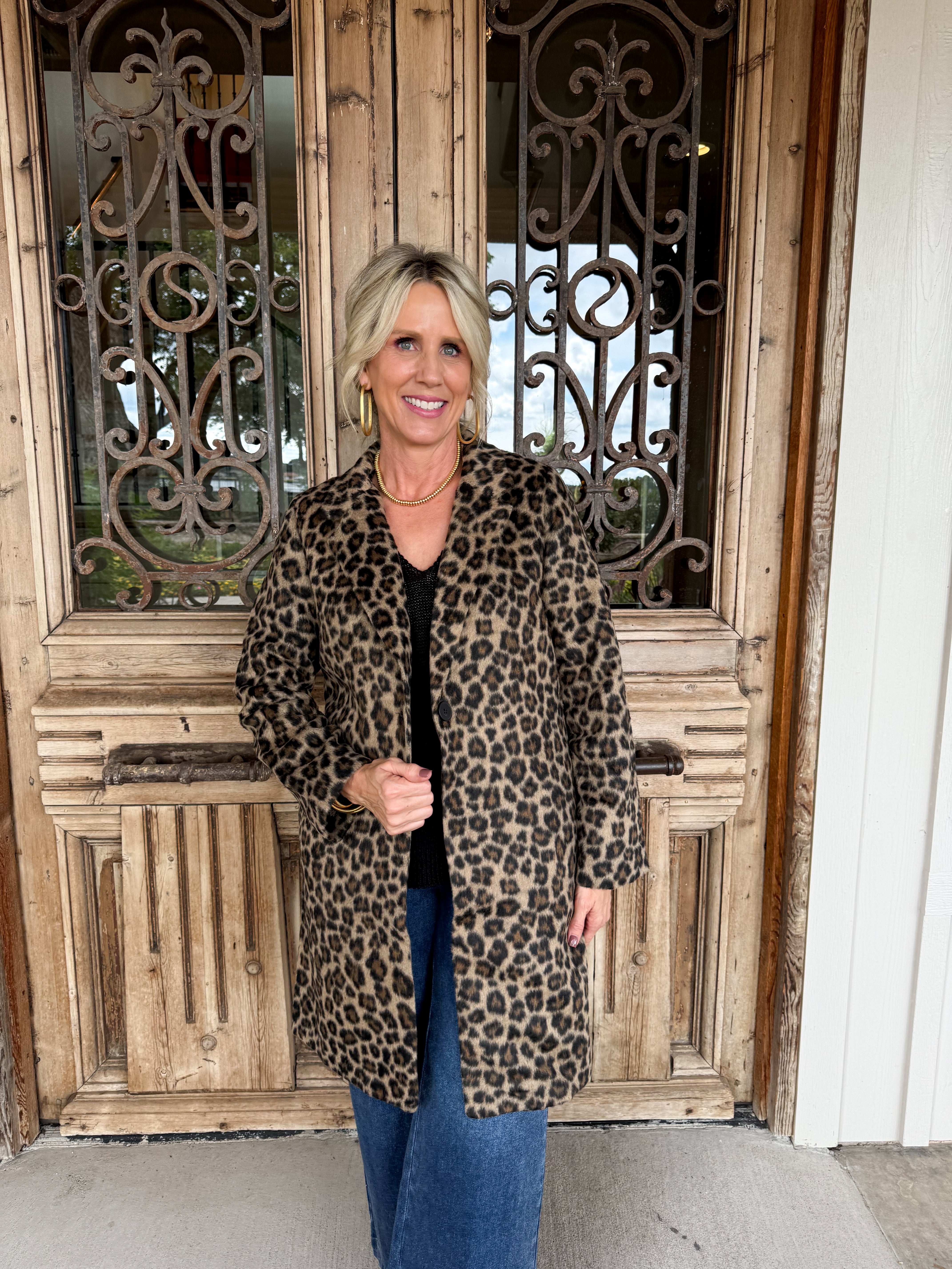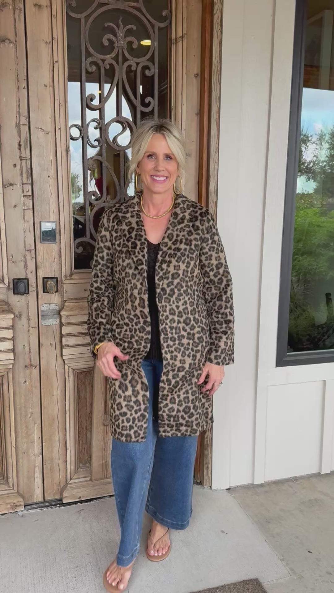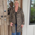 Make a bold entrance with this playful leopard print oversized trench coat that combines wild style with cozy comfort.