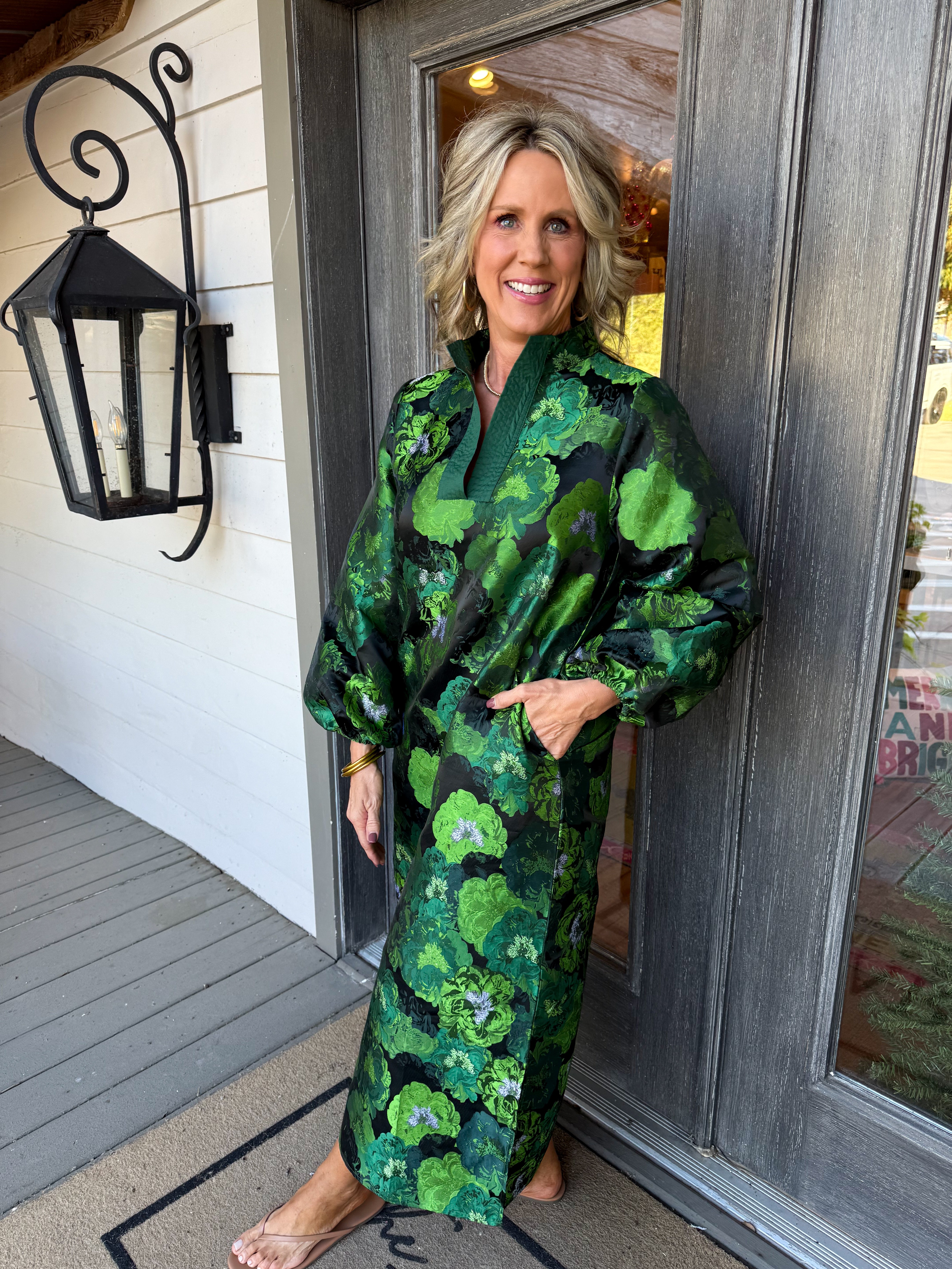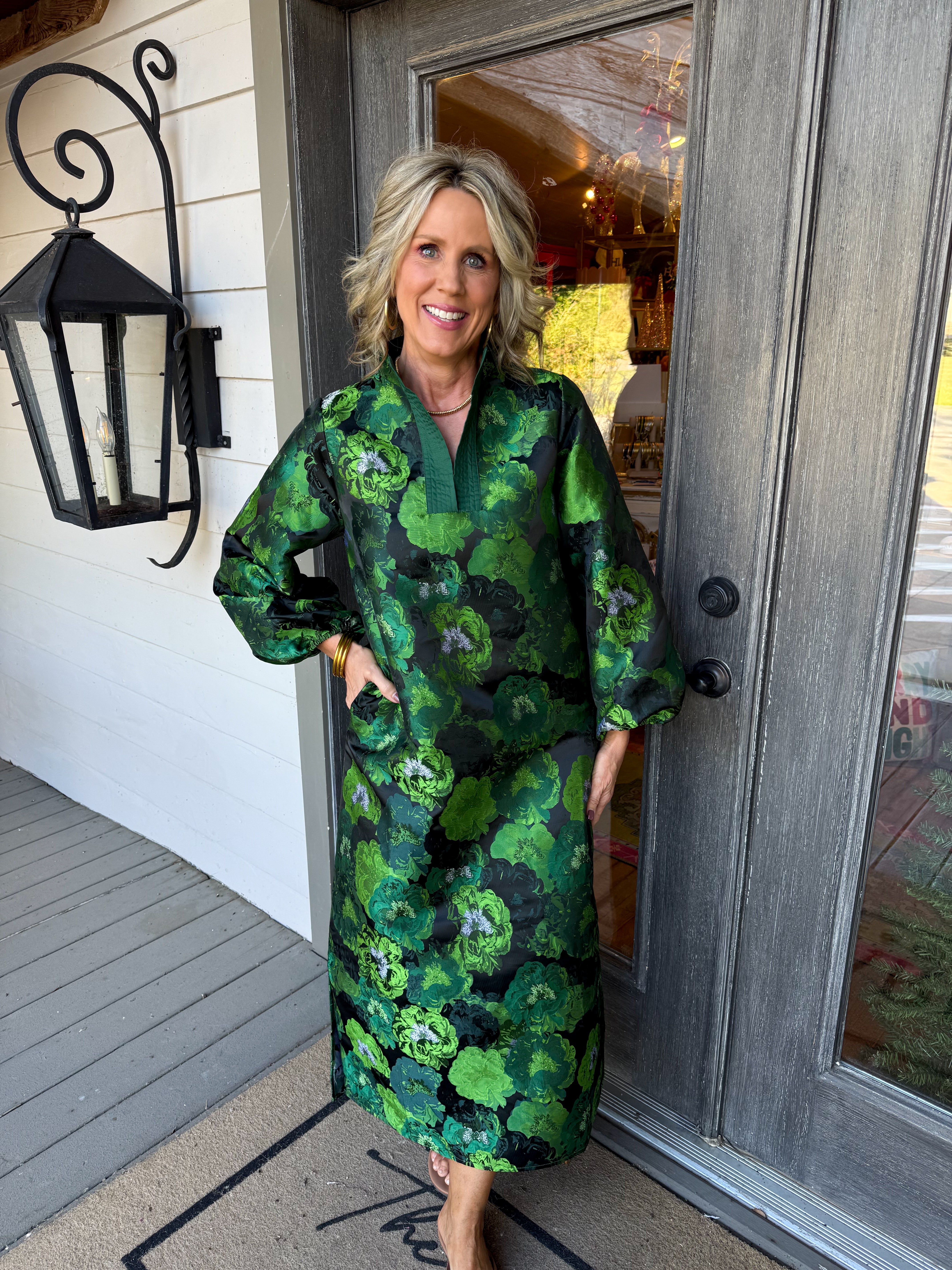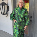 Step out in style with the Maggie Maxi Dress—a playful blend of vibrant green hues and multicolored jacquard print.