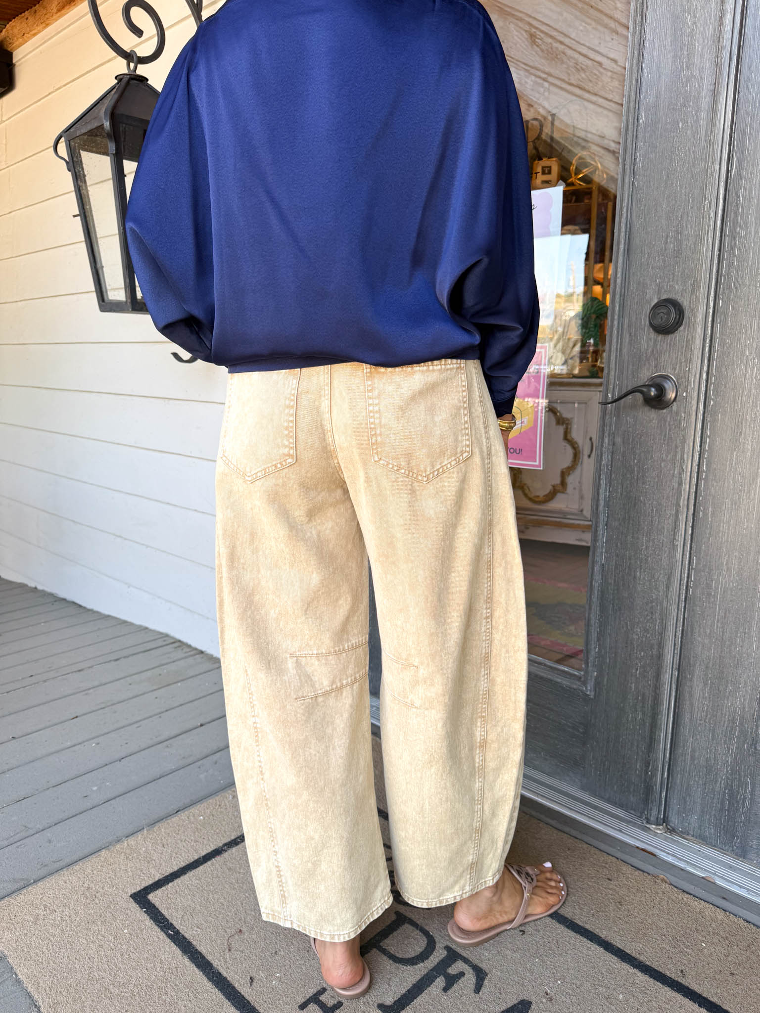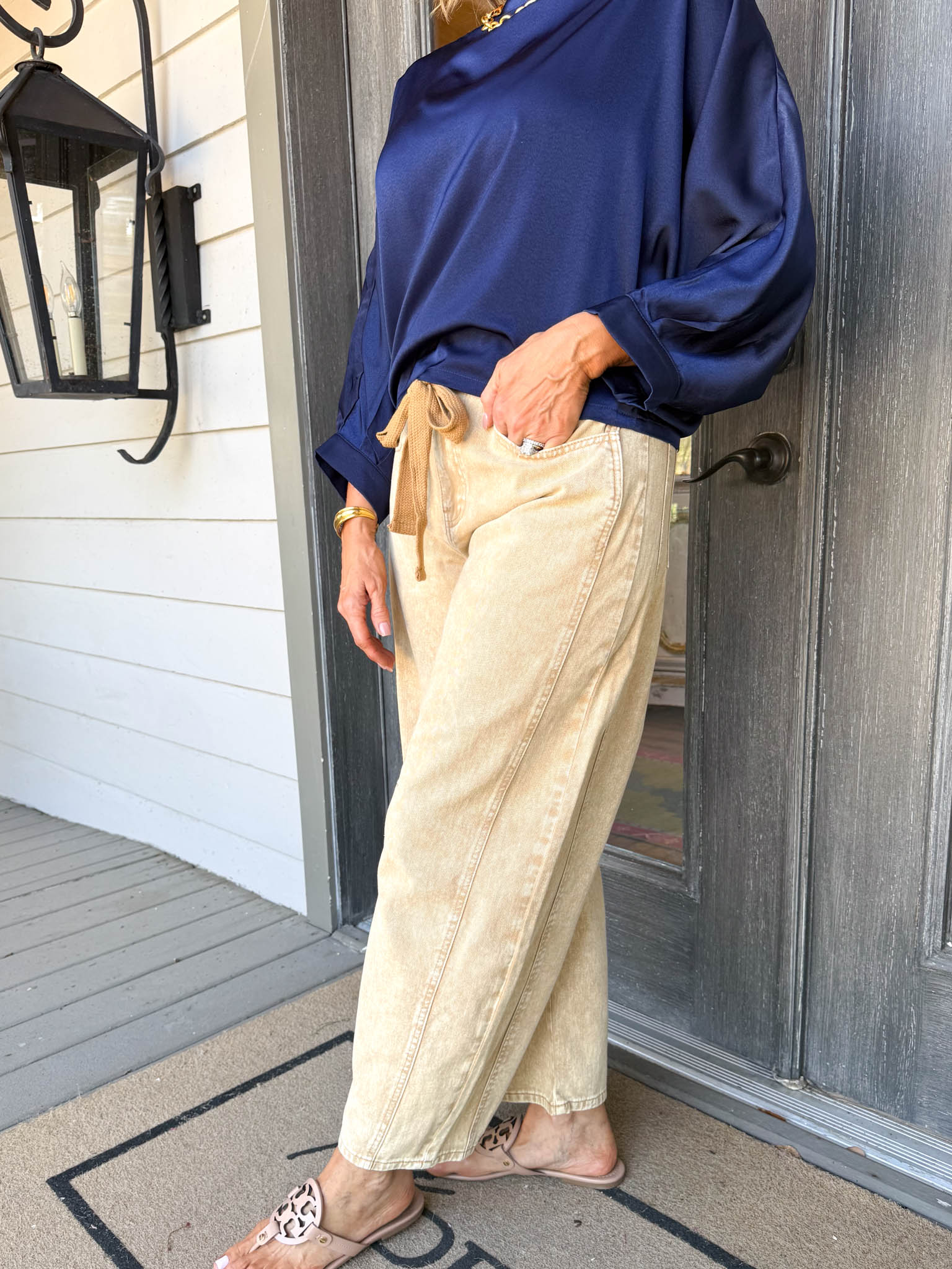 Stand out effortlessly with these Mocha Tatum Denim Pants featuring a chic waist tie and eyelet detail for a wild twist on classic barrel jeans.