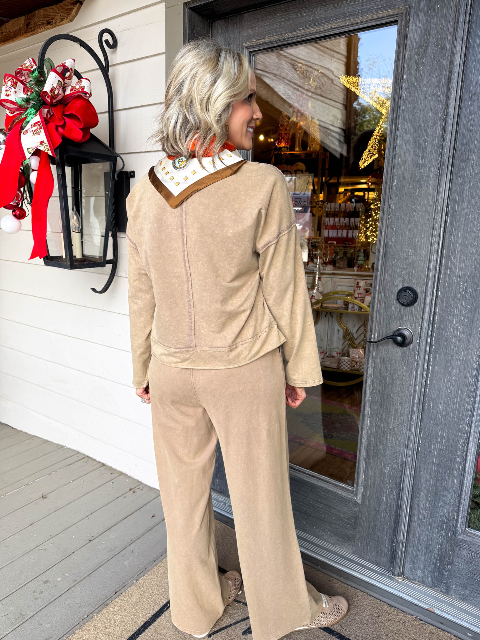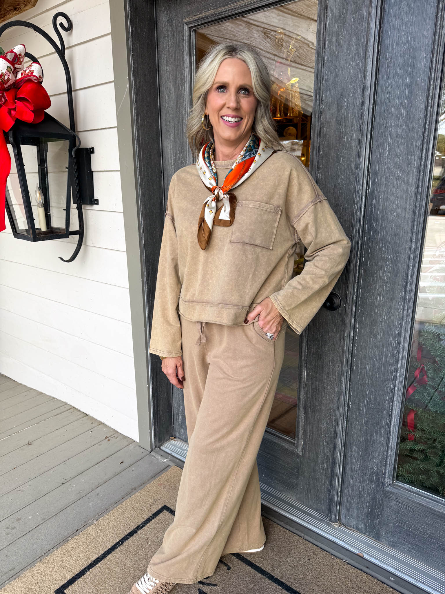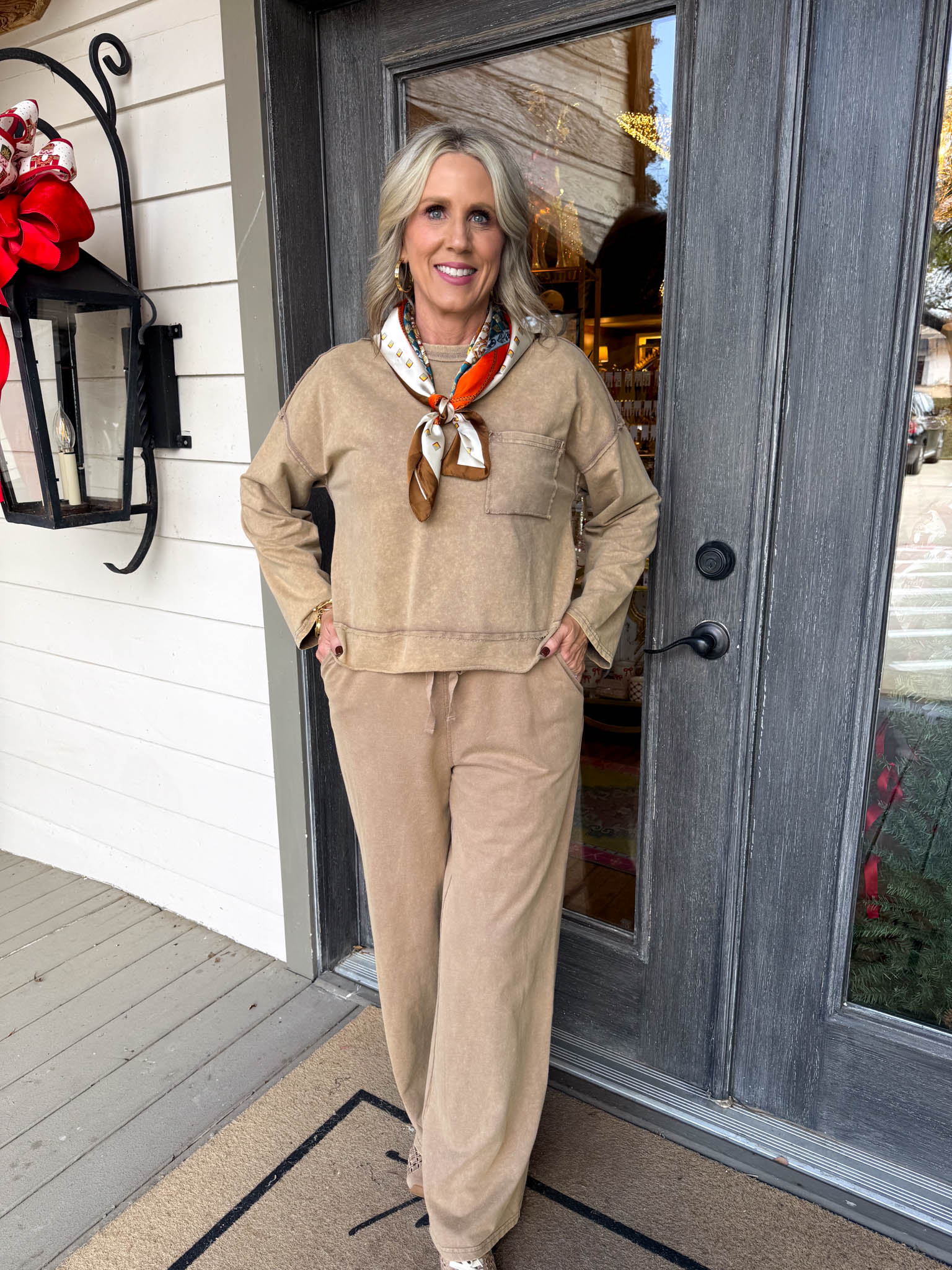 Sink into effortless comfort with this mocha set that transitions seamlessly from cozy nights in to casual outings.