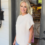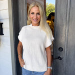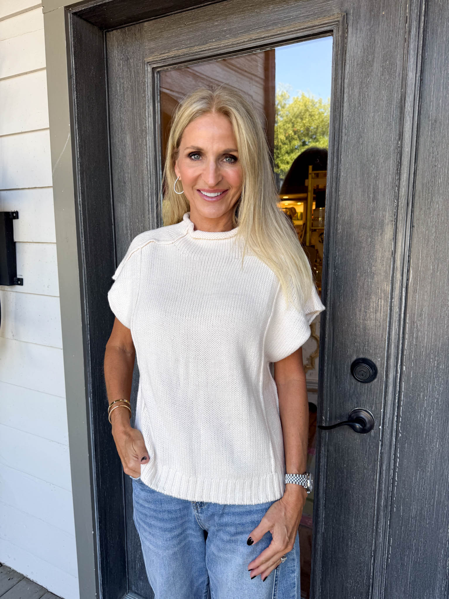 The Nancy Sweater Top in off white combines cozy warmth with a flirty twist.