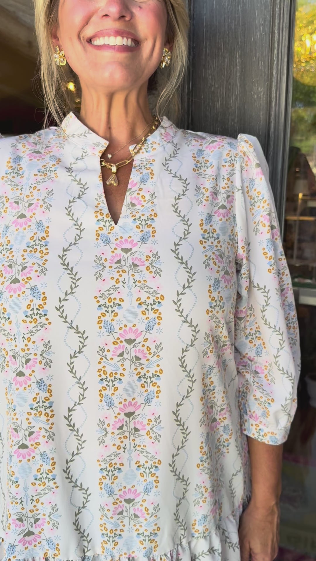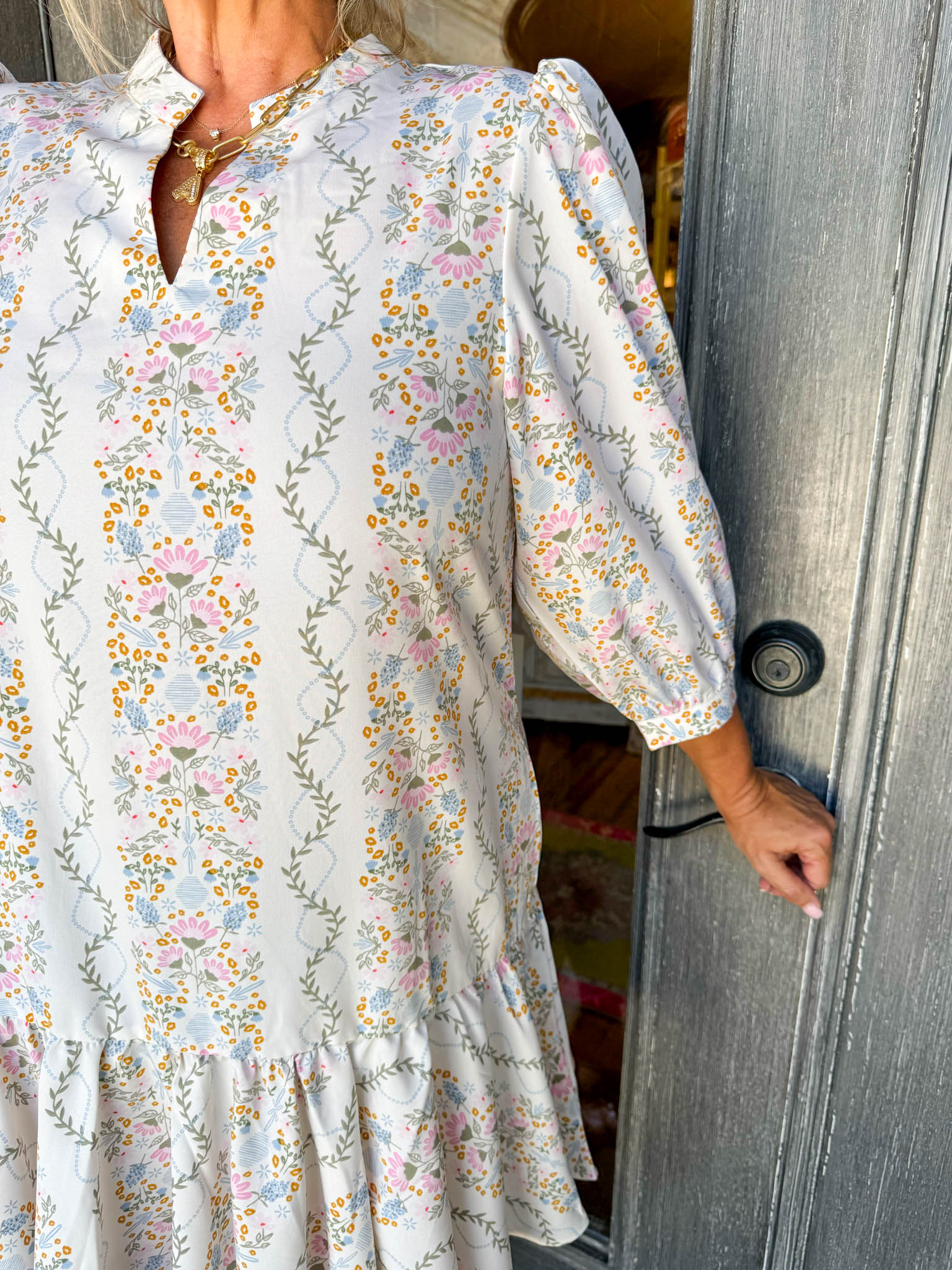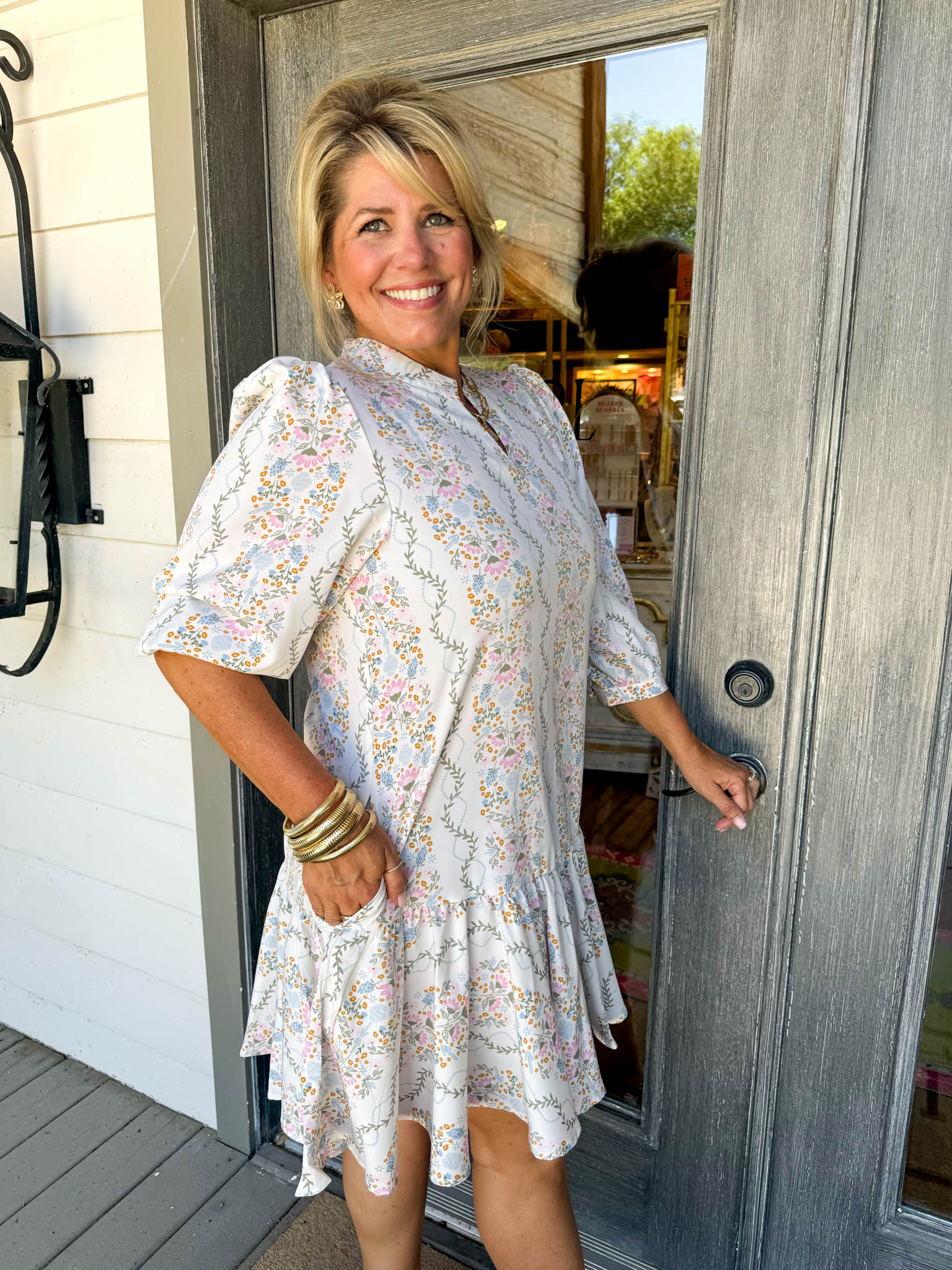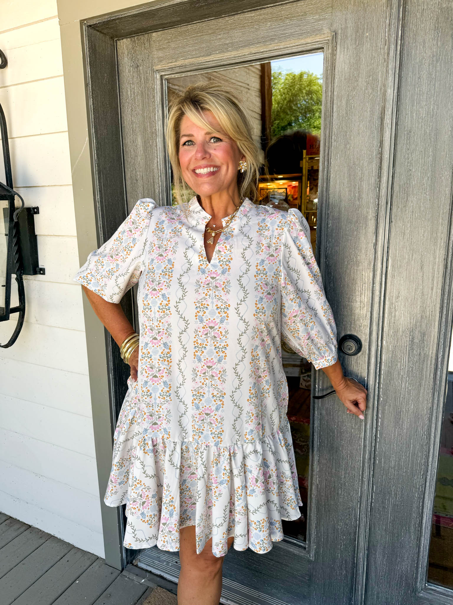 Step into charm and comfort with the Naomi Vineyard Dress, where playful ruffles meet a flattering floral print.