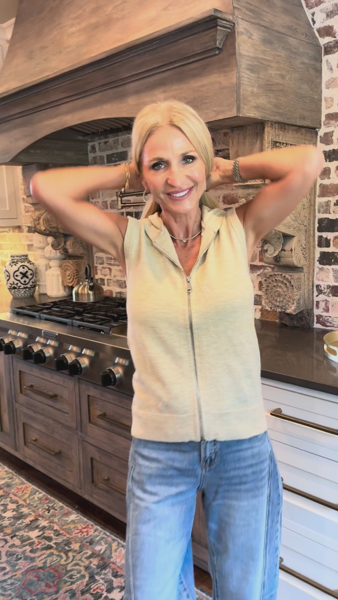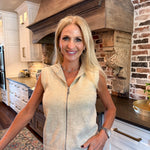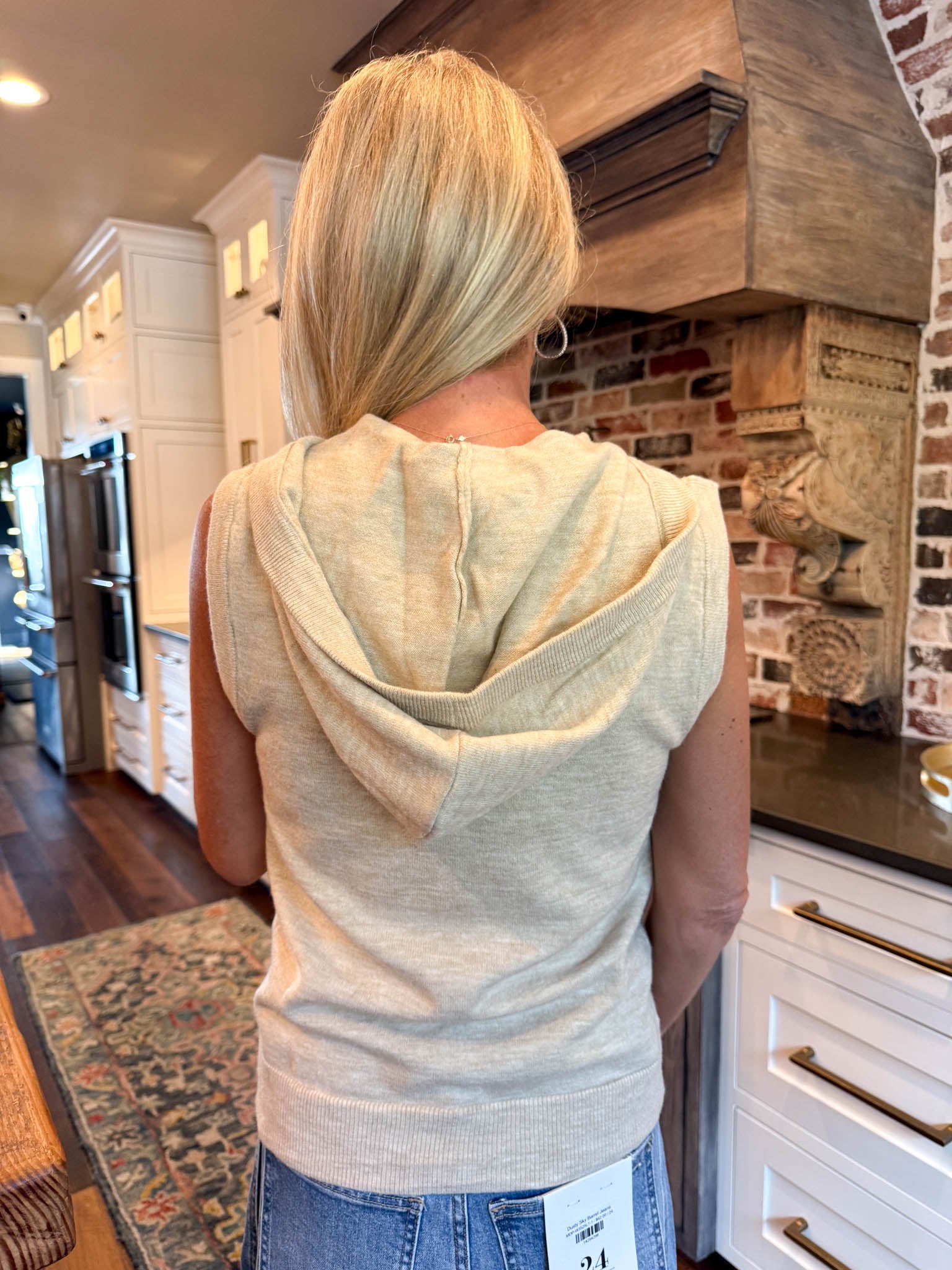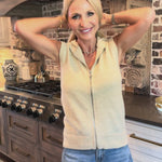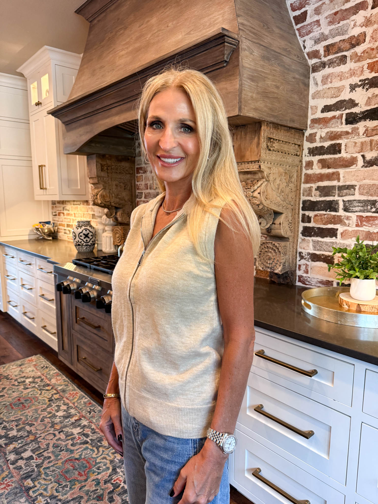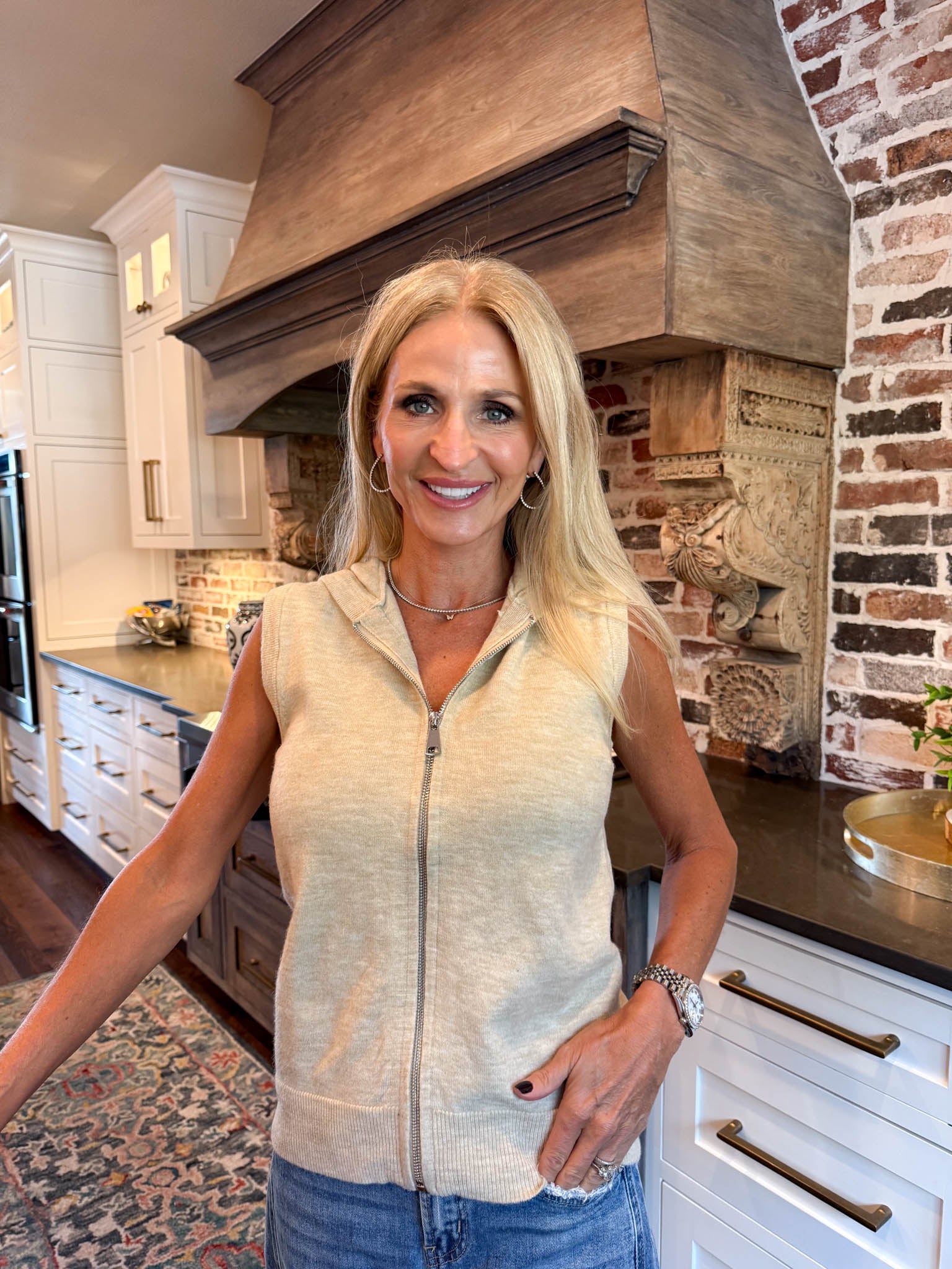 Cozy up in our Oatmeal Sleeveless Sweater—a playful twist on classic comfort with a handy zipper for easy style updates!