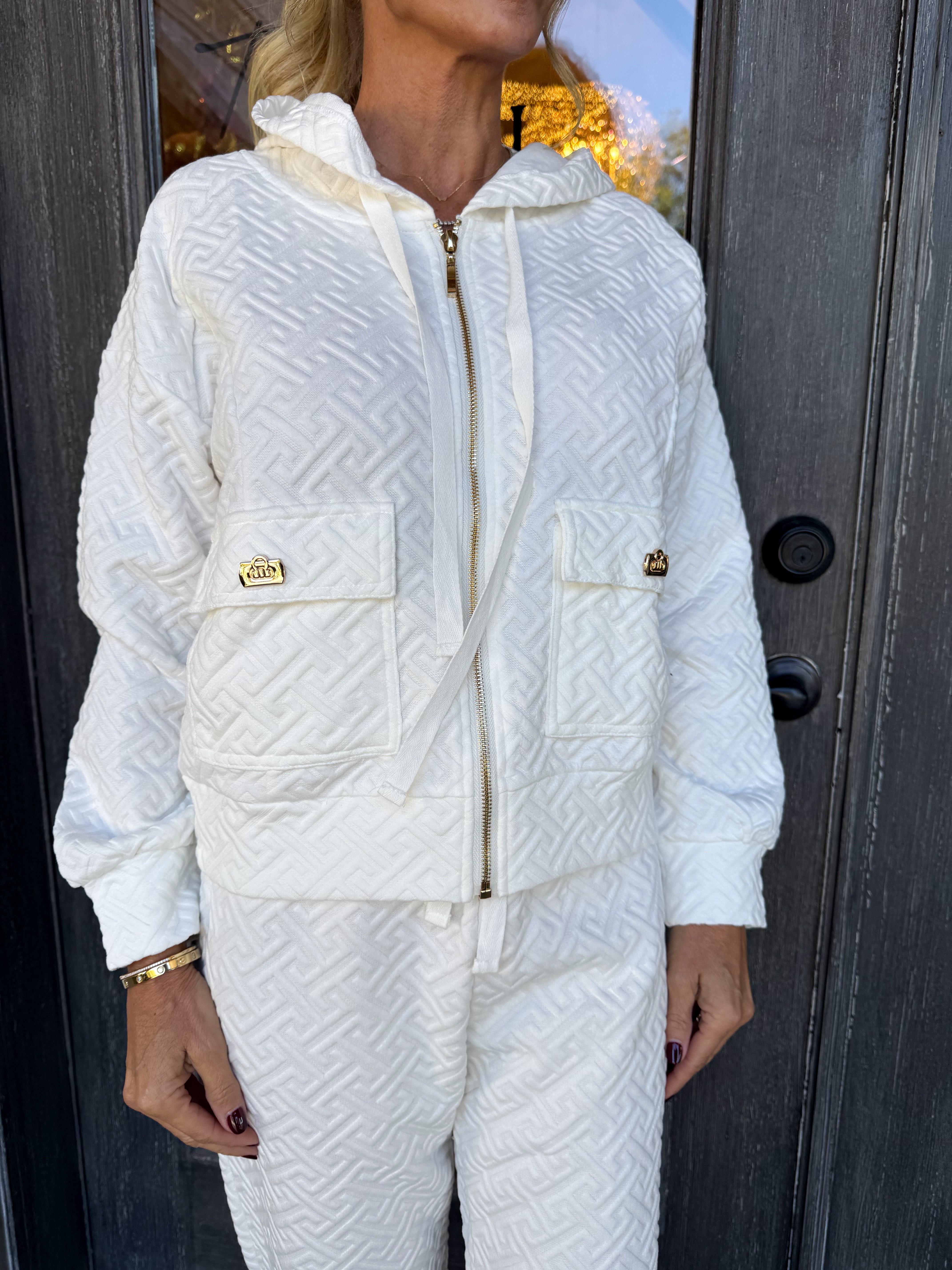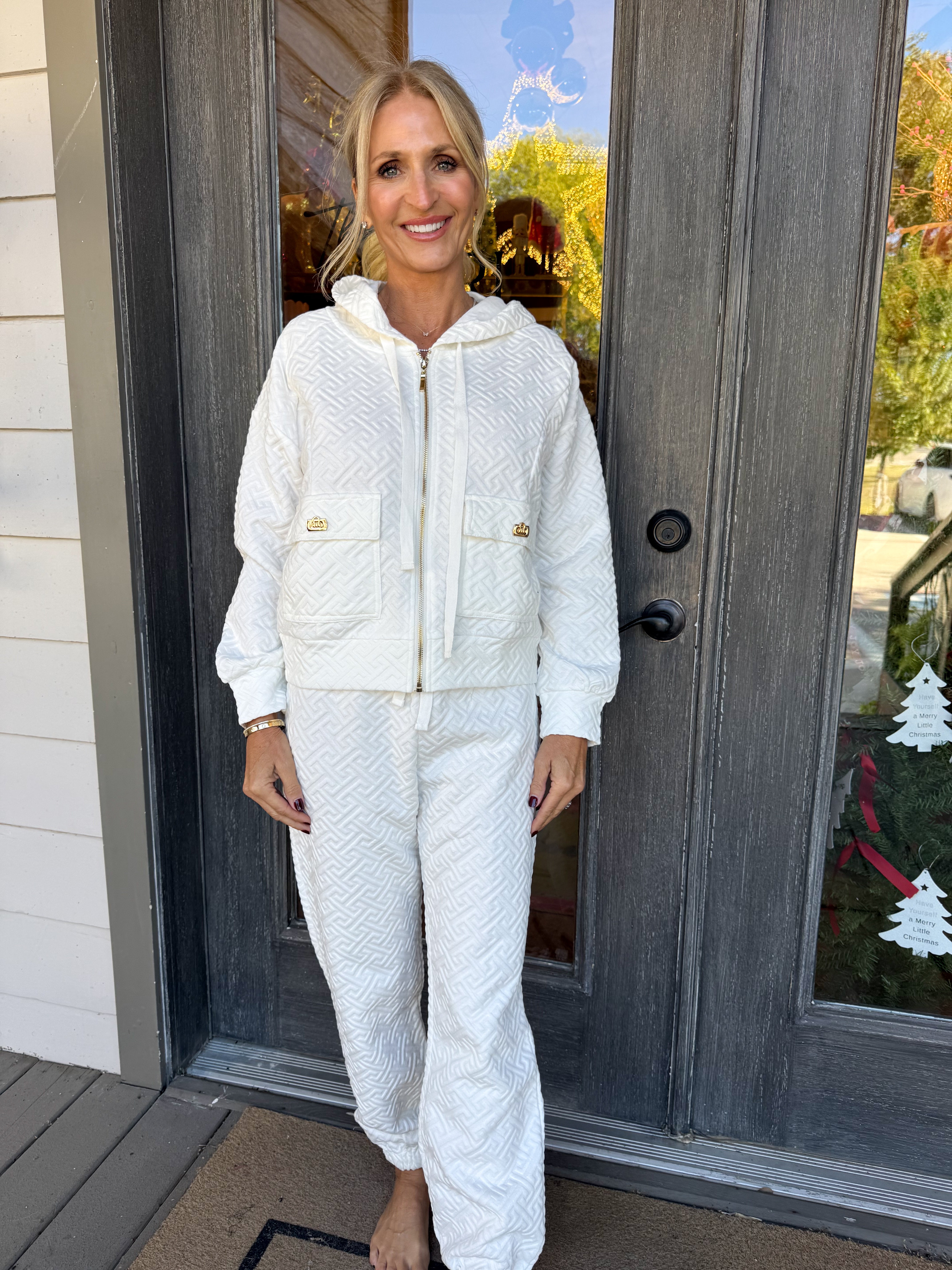 Stay cozy and stylish this season in our Phoenix Quilted Winter White Set—the ultimate combo for effortless comfort that takes you from lounging to errands without missing a beat.